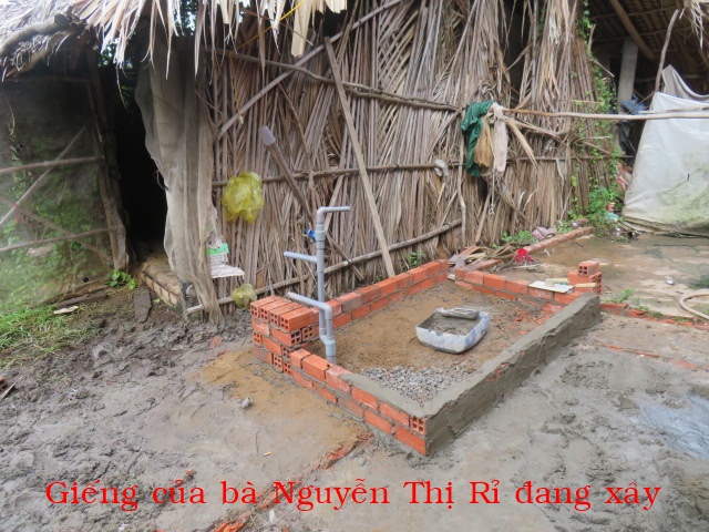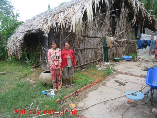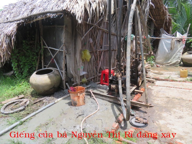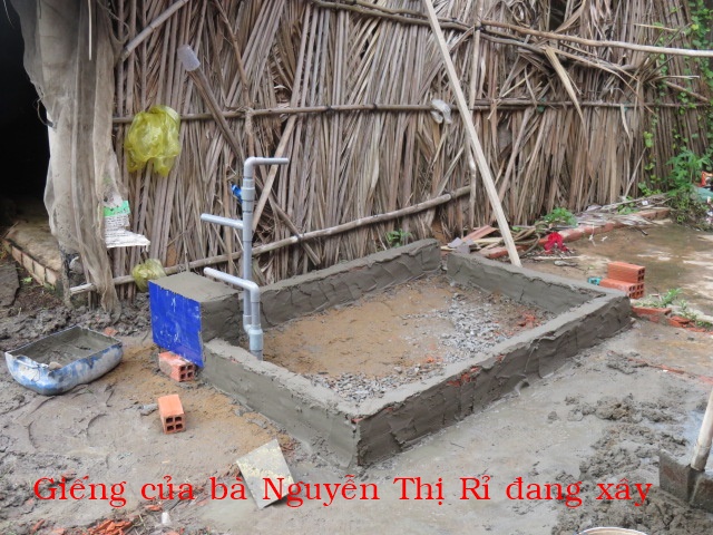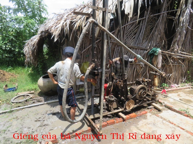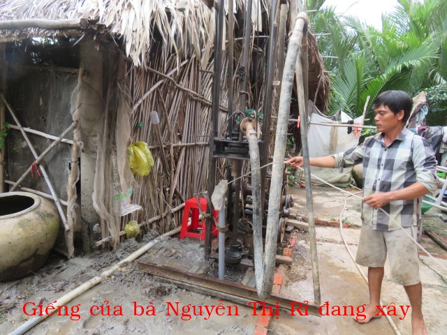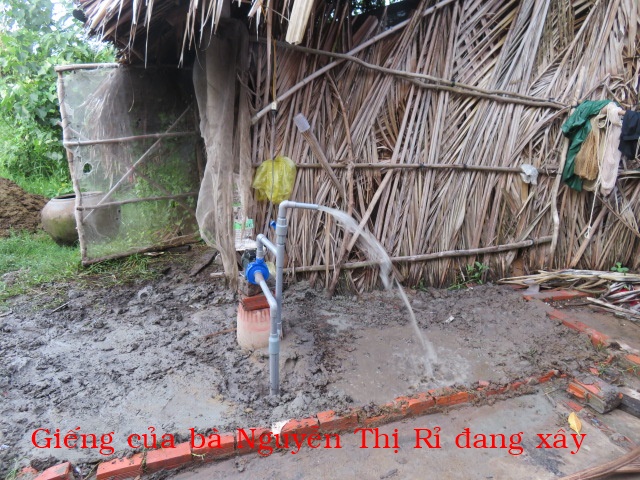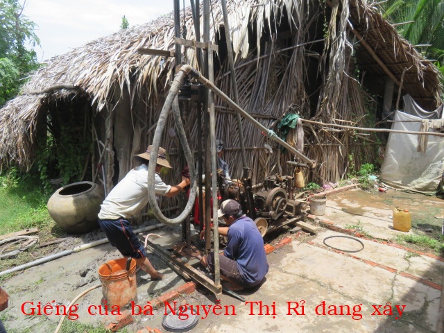 Bà Nguyễn Thị Rỉ, 46t, nhà ở Cả Cát, xã Thạnh Hải ( xã An Điền cũ) tỉnh Vĩnh Long. Gia đình có 3 người: vợ chồng và 1 con ( đứa con gái bị tâm thần nhẹ). Nhà không có cây giếng nước ngọt, không có ruộng đất, hàng ngày ai thuê gì thì làm nấy chỉ đủ tiền mua gạo nên rất cần cây giếng.