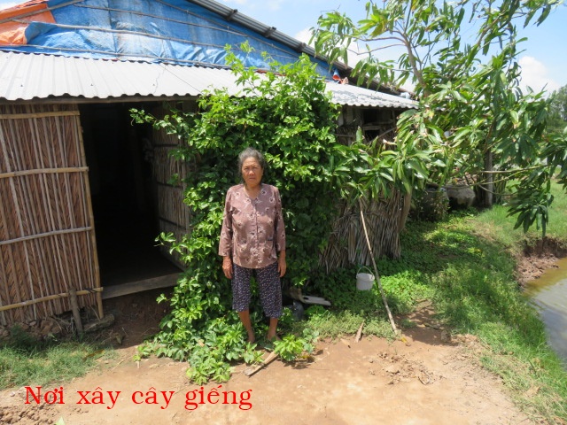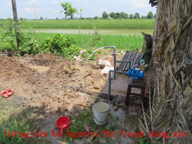 Bà Nguyễn Thị Tranh, 76t, nhà ở Rạch Ớt, xã An Qui, tỉnh Vĩnh Long. Bà sống một mình, nhà không có cây giếng nên rất cần giếng nước ngọt.