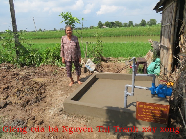 Mrs. Nguyễn Thị Tranh, 76 years old, lives in Rạch Ớt, An Qui Commune, Vĩnh Long Province. She lives alone. Her house has no well, so she is in urgent need of fresh water.