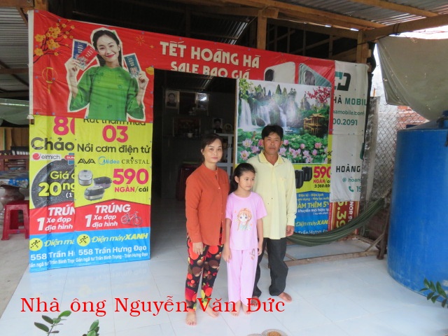 Ông Nguyễn Văn Đức, 48t, nhà ở Cồn Lớn, xã Thạnh Phong, tỉnh Vĩnh Long. Gia đình có 3 người: vợ chồng và 1 con. Nhà không có ruộng đất, căn nhà vừa được vị ân nhân mới cho tu sửa lại. Hàng ngày cả 2 vợ chồng ai thuê gì thì làm nấy, nhà không có cây giếng nước ngọt phải xin của hàng xóm về xài nên rất cần.