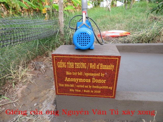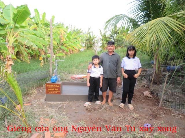 Ông Nguyễn Văn Tú, 37t, nhà ở Bồn Bồn, xã Thạnh Phong, tỉnh Vĩnh Long. Gia đình có 4 người: vợ chồng và 2 con , bé trai lớn lớp 6, bé nhỏ lớp1 (2 cháu đi học không có nhà). Nhà không có ruộng đất, hàng ngày ai thuê gì thì làm nấy. Nhà không có giếng nước ngọt phải xin của hàng xóm về xài nên rất cần.