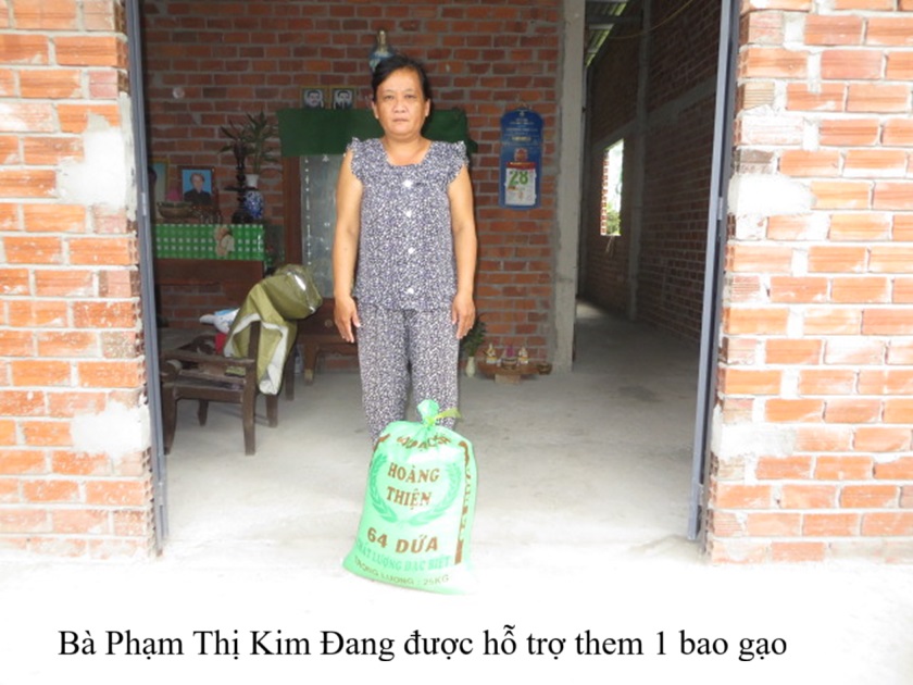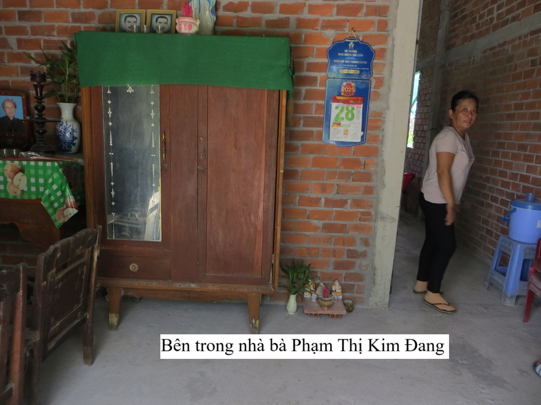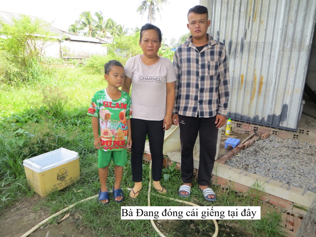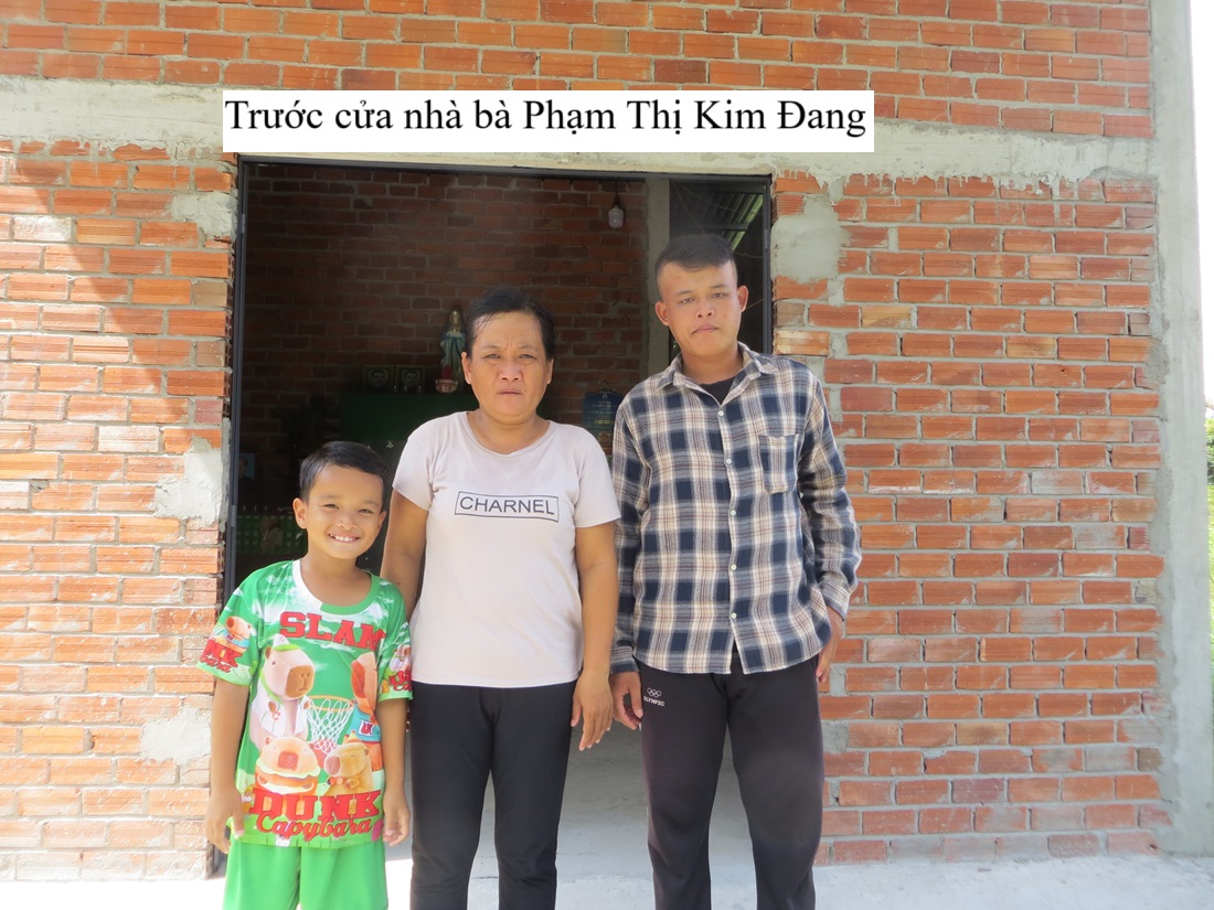 Mrs. Phạm Thị Kim Đang, 48 years old. Her husband passed away due to a traffic accident. She has two children: Mai Hải Đăng, 22 years old, and Mai Trung Kiên, 8 years old. Mrs. Kim Đang suffers from a gynecological illness, so she is unable to work. The family survives solely on the income from Hải Đăng’s masonry work, which is just enough to get by day to day. Their house does not have a well, so they rely on neighbors for water. The family currently resides at Thạnh Quí B Hamlet, Bình Thạnh Commune, Thạnh Phú District, formerly Bến Tre Province, now part of Thạnh Phú Commune, Vĩnh Long Province.