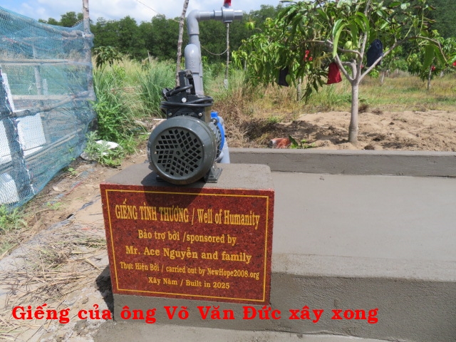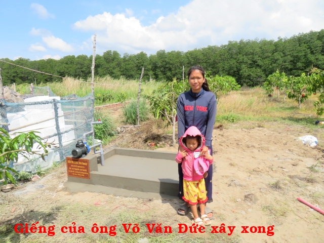 Ông Võ Văn Đức, 28t, nhà ở Cồn Cao, xã Thạnh Phong, huyện Thạnh Phú, tỉnh Bến Tre. Gia đình có 3 người: vợ chồng và 1 con, hàng ngày ai thuê gì thì làm nấy. Nhà không có cây giếng phải xin của hàng xóm về xài, rất khó khăn nên rất cần cây giếng.