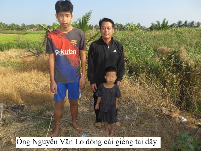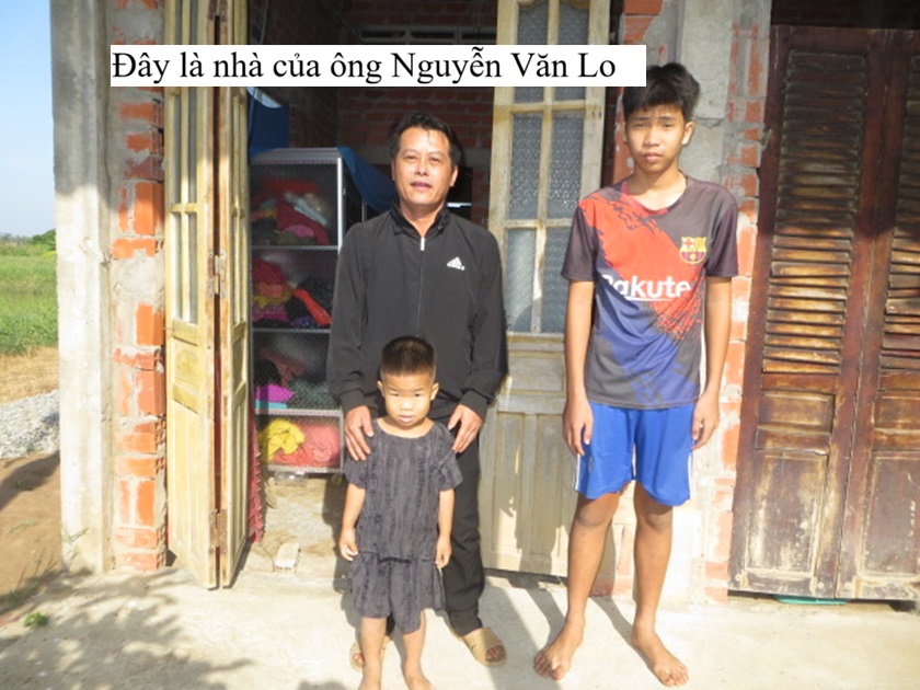 Mr. Nguyễn Văn Lo, 43 years old. His wife is working far from home. He has two children named Nguyễn Văn Chí, 16 years old, and Nguyễn Văn Nguyên, 4 years old. Mr. Lo is currently unemployed. He lives at house number 2/4, Thạnh Tân Hamlet, Thạnh Phú Commune, Vĩnh Long Province. His house does not have a water well and must use river water.