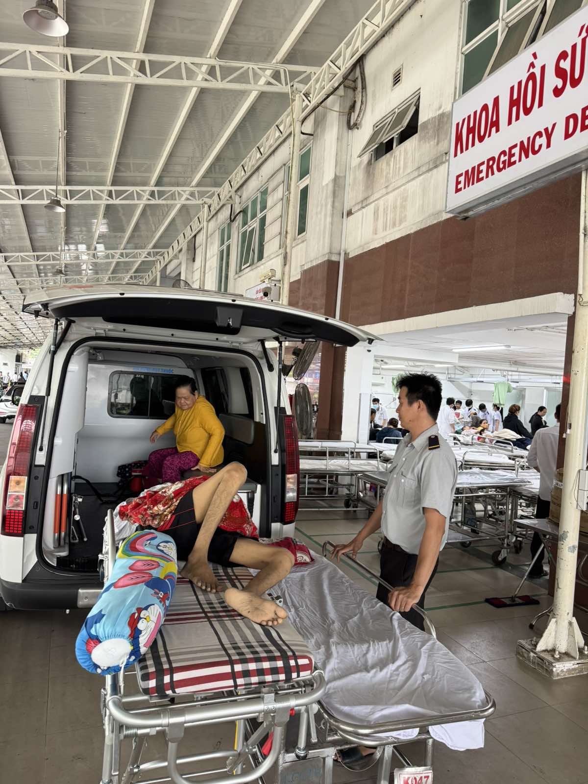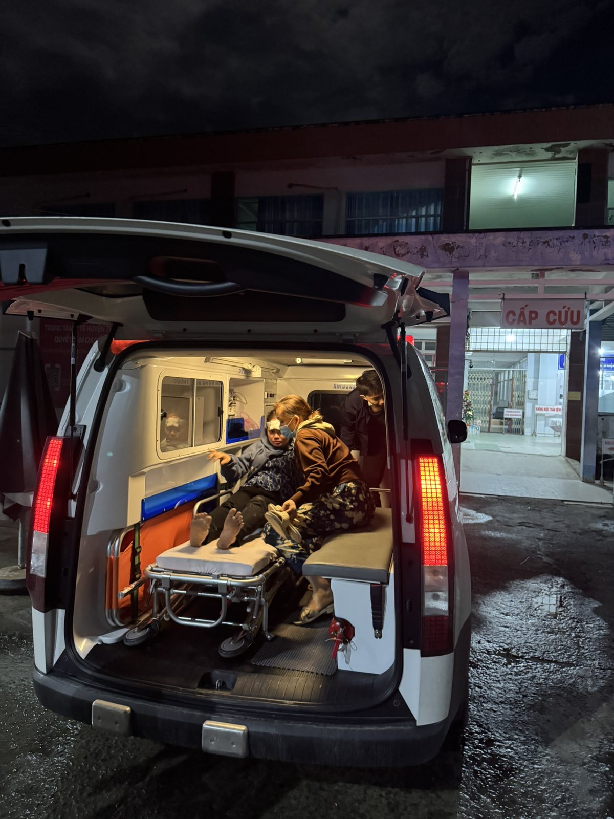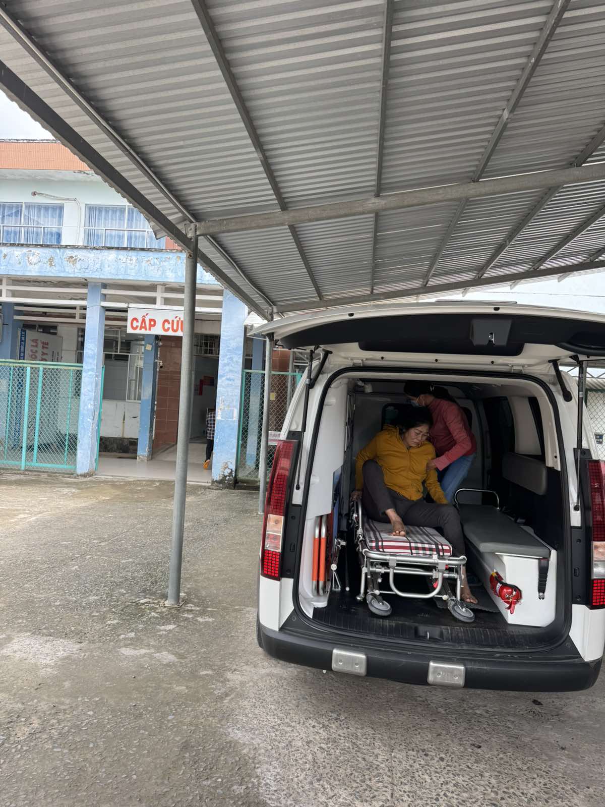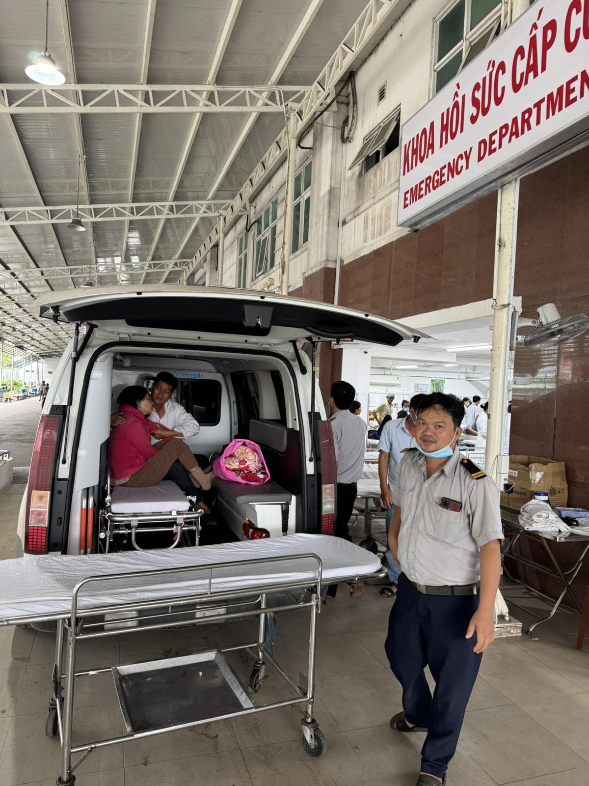 Dưới đây là hình ảnh của từng bệnh nhân lúc lên xe Cấp Cứu và lúc đến nhà thương: