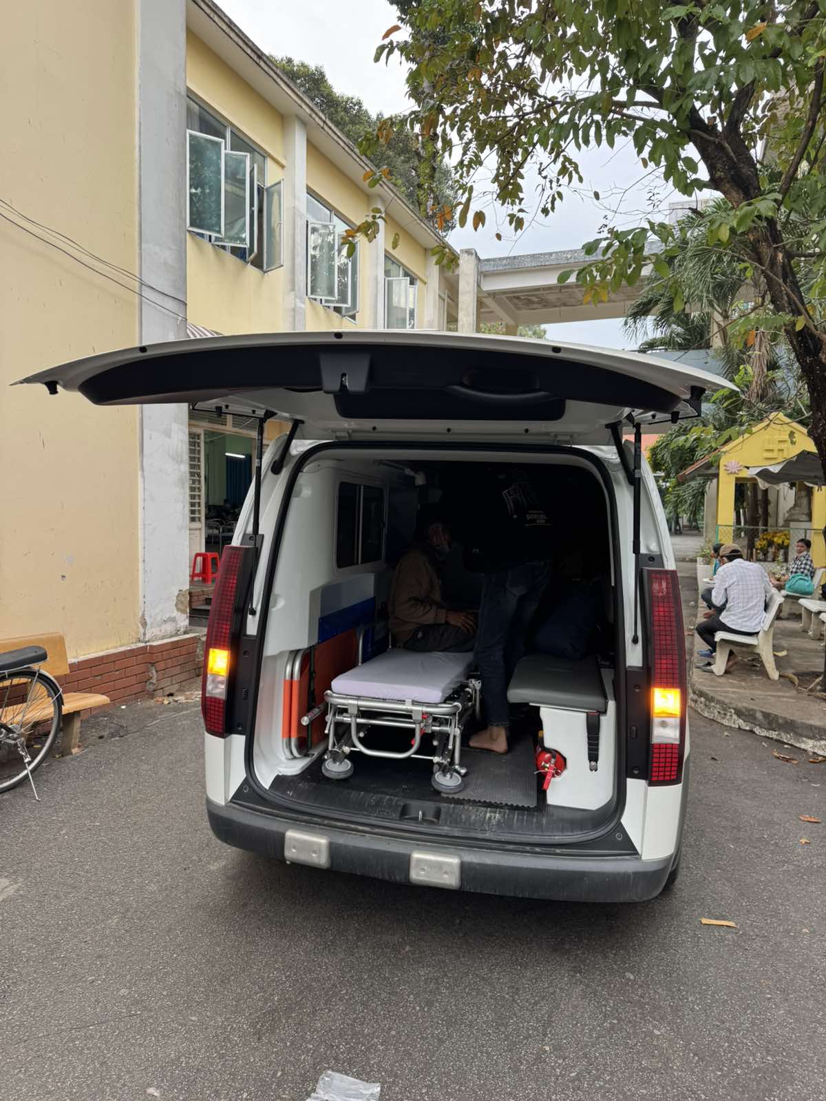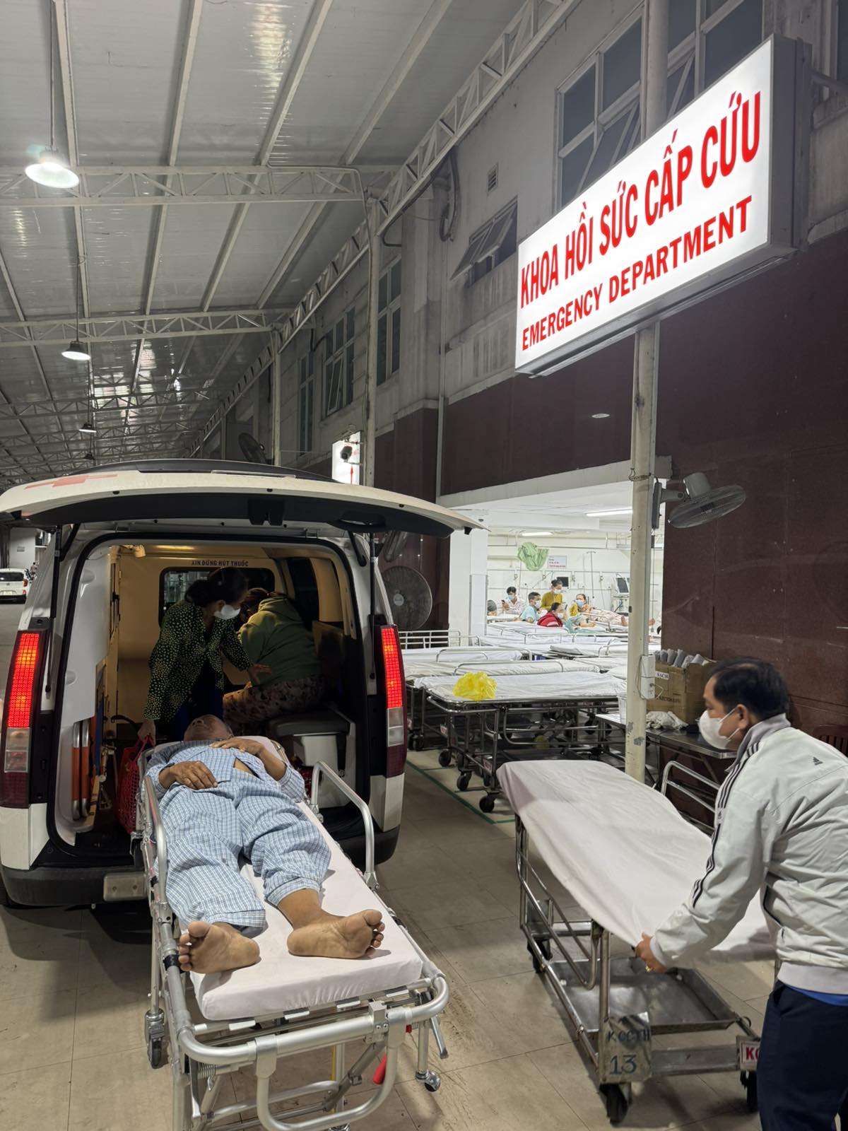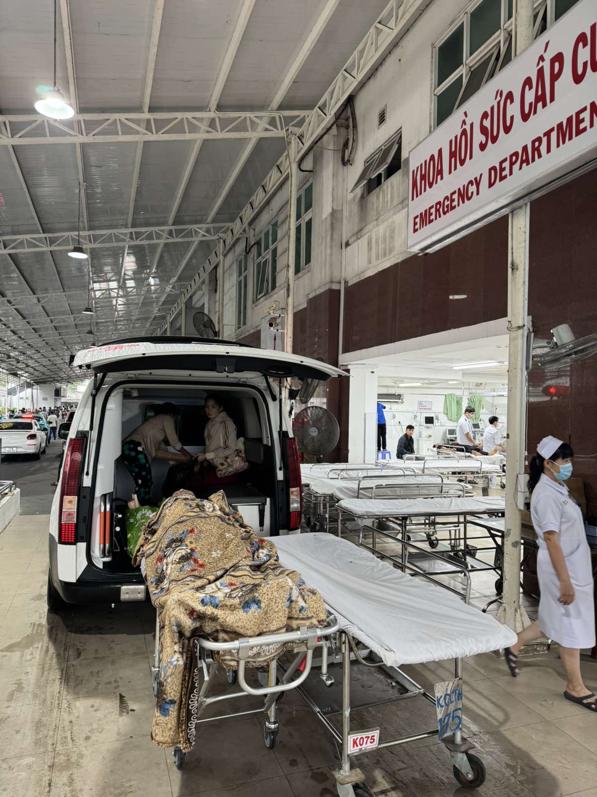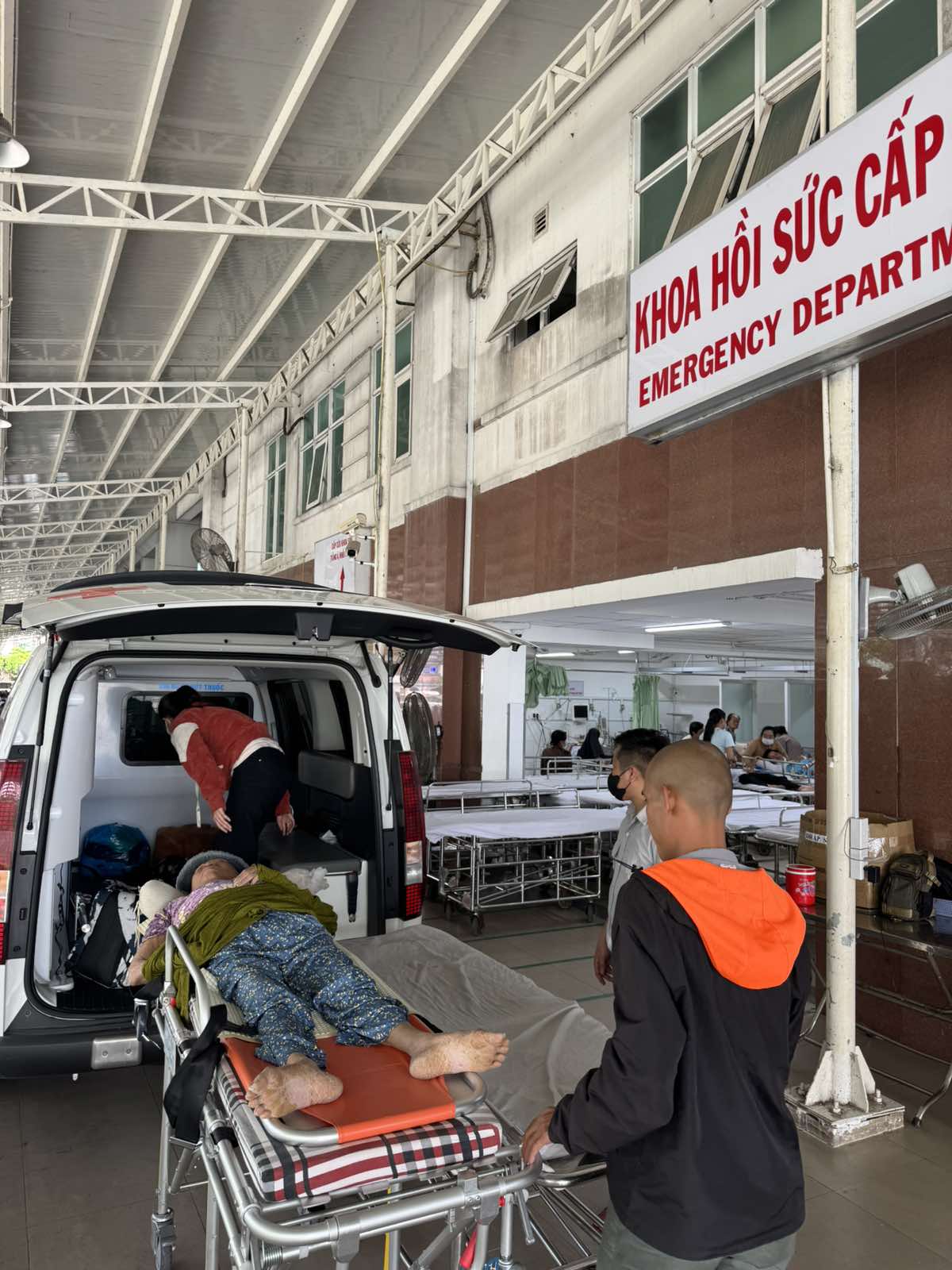 Dưới đây là hình ảnh của từng bệnh nhân lúc lên xe Cấp Cứu và lúc đến nhà thương: