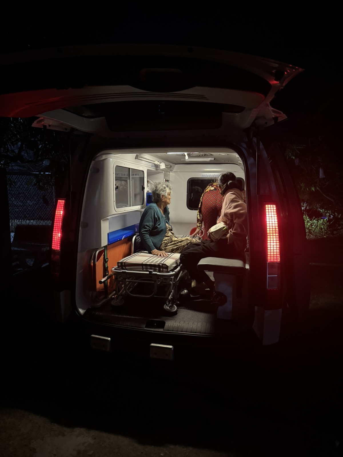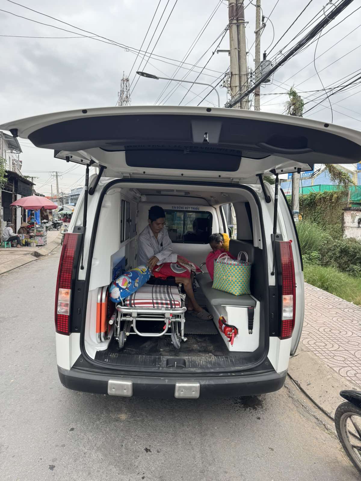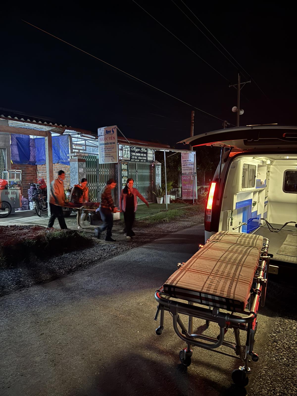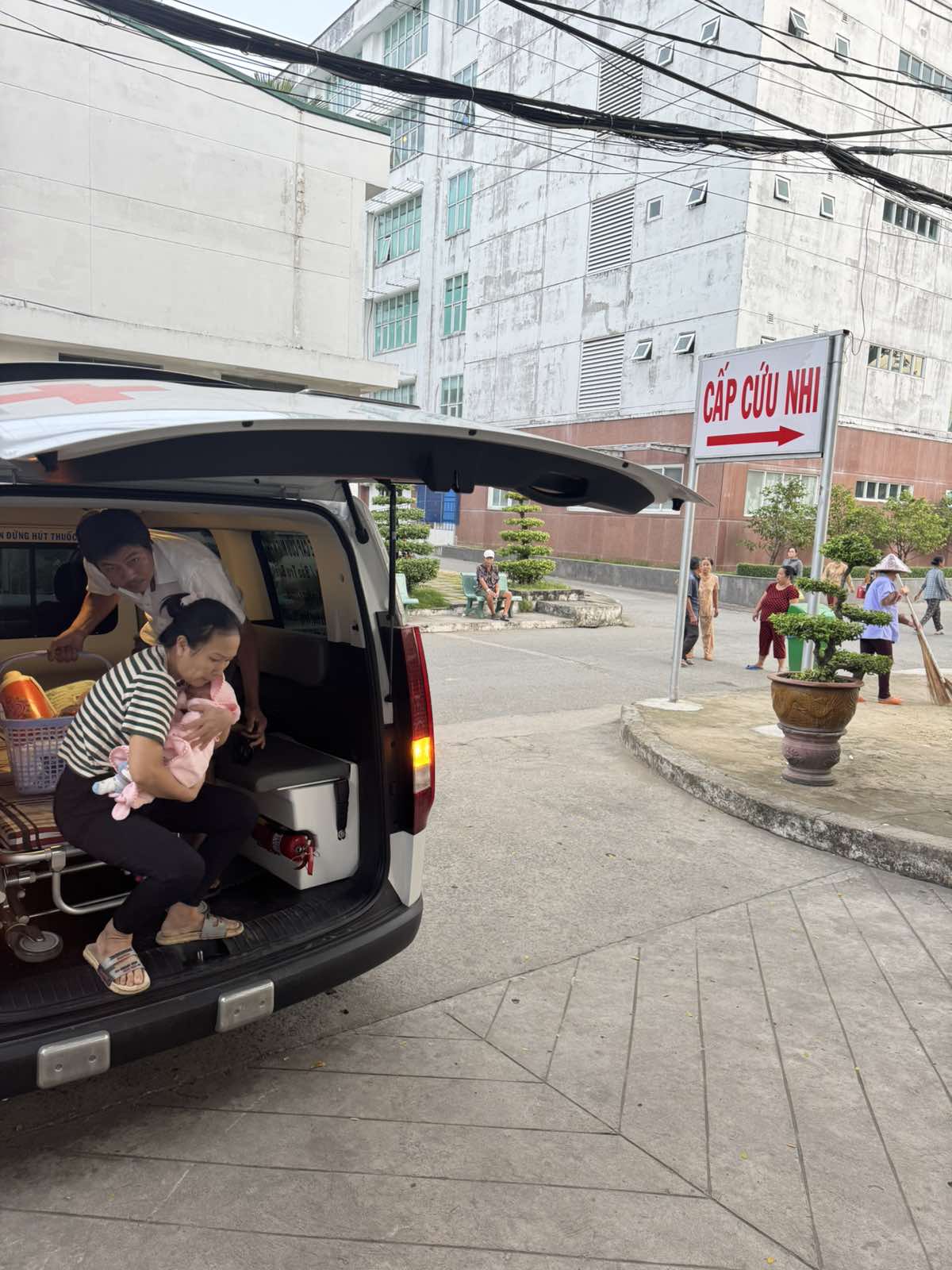 Dưới đây là hình ảnh của từng bệnh nhân lúc lên xe Cấp Cứu và lúc đến nhà thương: