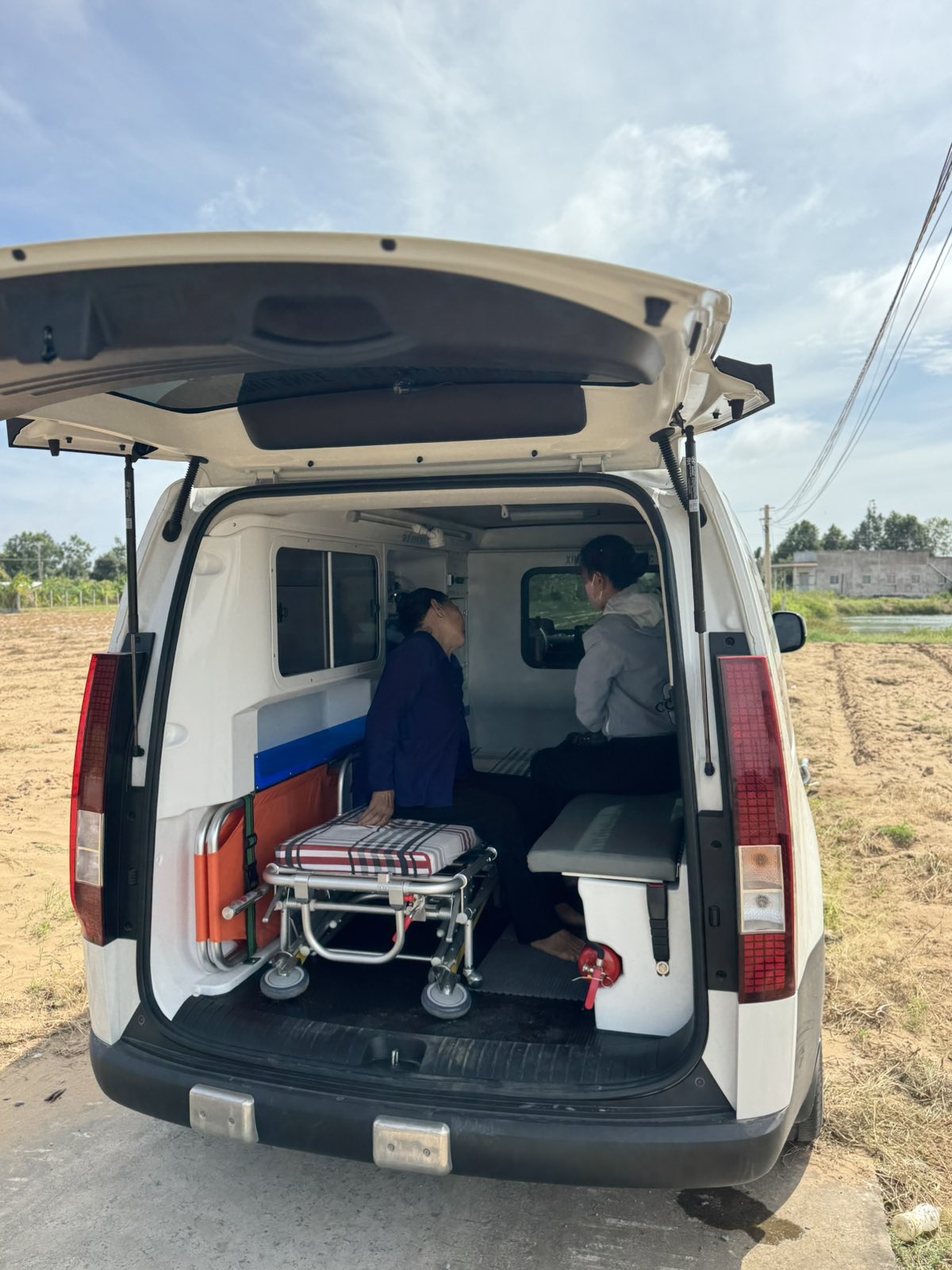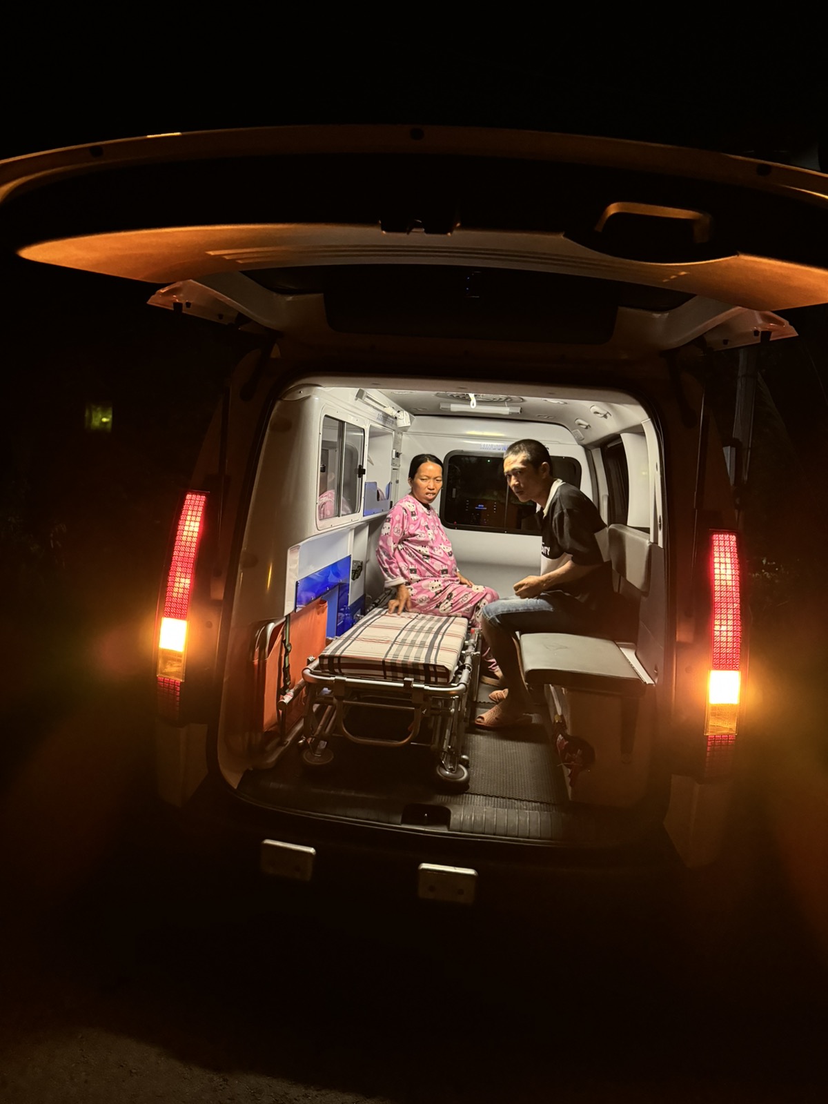 Below are the pictures of patients getting on the ambulance and getting off at the hospital: