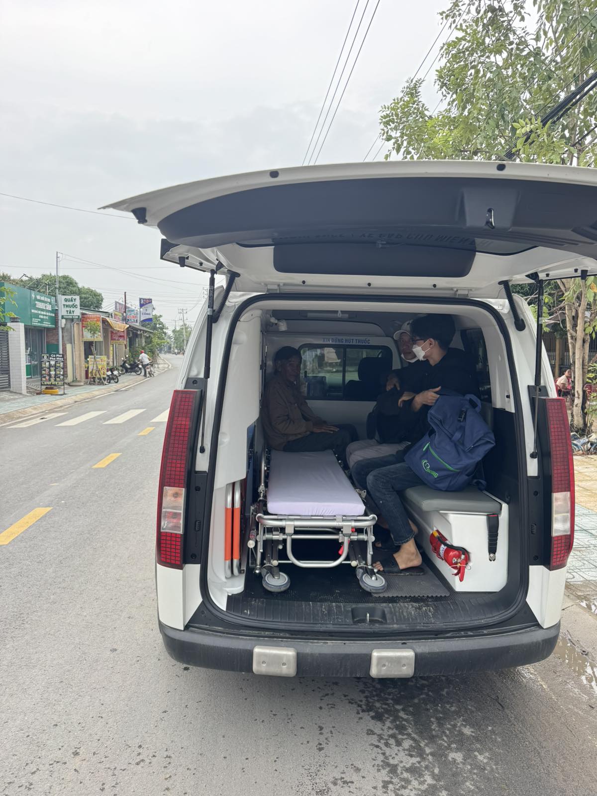 Mr. Nguyen Van Chi, 86 years old, lives in Ca Cac, An Dien commune, Thanh Phu district, Ben Tre province. He has painful complications of diabetes. The ambulance took him to Ben Tre hospital at 7:15 a.m. on December 3, 2024. He currently lives with his children and grandchildren. The staff gave him a bottle of medicated oil.