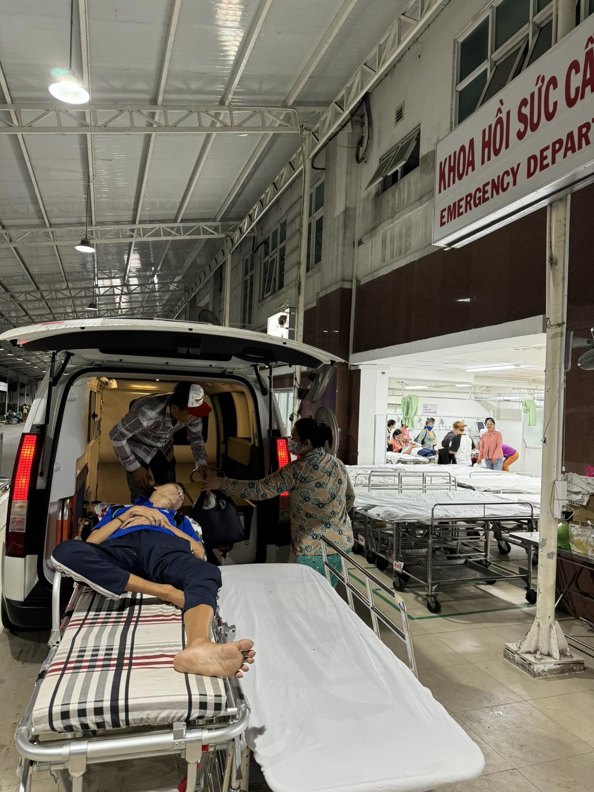 Mr. Doan Van Ne, 63 years old, lives in Con Tra, Thanh Hai Commune, Thanh Phu District, Ben Tre Province. He had an appendix that was about to burst. The ambulance took him to Ben Tre Hospital at 9:20 p.m. on November 20, 2024. He currently lives with his children.