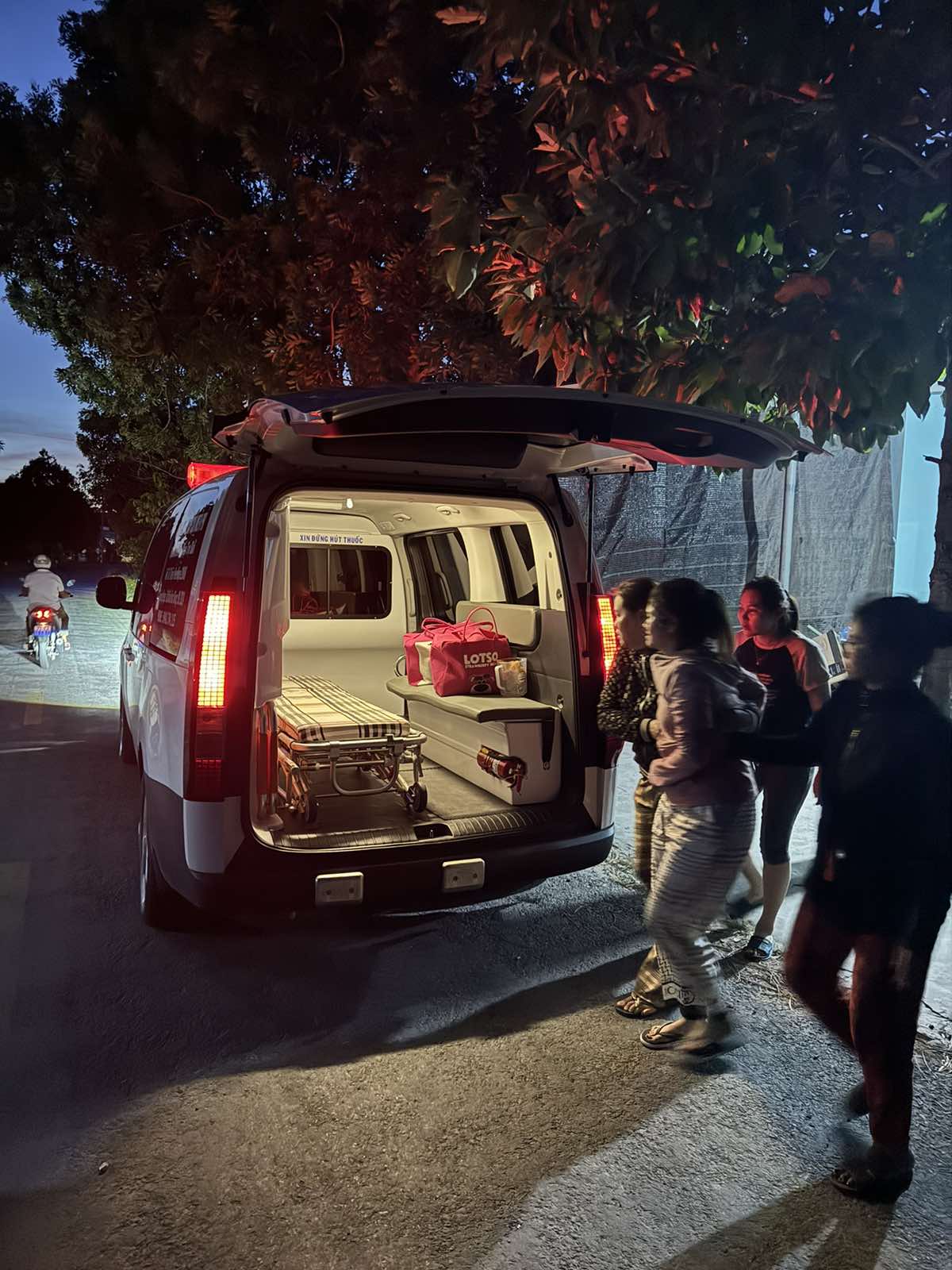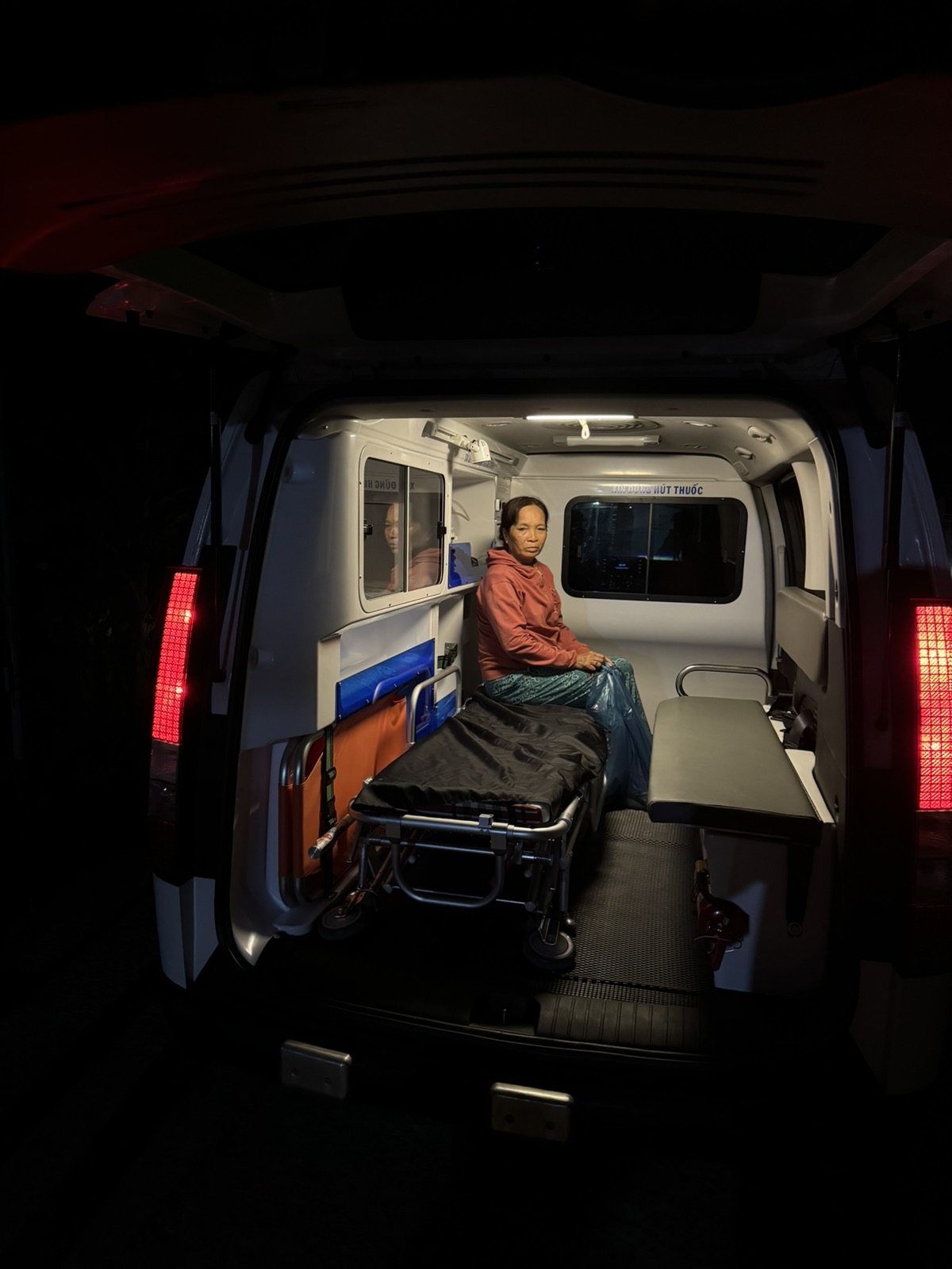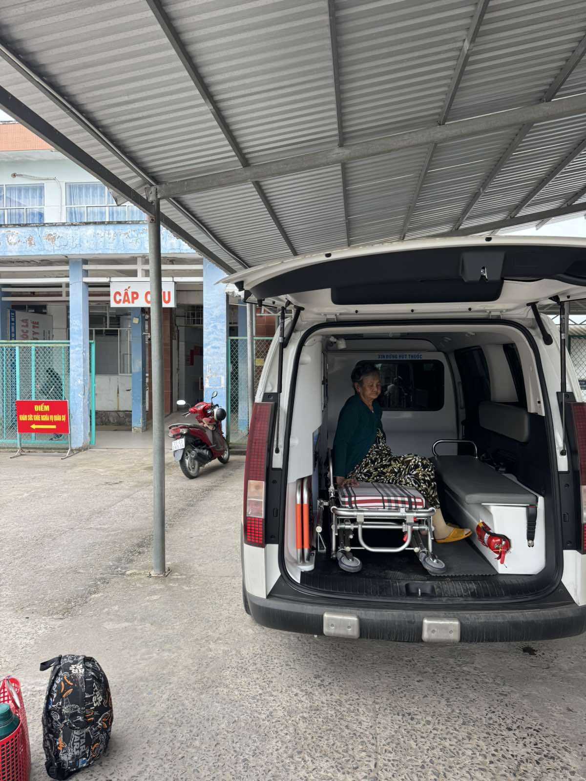 Ms. Van Thi Dieu, 91 years old, lives in Con Tra, Thanh Hai commune, Thanh Phu district, Ben Tre province. She was tired and was taken to Thanh Phu hospital by ambulance at 6:00 p.m. on November 30, 2024. She currently lives with her children and grandchildren. The staff gave her a bottle of medicated green oil.