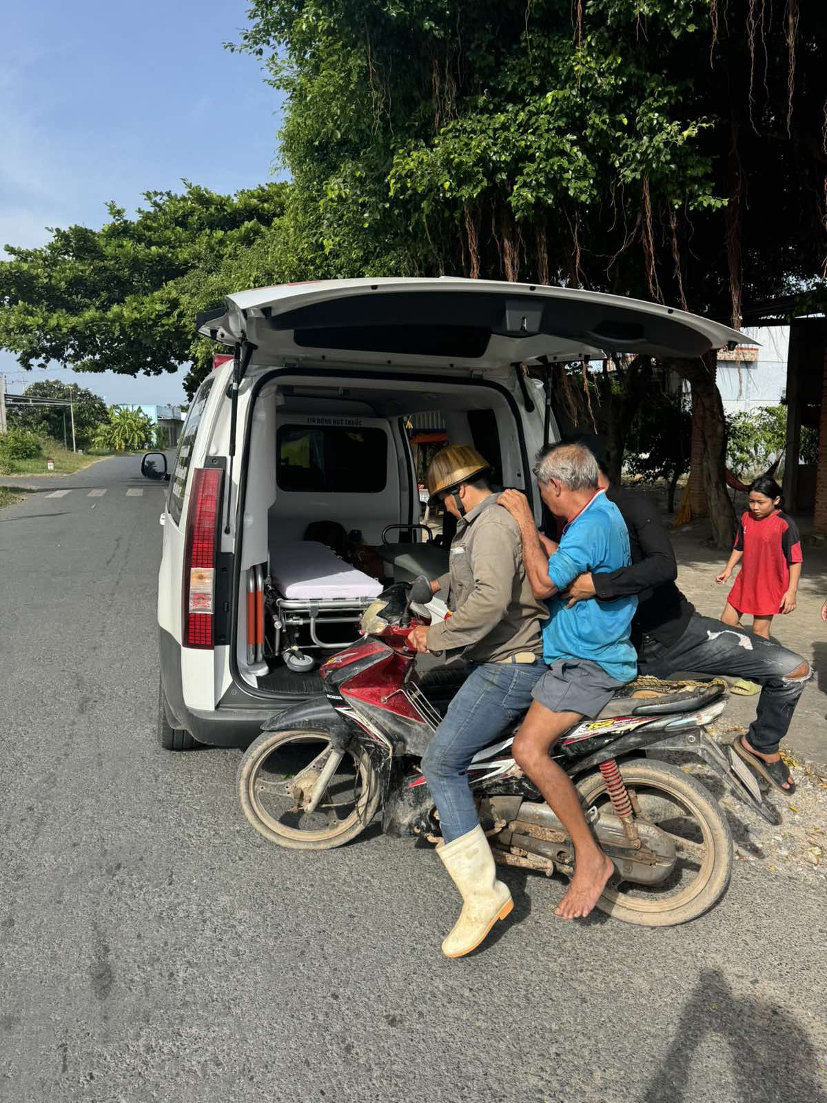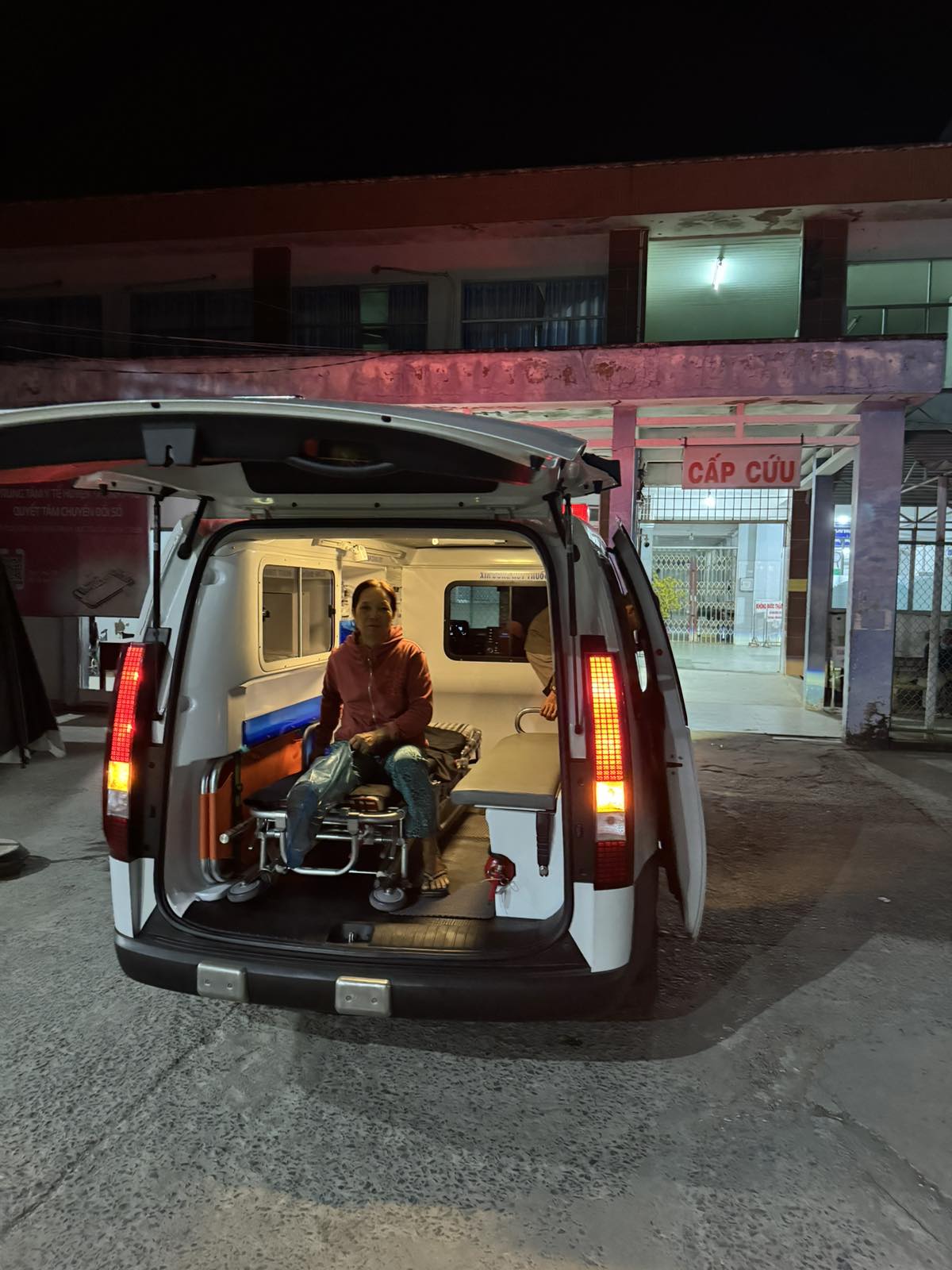 Ms. Trinh Thi Noi, 58 years old, lives in Con Mit, Thanh Phong commune, Thanh Phu district, Ben Tre province. She had a motorbike accident and severed her leg. She was taken to Thanh Phu hospital by ambulance at 4:15 a.m. on November 26, 2024.