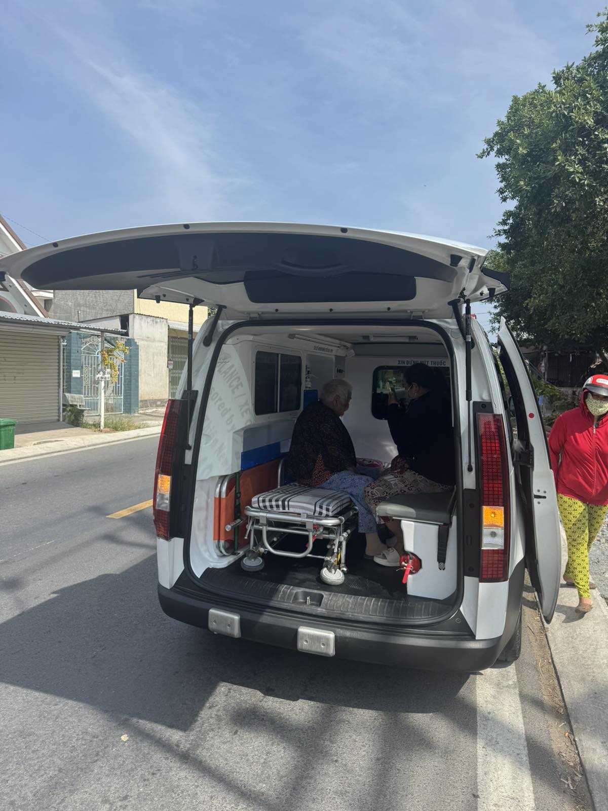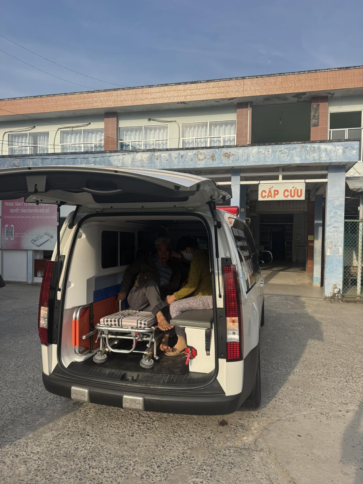Ms. Nguyen Thi Quyen, 79 years old, living in Con Chim, Thanh Phong commune, Thanh Phu district, Ben Tre province. She was tired and had difficulty breathing. The ambulance took her to Thanh Phu hospital at 12:10 p.m. on April 3, 2025. She is currently blind and lives with her children.