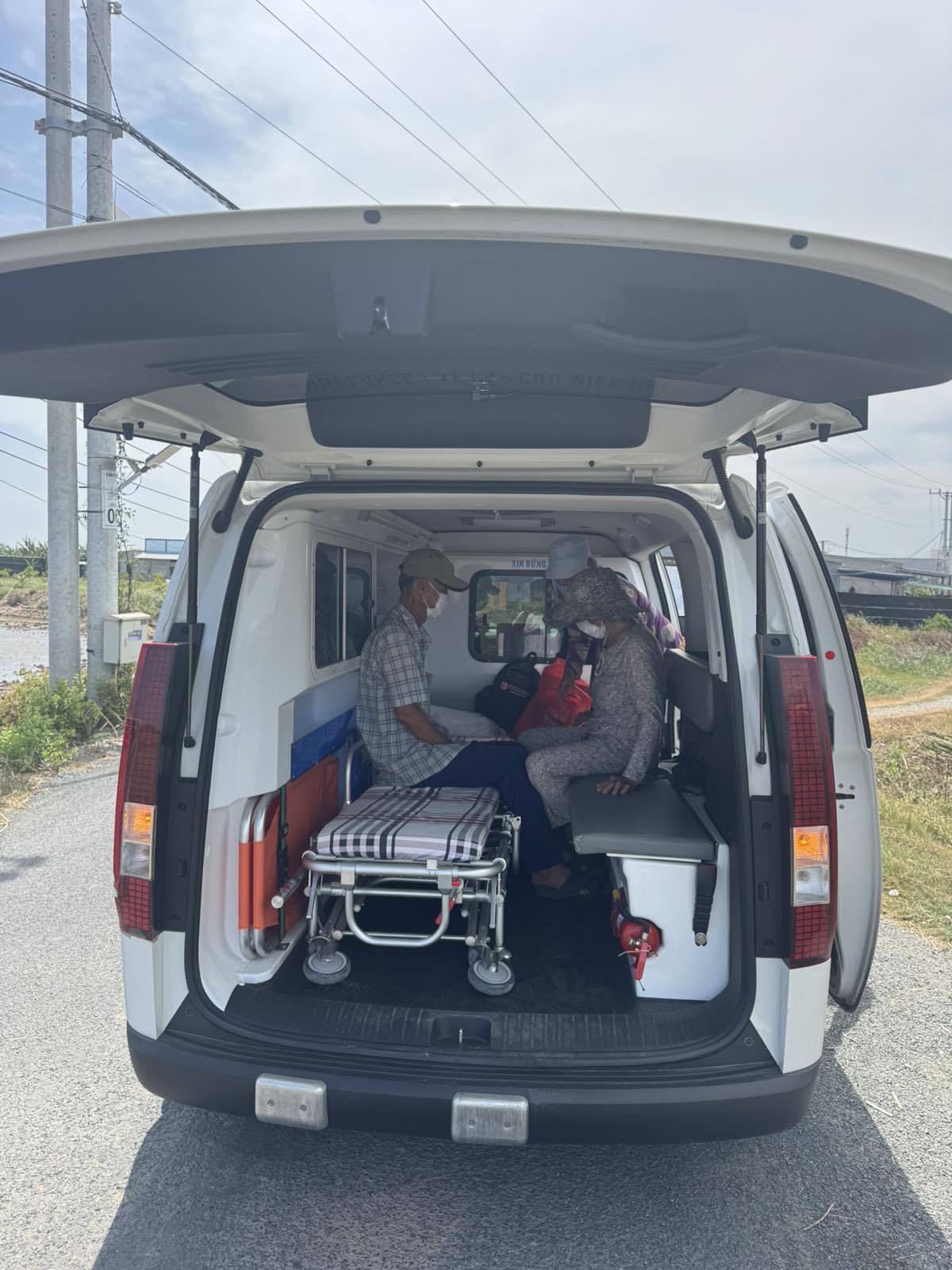Ms. Luu Thi Nam, 80 years old, lives in Ben Dong, Binh Thanh commune, Thanh Phu district, Ben Tre province. She is tired due to lung disease, the ambulance took her to Tien Giang 120 hospital at 10:20 a.m. on April 7, 2025. She currently lives with her children. The staff gave her a bottle of medicated green oil.