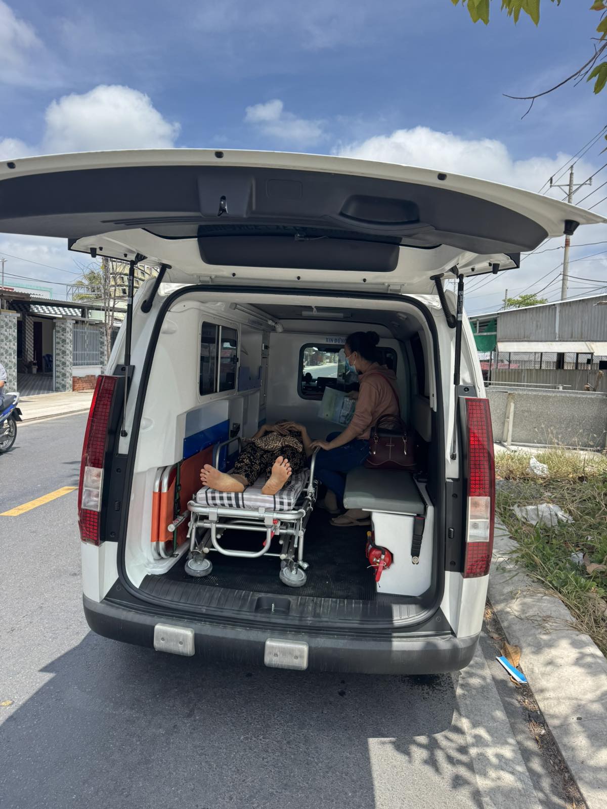 Ms. Huynh Thi Sam, 86 years old, lives in Ben Trai, An Thuan Commune, Thanh Phu District, Ben Tre Province. She was tired, the ambulance took her to Ben Tre Hospital at 7:00 p.m. on April 5, 2025. She is currently living with her children and grandchildren. The staff gave her a bottle of medicated green oil.