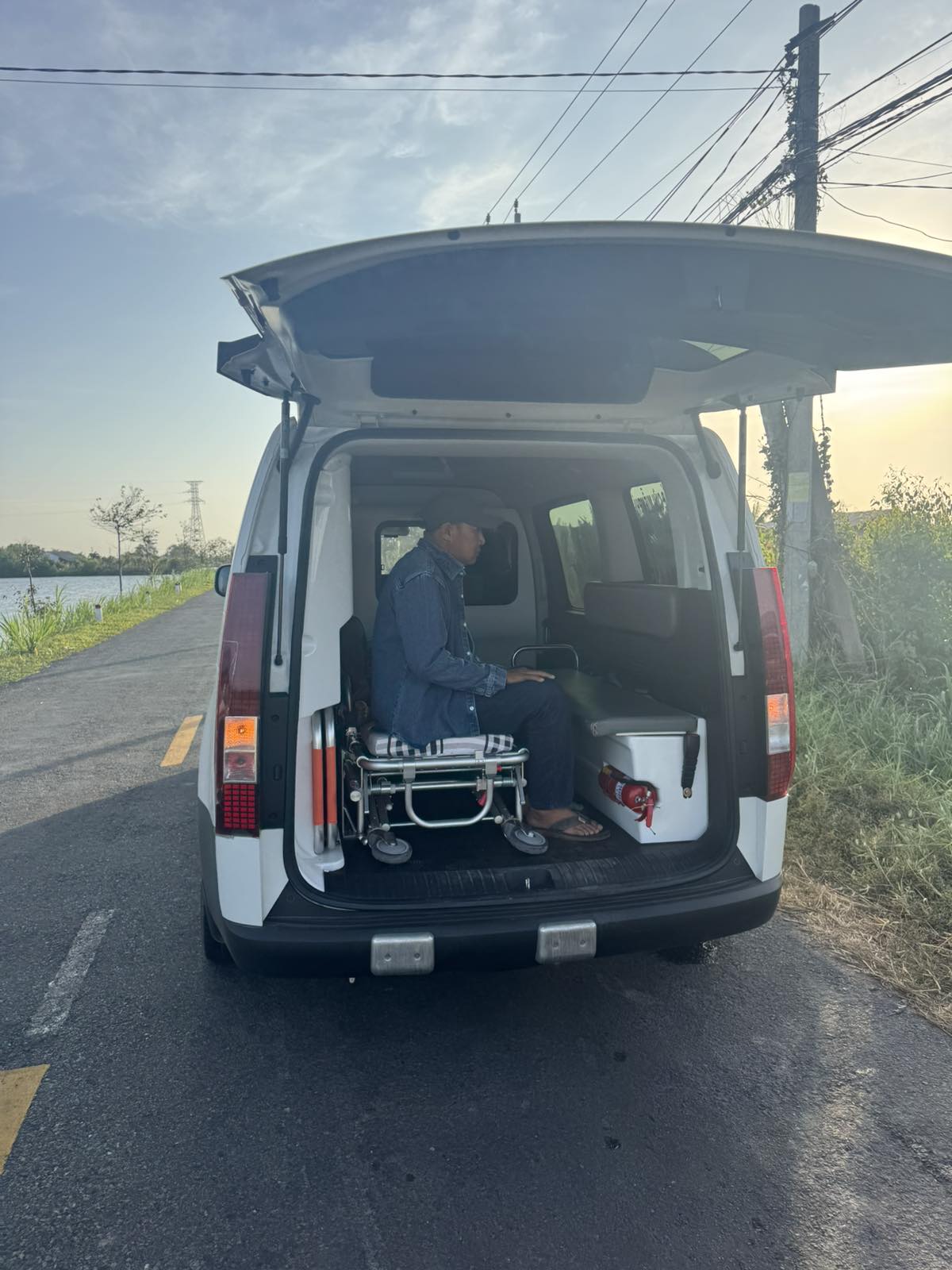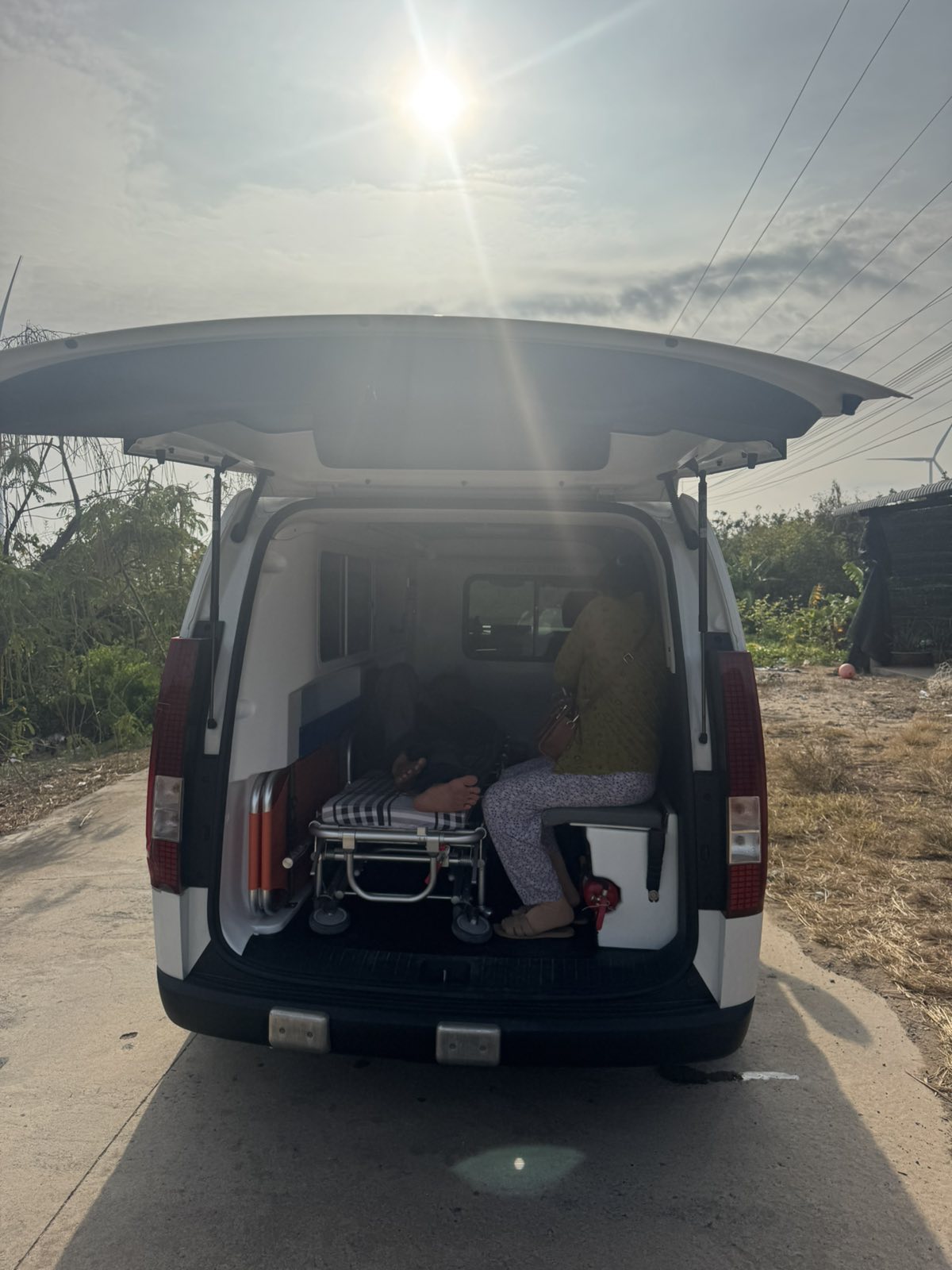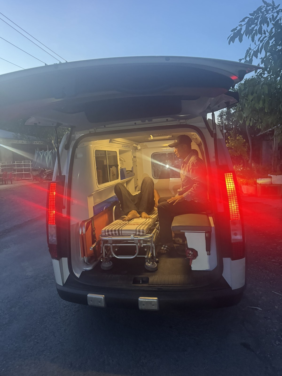 Below are the pictures of patients getting on the ambulance and getting off at the hospital: