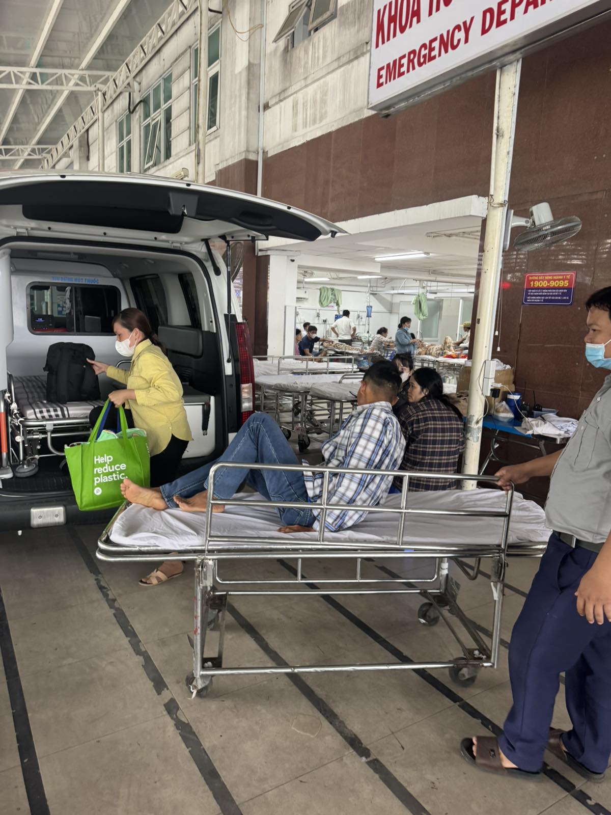 Dưới đây là hình ảnh của từng bệnh nhân lúc lên xe Cấp Cứu và lúc đến nhà thương:
