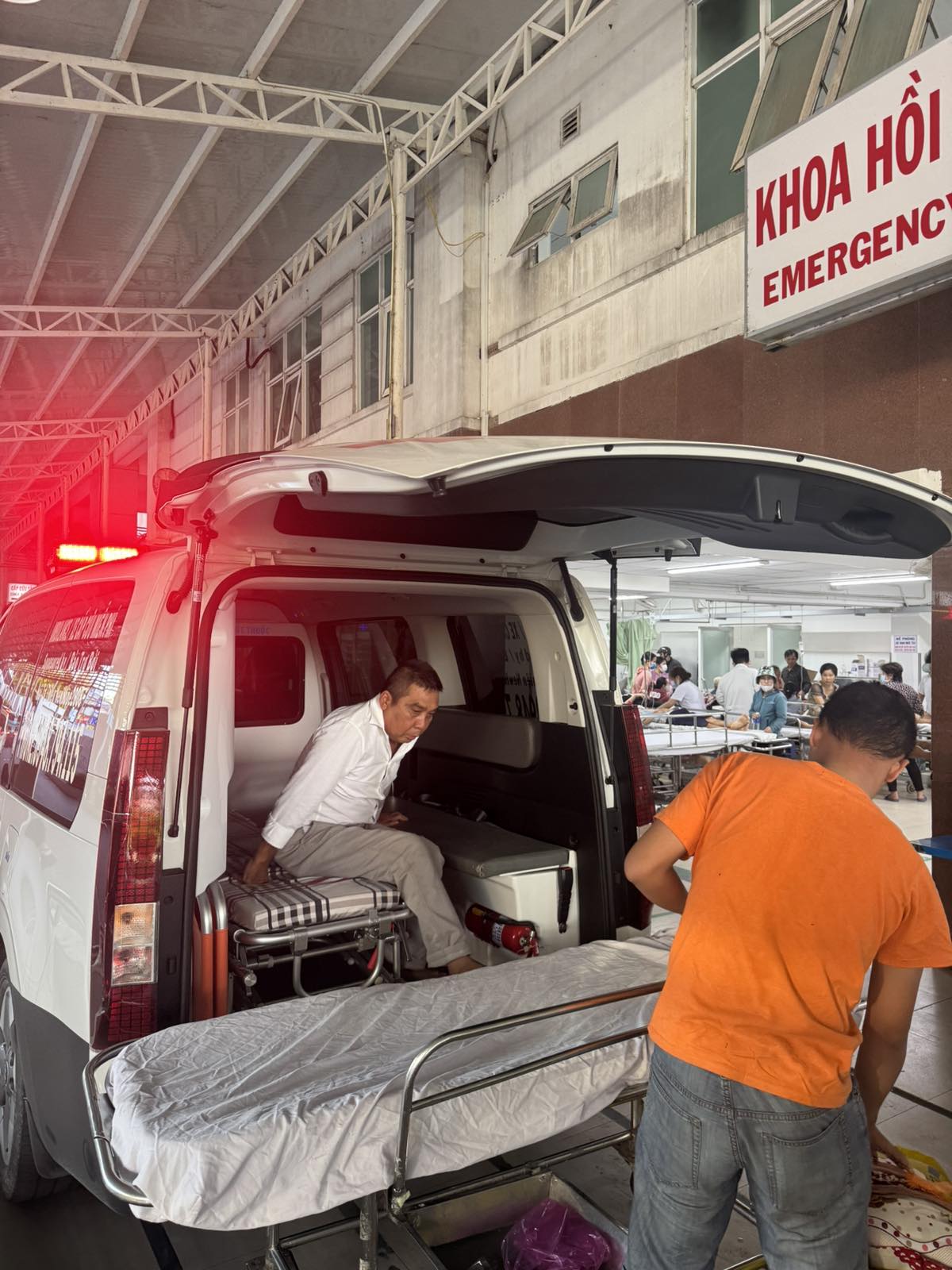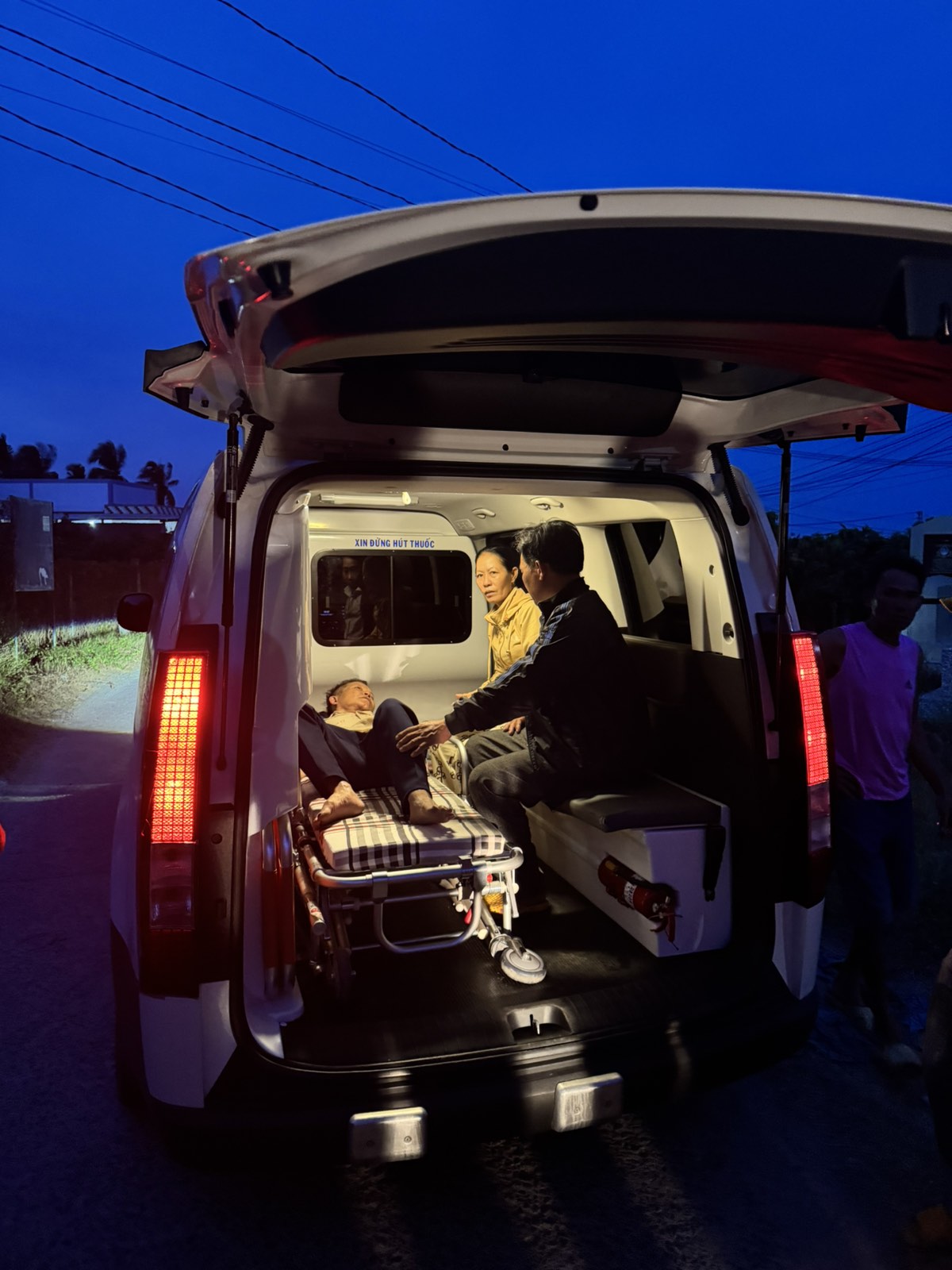 Mr. Truong Van Chi, 60 years old, lives in Ho Co, Thanh Hai Commune, Thanh Phu District, Ben Tre Province. He is tired due to a lung tumor, the ambulance took him to Ben Tre Hospital at 3:00 p.m. on April 11, 2025. He currently lives with his child.