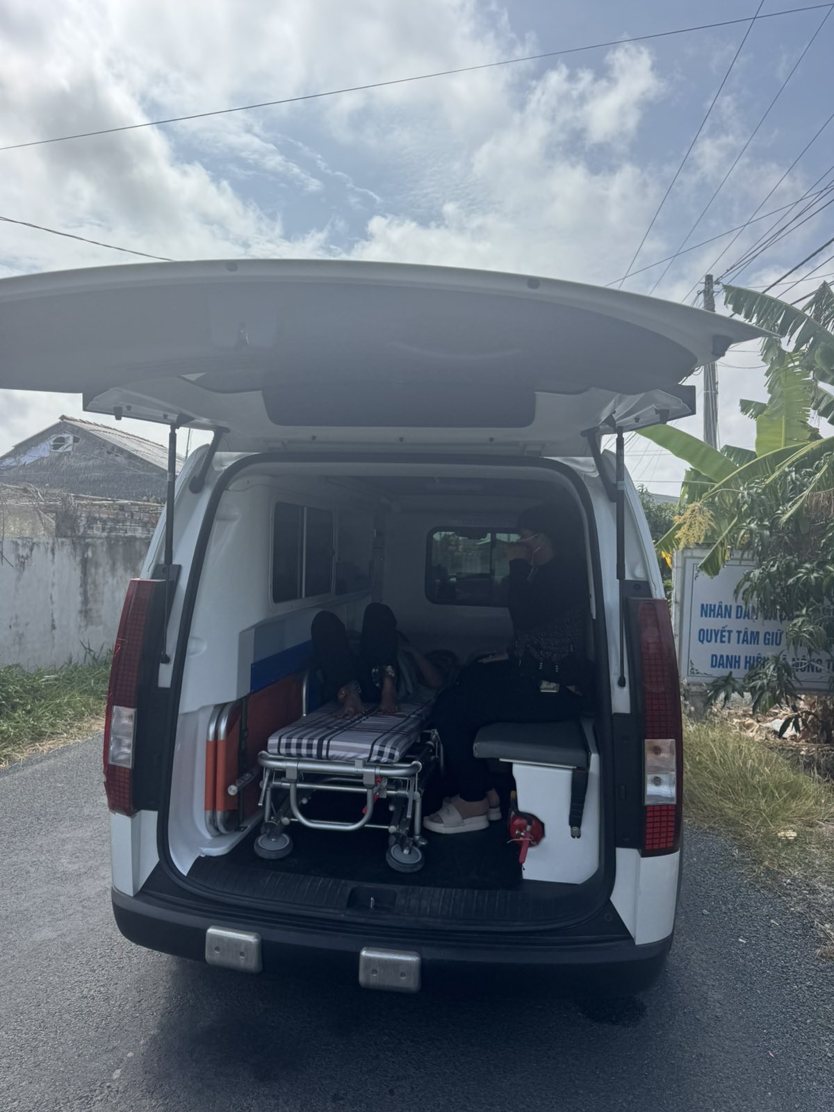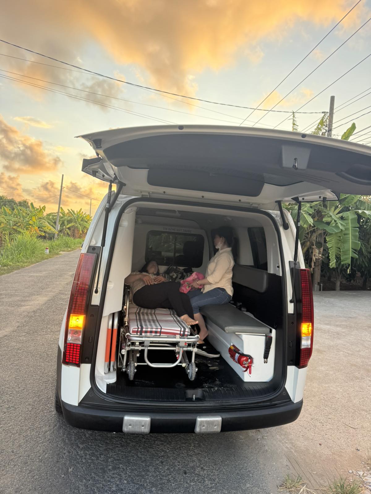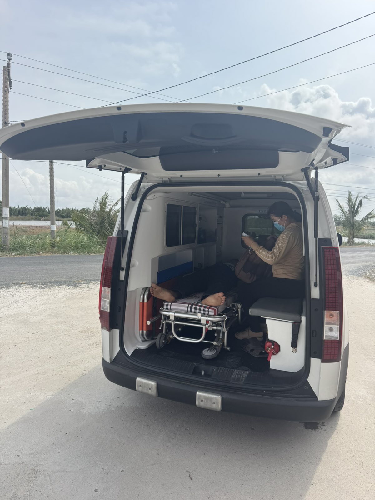Ms. Tran Thi Be, 55 years old, lives in Khau Bang, Thanh Phong commune, Thanh Phu district, Ben Tre province. She has end-stage renal failure. The ambulance arrived at Ben Tre hospital at 4:00 a.m. on April 25, 2025. She currently lives with her children. The staff gave her a bottle of medicated green oil.