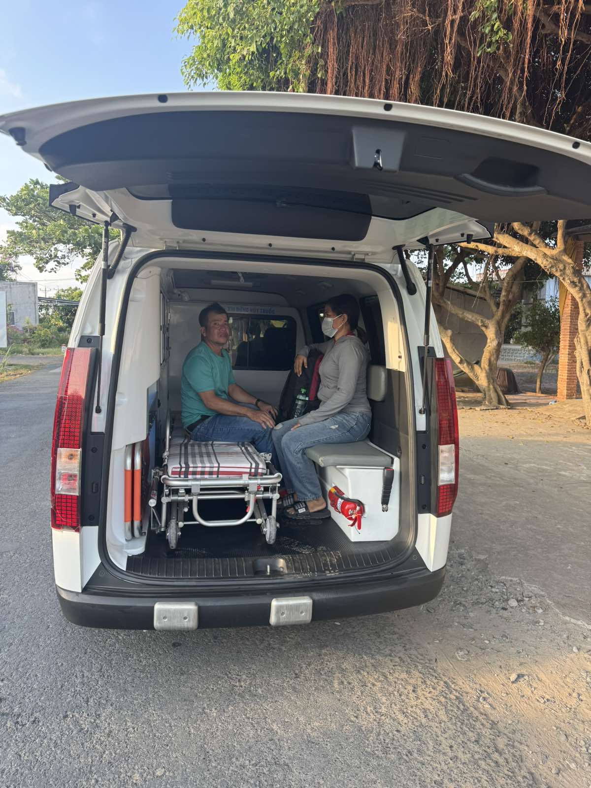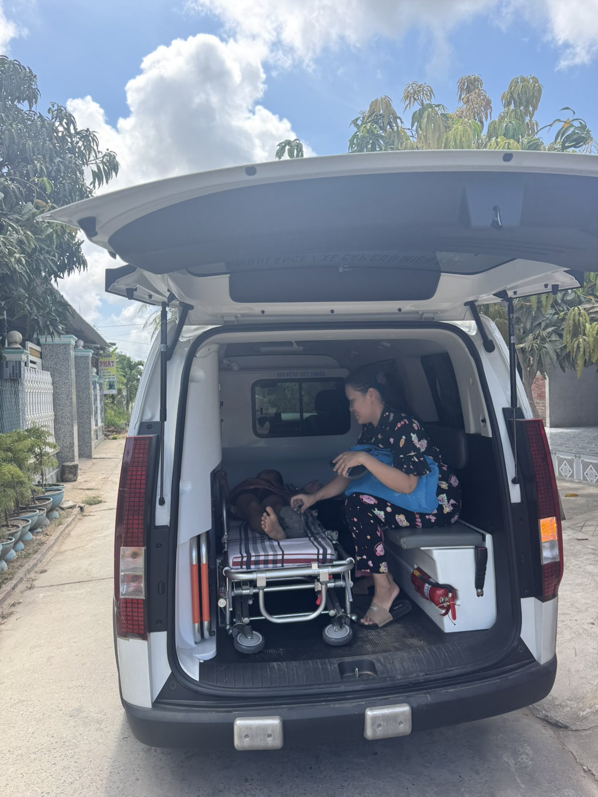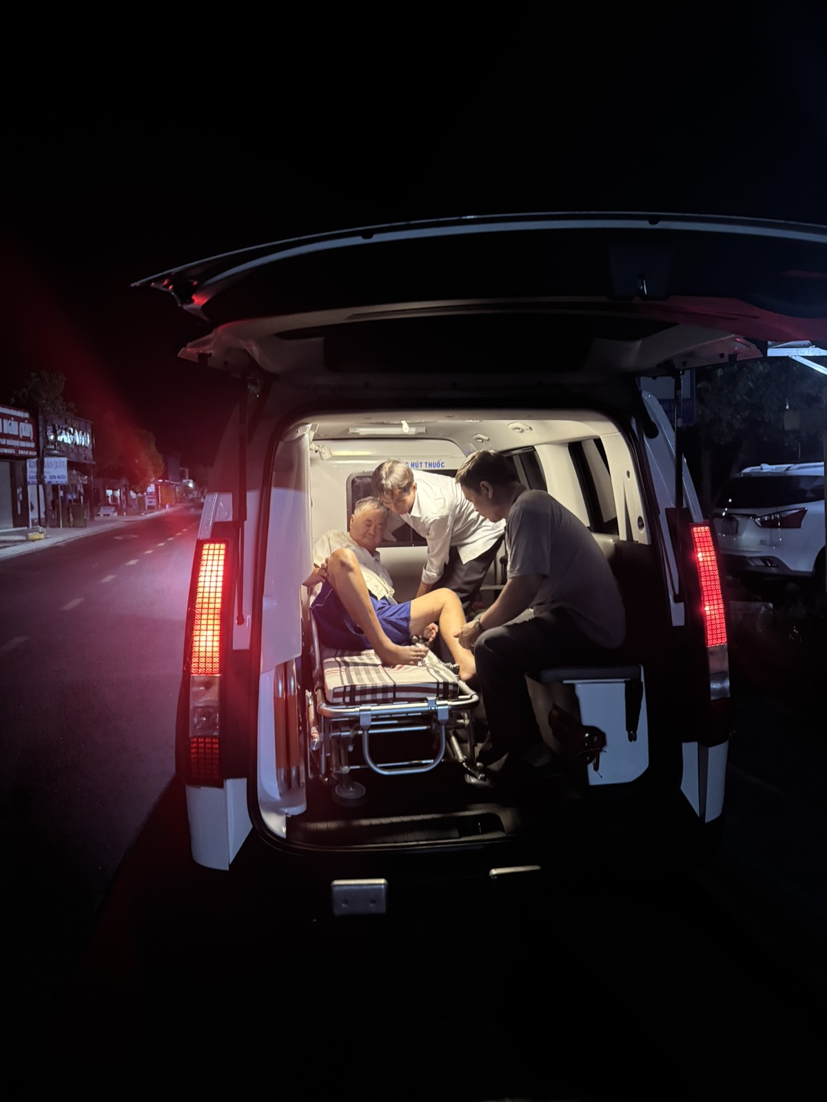 Ms. Tran Thi Be, 55 years old, lives in Khau Bang, Thanh Phong commune, Thanh Phu district, Ben Tre province. She has end-stage renal failure. The ambulance arrived at Ben Tre hospital at 4:00 a.m. on April 25, 2025. She currently lives with her children. The staff gave her a bottle of medicated green oil.