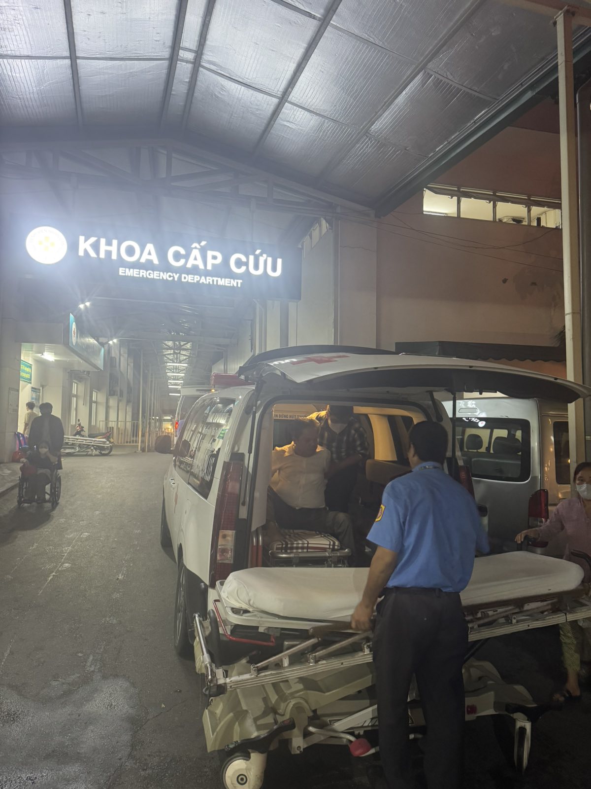 Mr. Doan Van Hung, 54 years old, lives in An Thuy hamlet, An Qui commune, Thanh Phu district, Ben Tre province. He was tired due to heart disease and had signs of a stroke. The ambulance arrived at 115 Saigon Hospital at 5:10 p.m. on April 24, 2025. He currently lives with his wife and children. The staff gave him a bottle of medicated green oil.