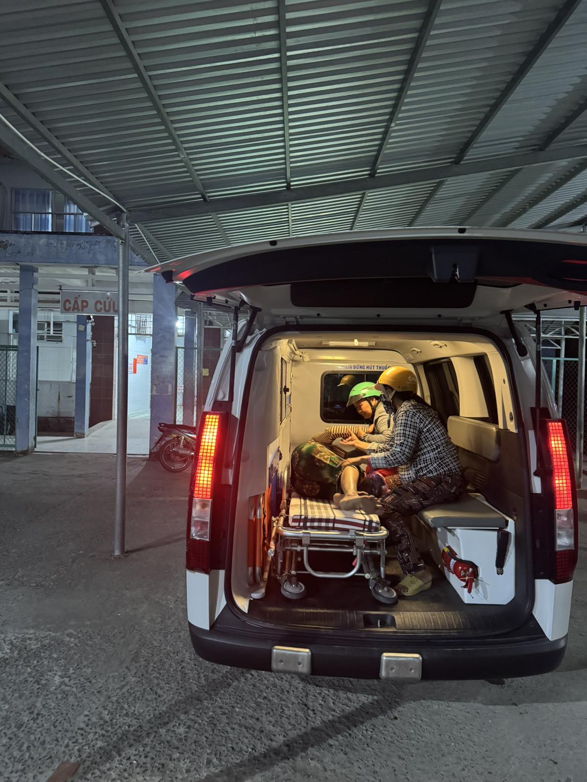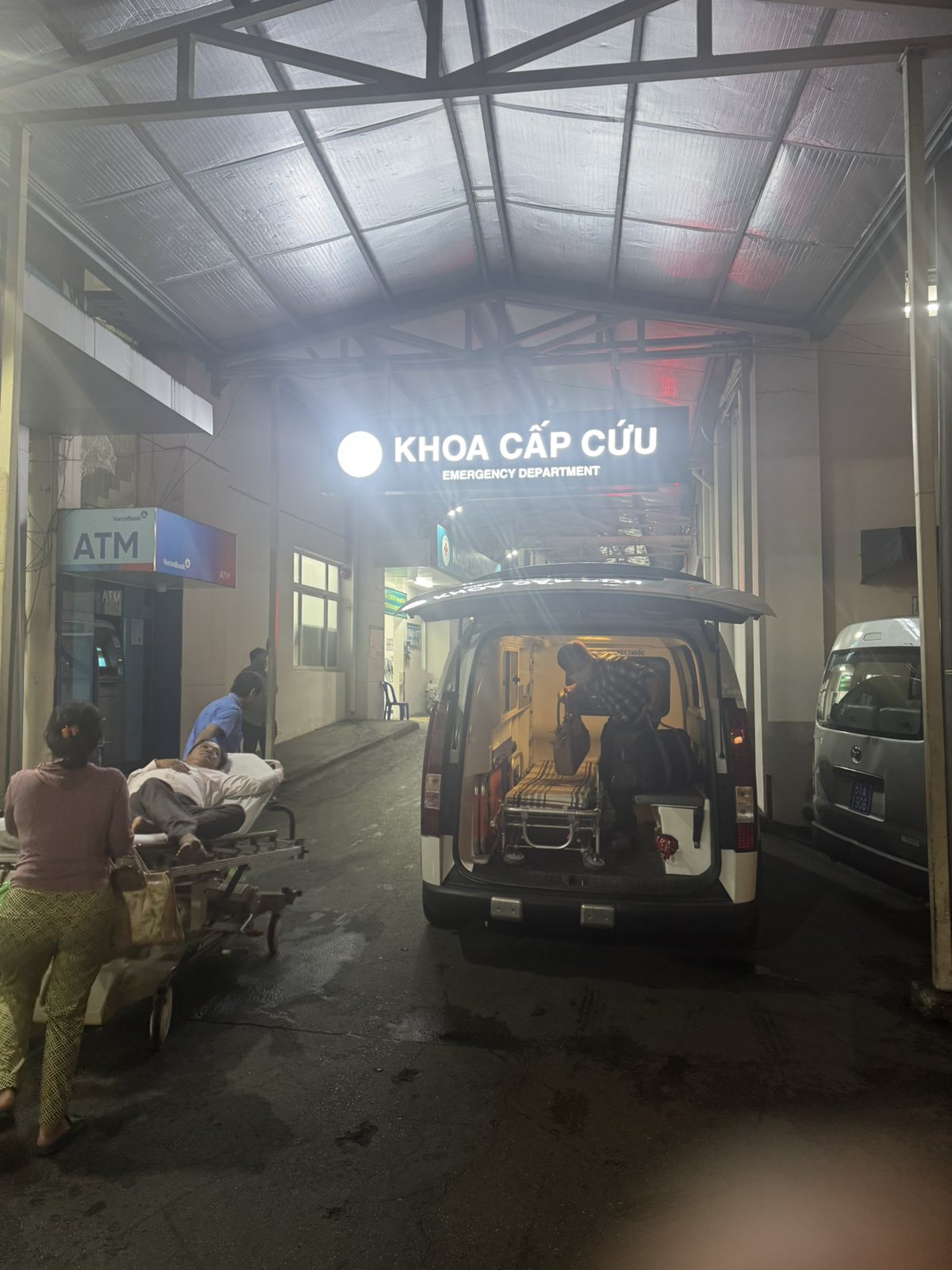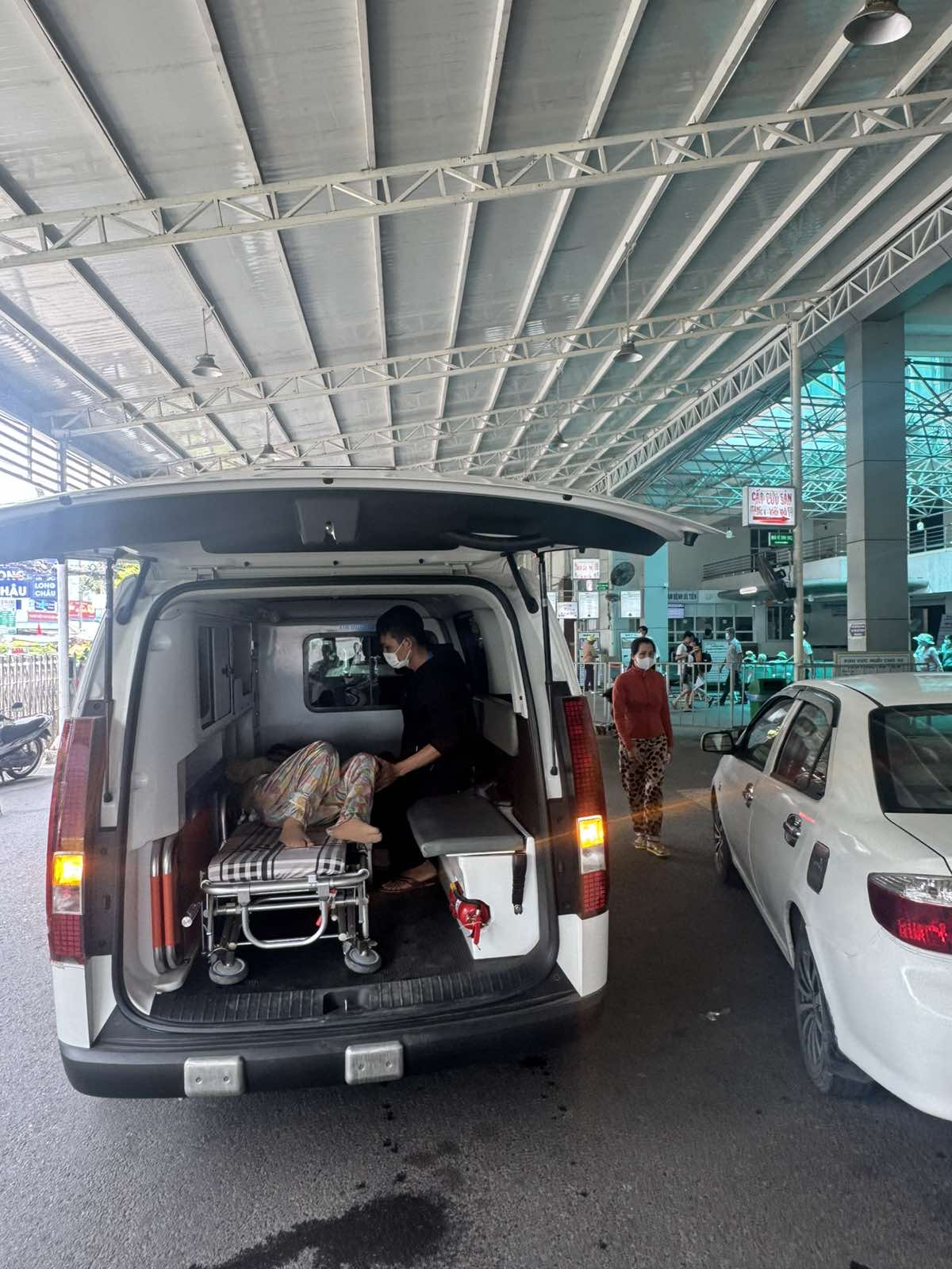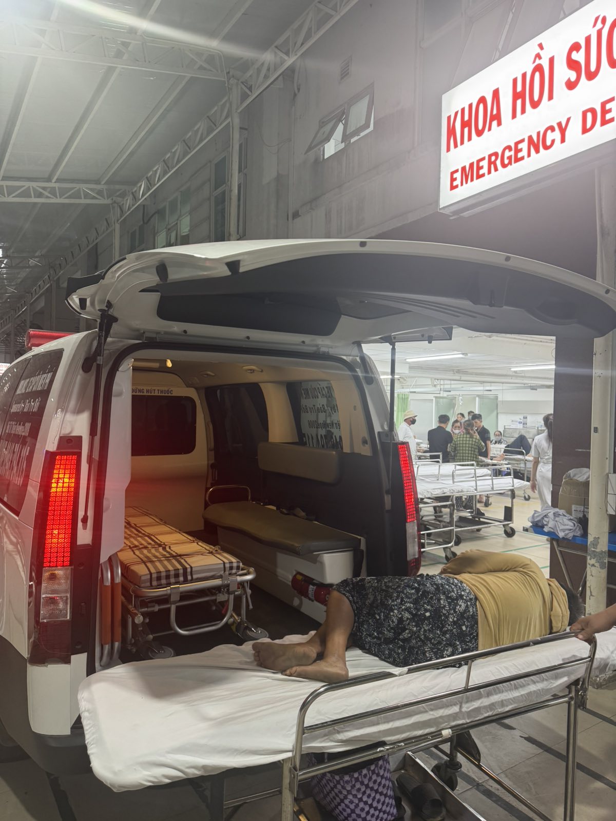 Ms. Vo Thi Diep, 52 years old, lives in Khau Bang, Thanh Phong commune, Thanh Phu district, Ben Tre province. She has complications from diabetes, hematuria. The ambulance arrived at Ben Tre hospital at 4:30 a.m. on April 26, 2025. She currently lives with her children. The staff gave her a bottle of medicated green oil.