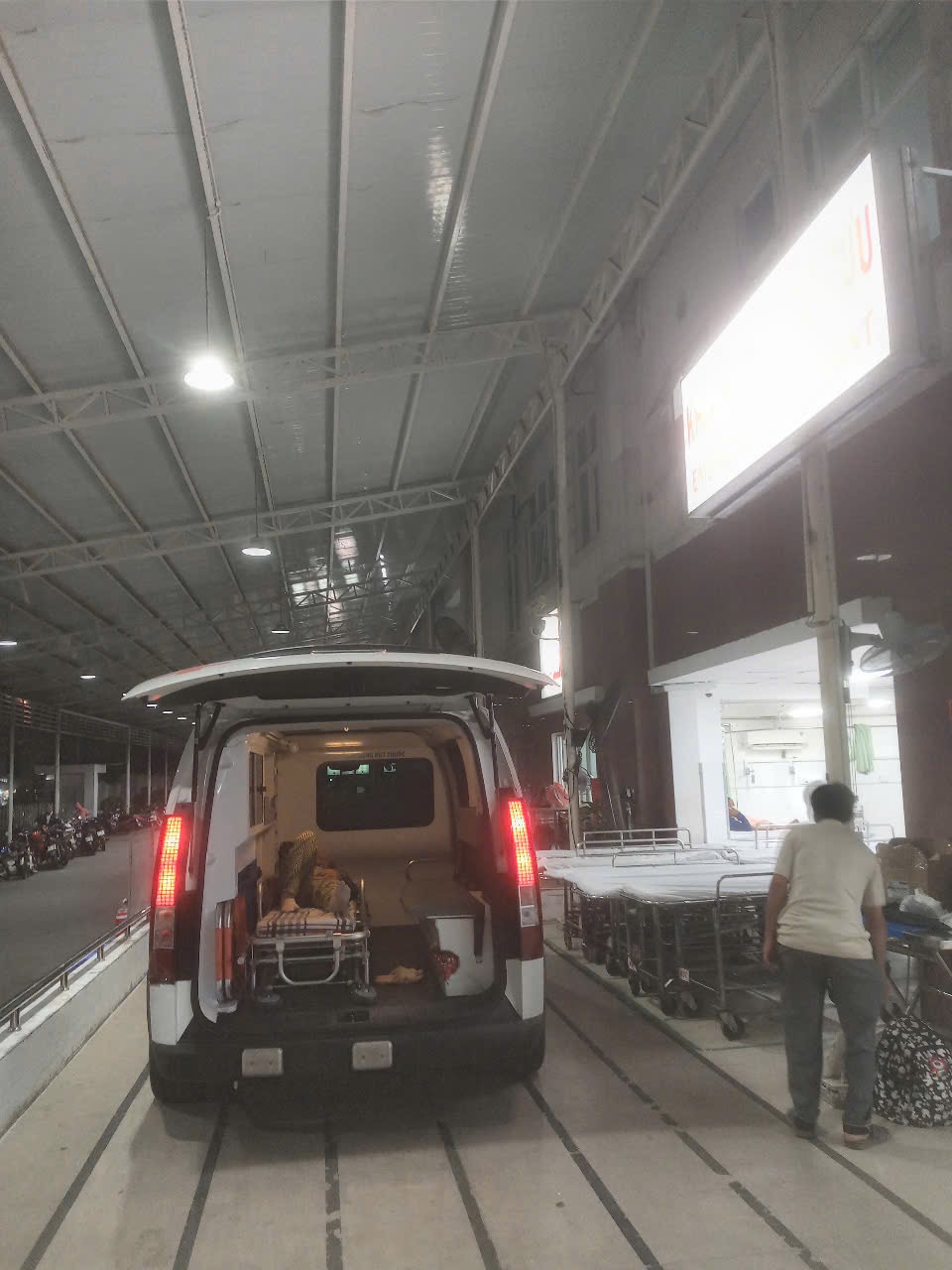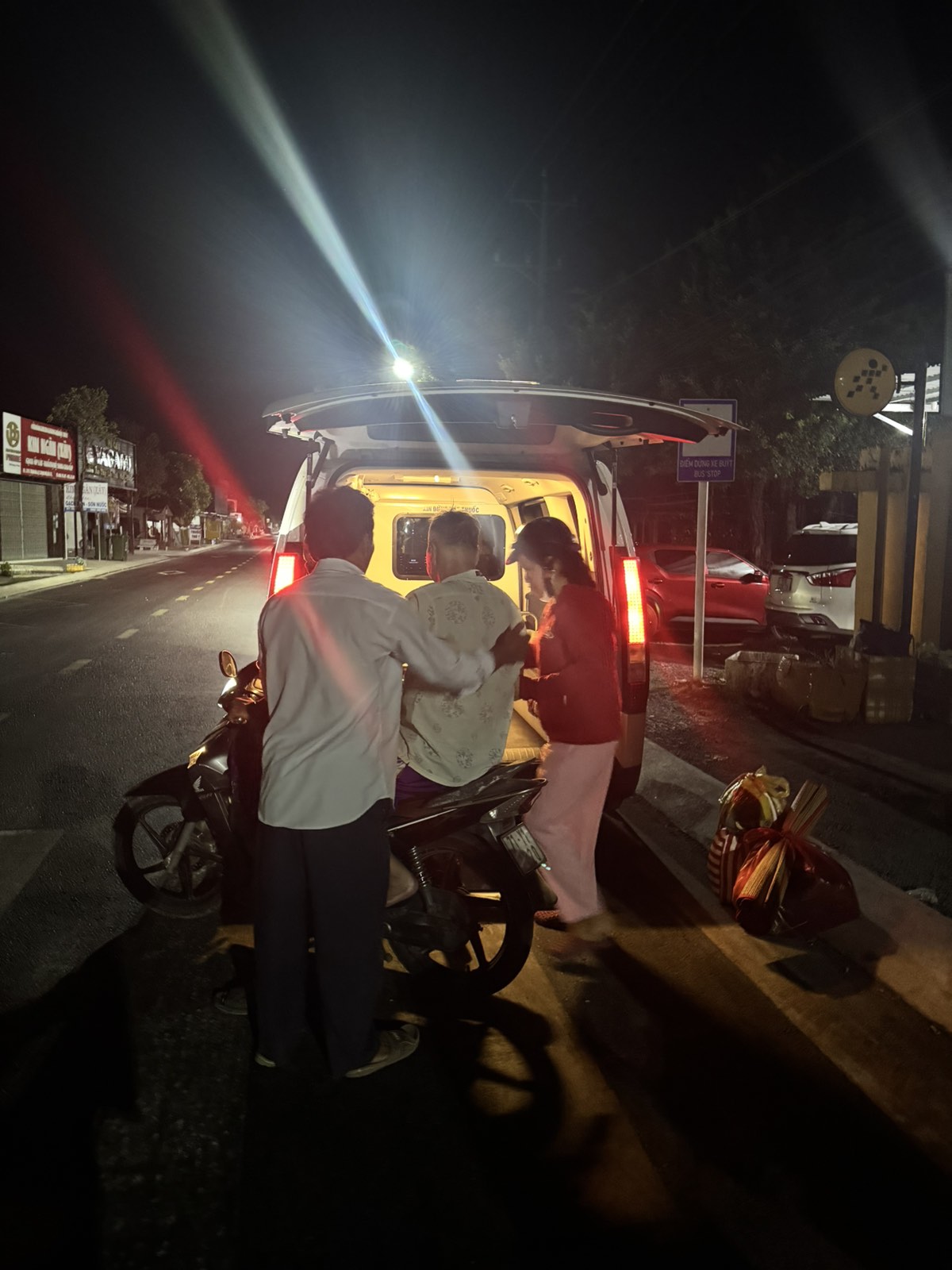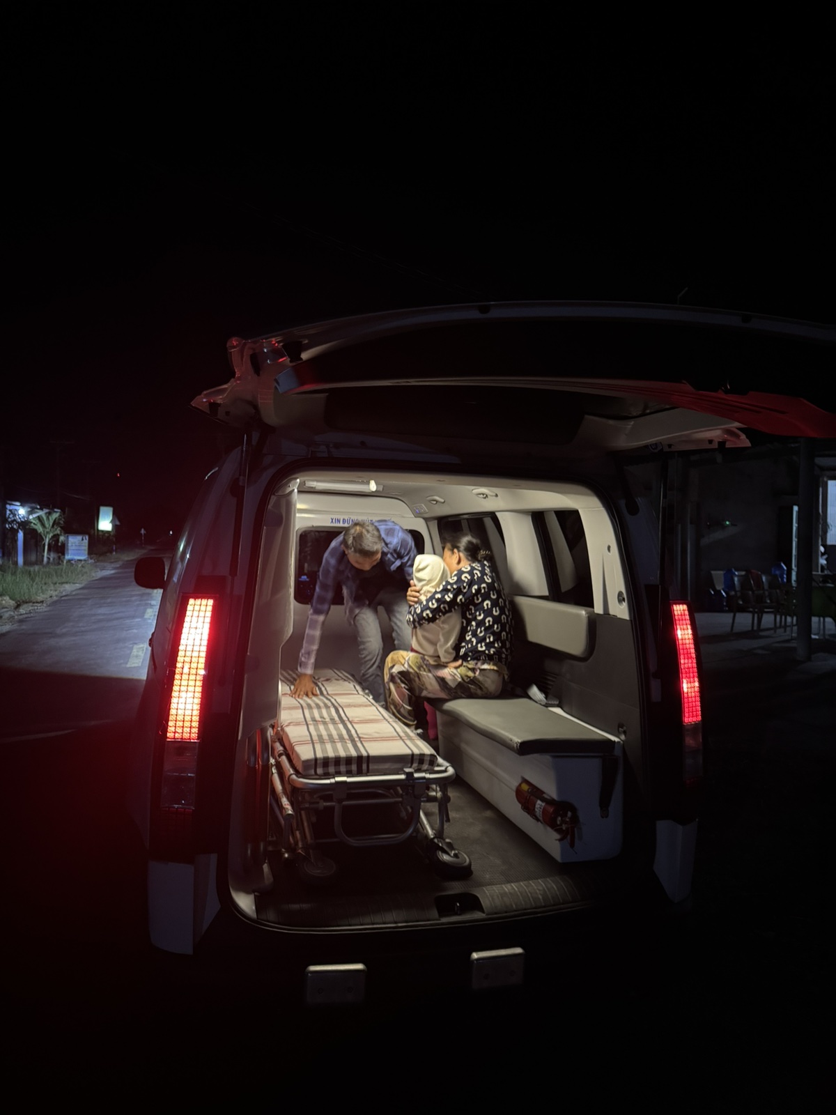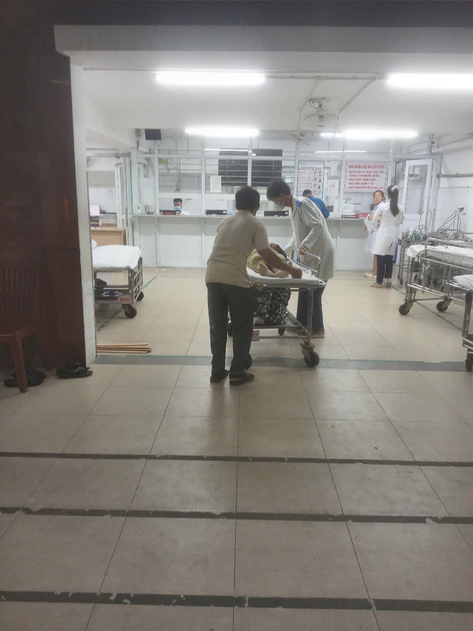 Ms. Vo Thi Diep, 52 years old, lives in Khau Bang, Thanh Phong commune, Thanh Phu district, Ben Tre province. She has complications from diabetes, hematuria. The ambulance arrived at Ben Tre hospital at 4:30 a.m. on April 26, 2025. She currently lives with her children. The staff gave her a bottle of medicated green oil.