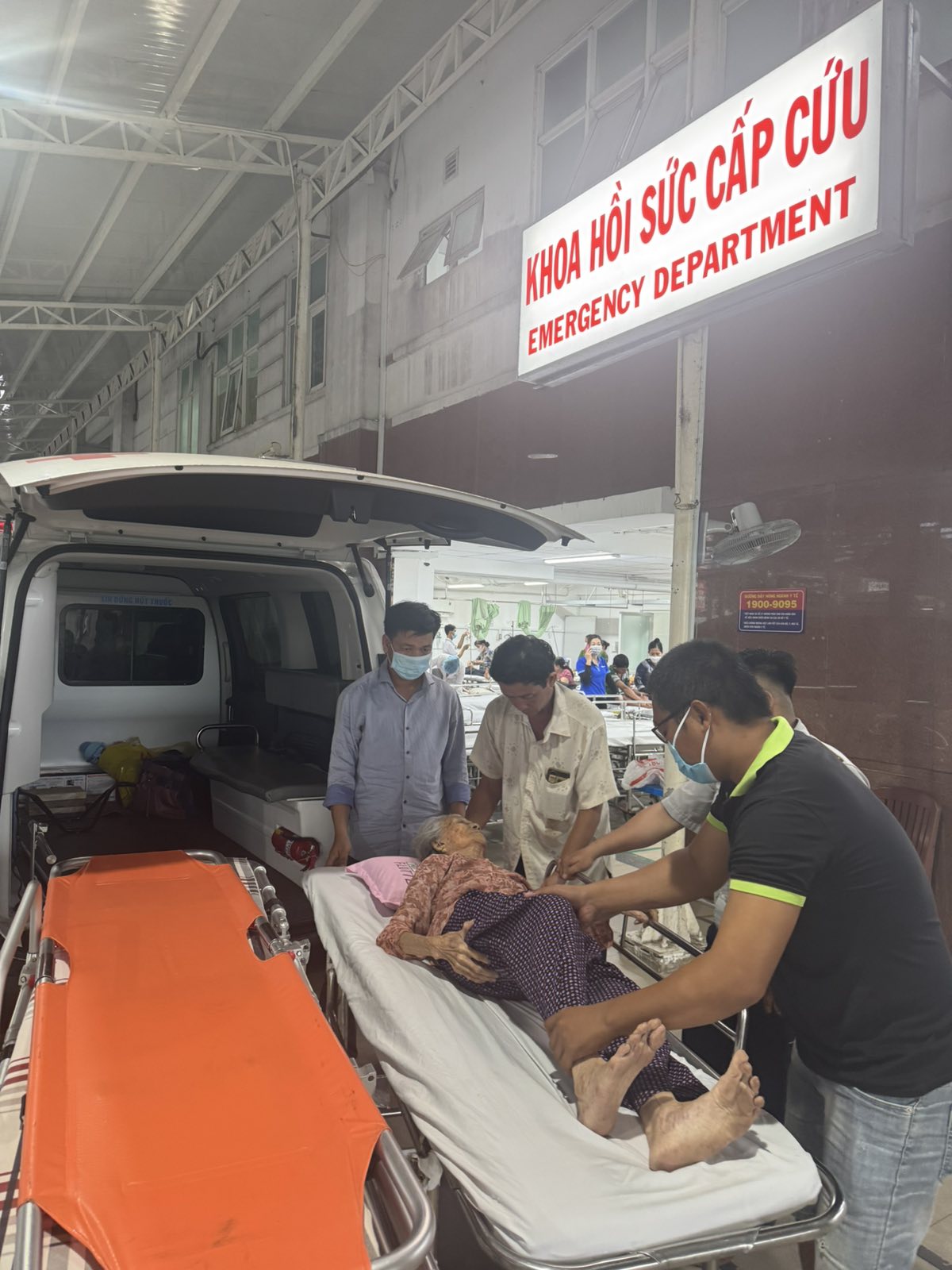 Ms. Huynh Thi Hien, 61 years old, lives in Con Mit, Thanh Phong commune, Thanh Phu district, Ben Tre province. She had complications from diabetes, the ambulance took her to Ben Tre hospital at 2:15 p.m. on April 17, 2025. She currently lives with her child.