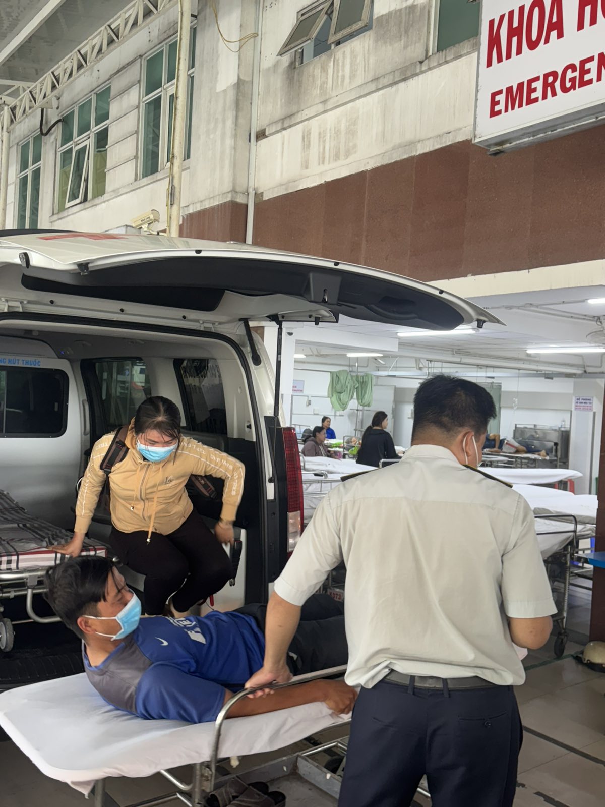 Dưới đây là hình ảnh của từng bệnh nhân lúc lên xe Cấp Cứu và lúc đến nhà thương: