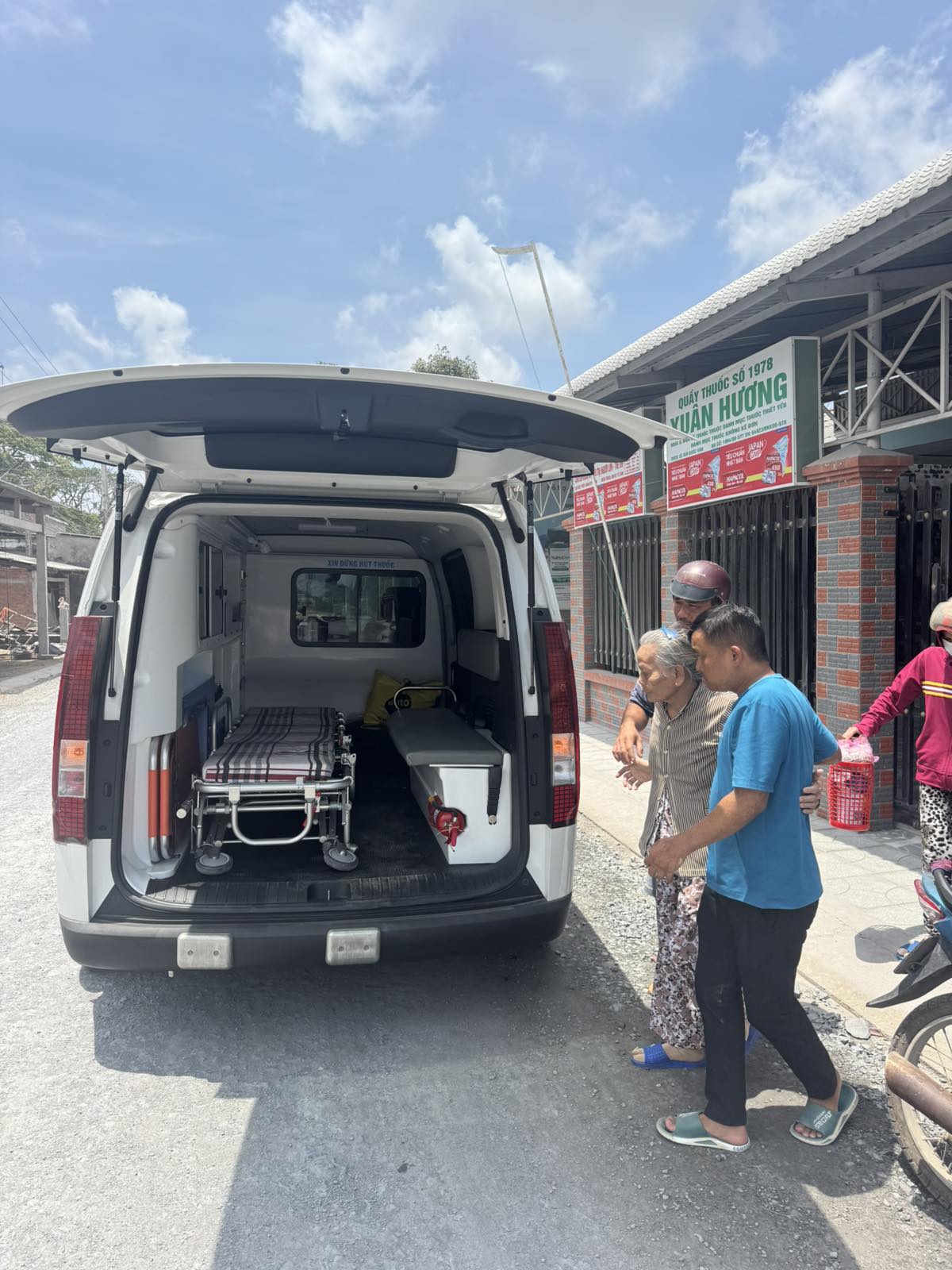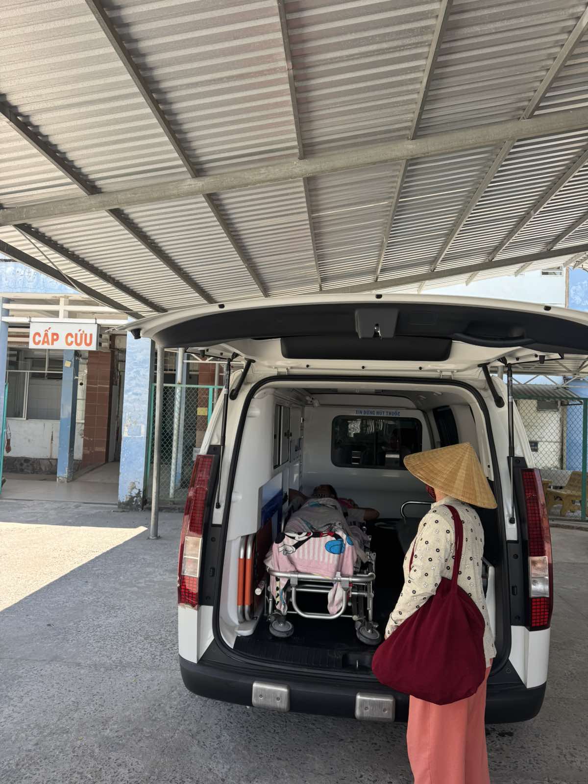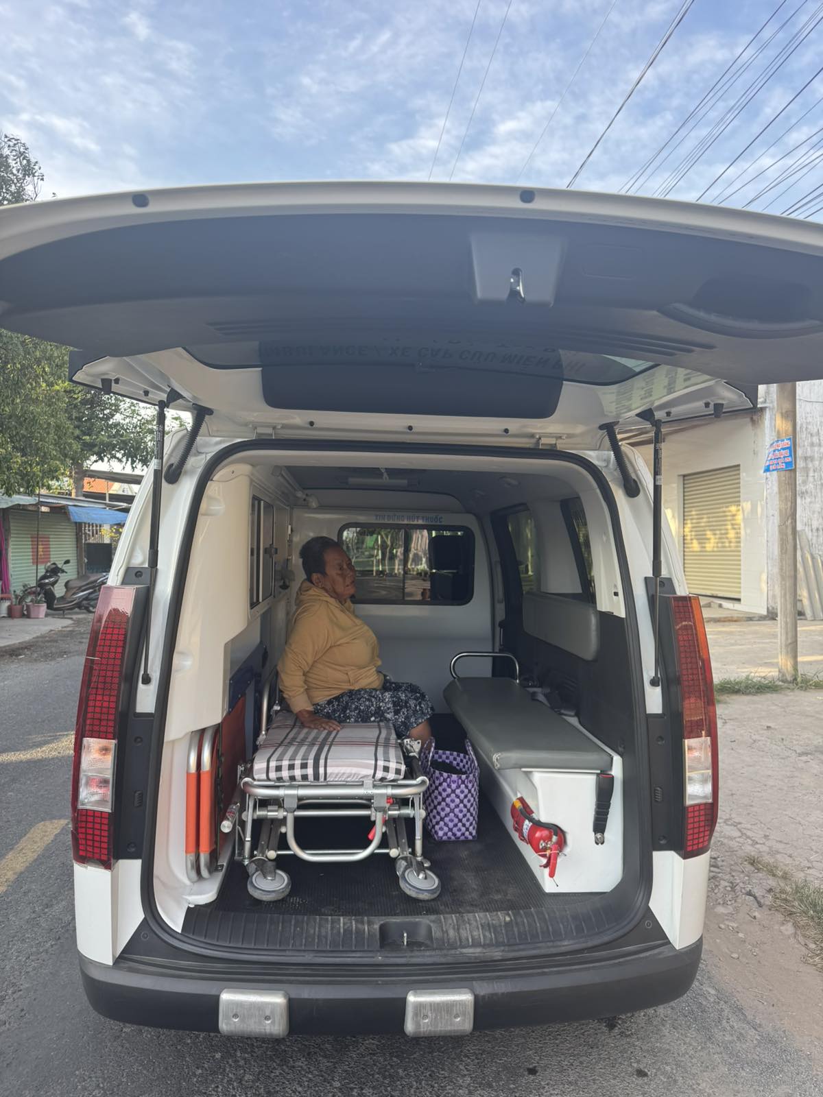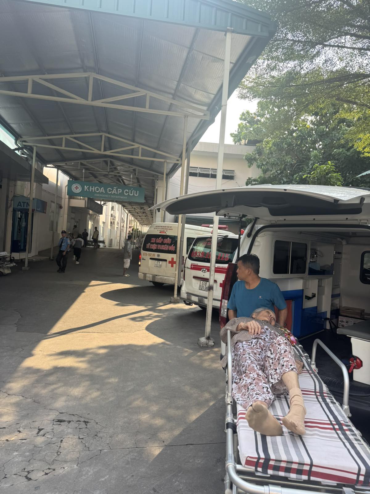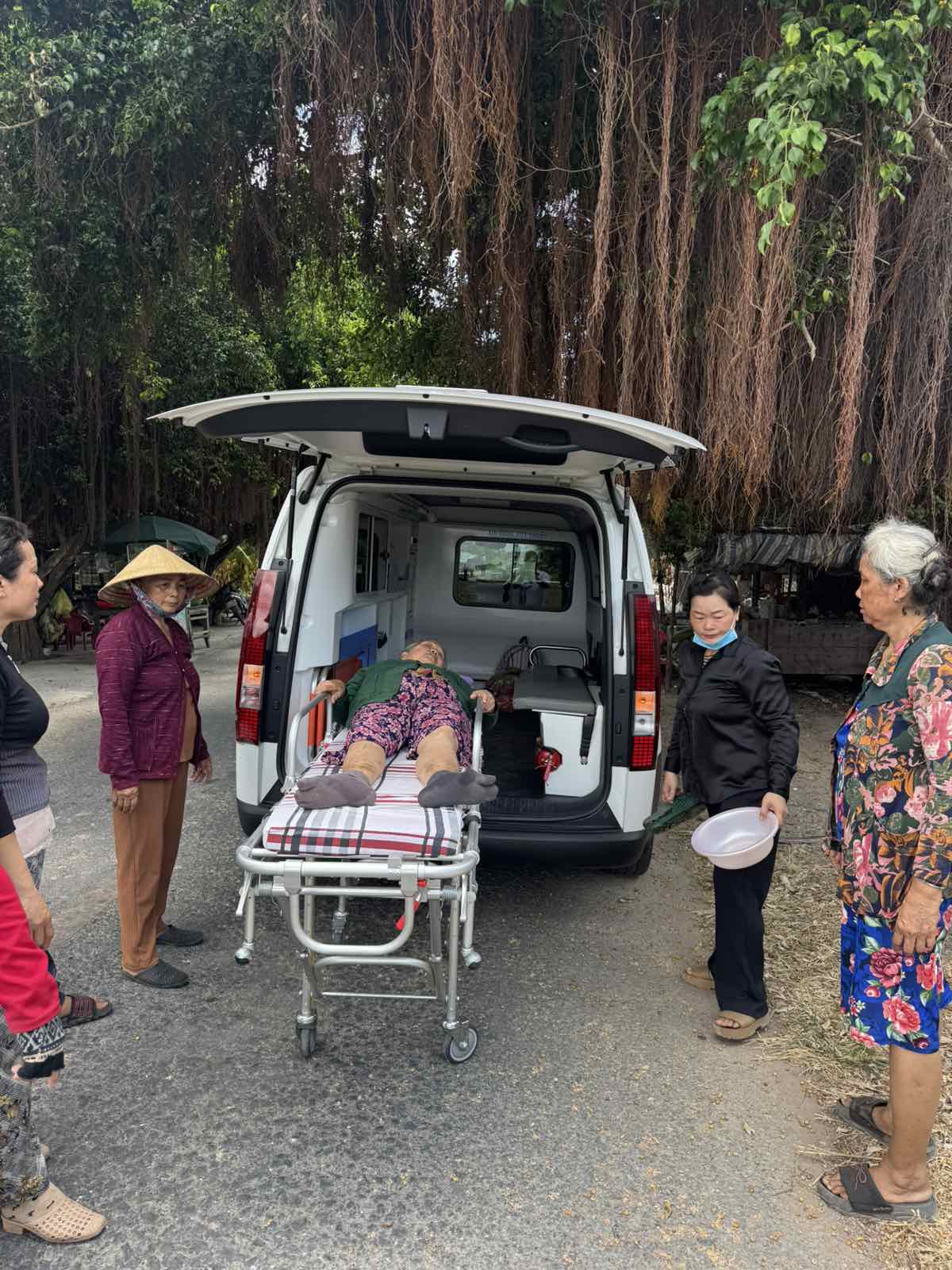 Ms. Tran Thi Hoa, 72 years old, living in An Hoi hamlet, An Thuan commune, Thanh Phu district, Ben Tre province. She has a narrowed heart valve and is being treated at Hospital 115. She had a relapse and was tired again. The ambulance took her to Hospital 15 Saigon at 12:40 on April 28, 2025. She currently lives with her children and grandchildren. The staff gave her a bottle of medicated green oil.