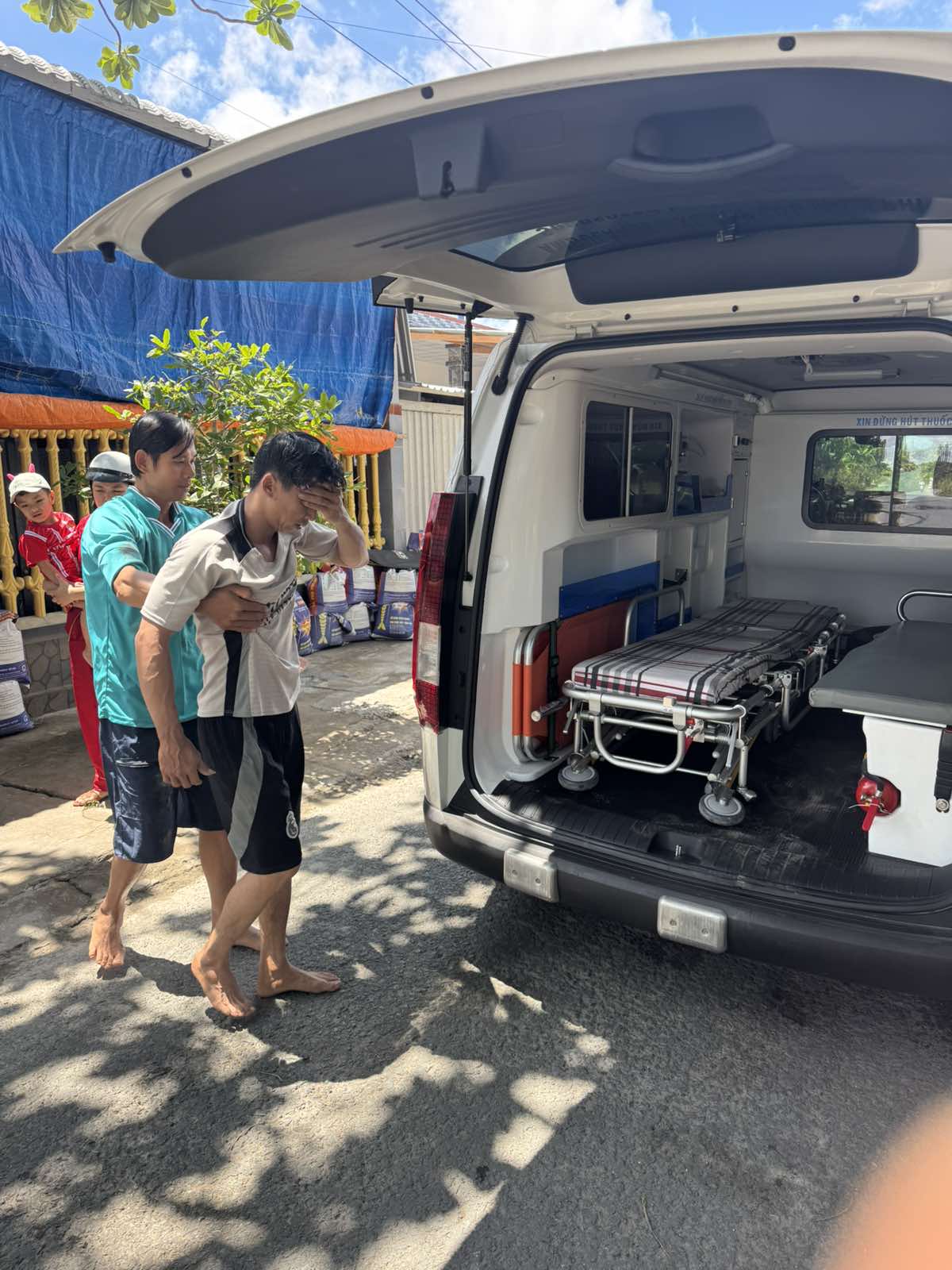 Mr. Nguyen Van Phuc, 38 years old, lives in Cong Ho, Giao Thanh Commune, Thanh Phu District, Ben Tre Province. He had a work accident that caused a head injury. The ambulance took her to Thanh Phu Hospital at 10:45 a.m. on April 27, 2025. He currently lives with his wife and children.