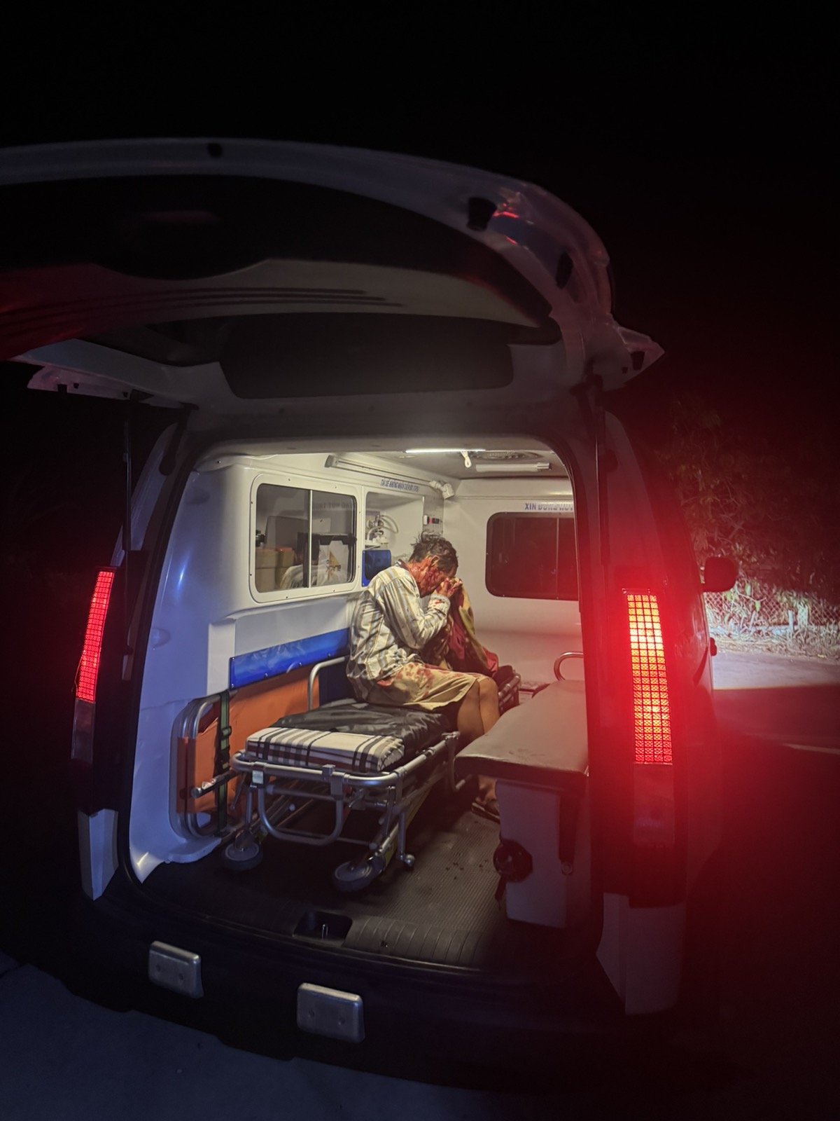 Below are the pictures of patients getting on the ambulance and getting off at the hospital: