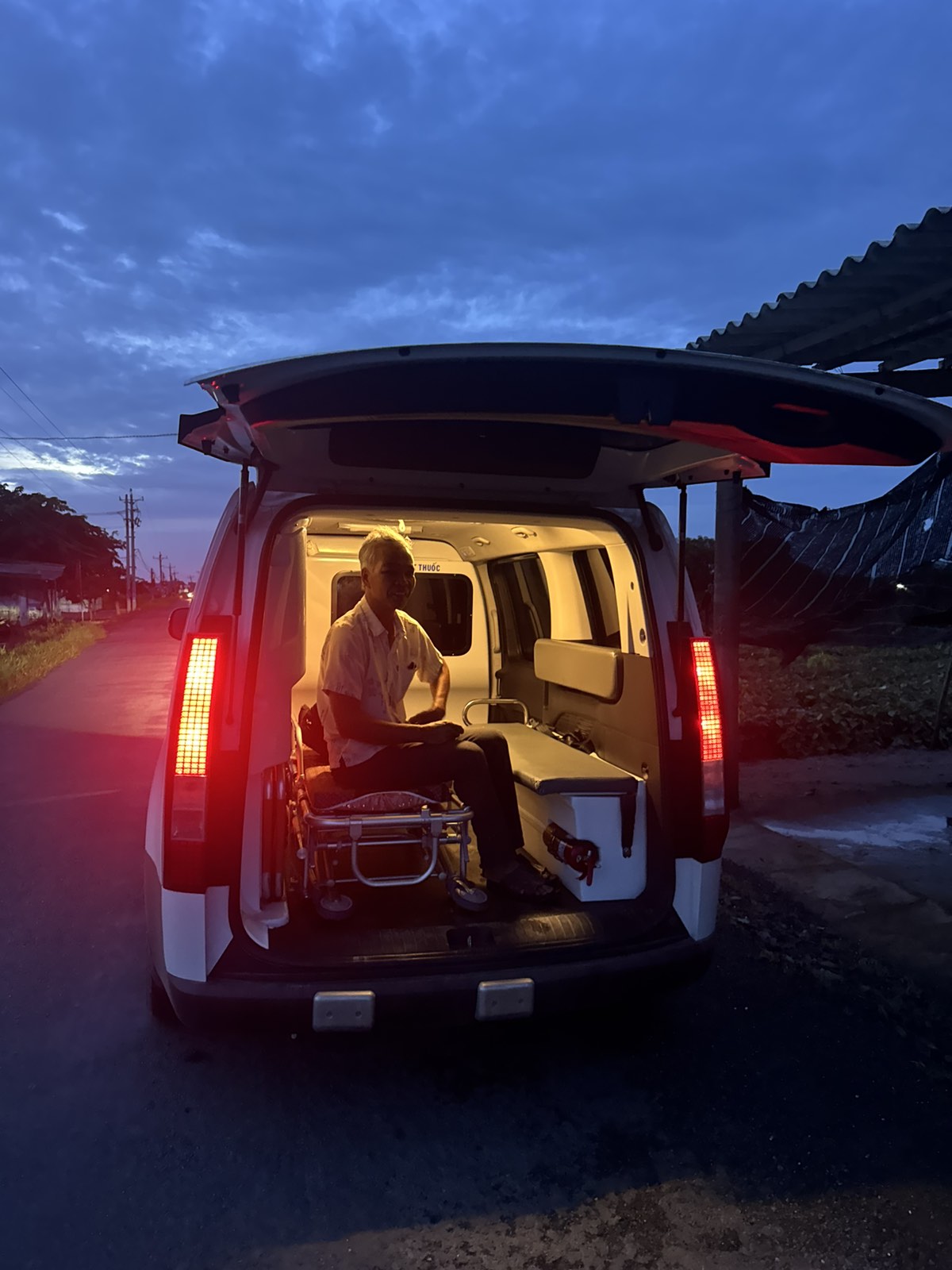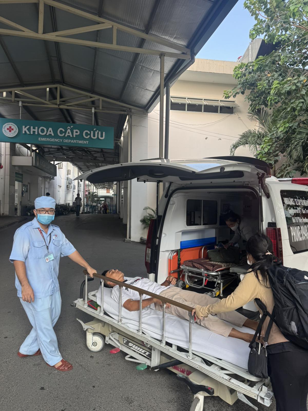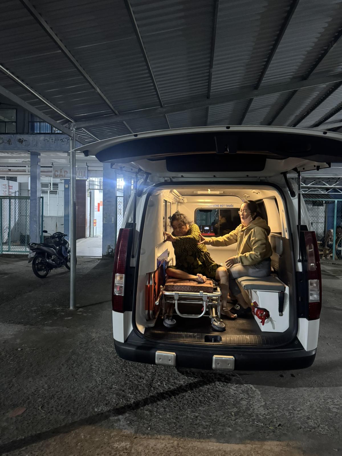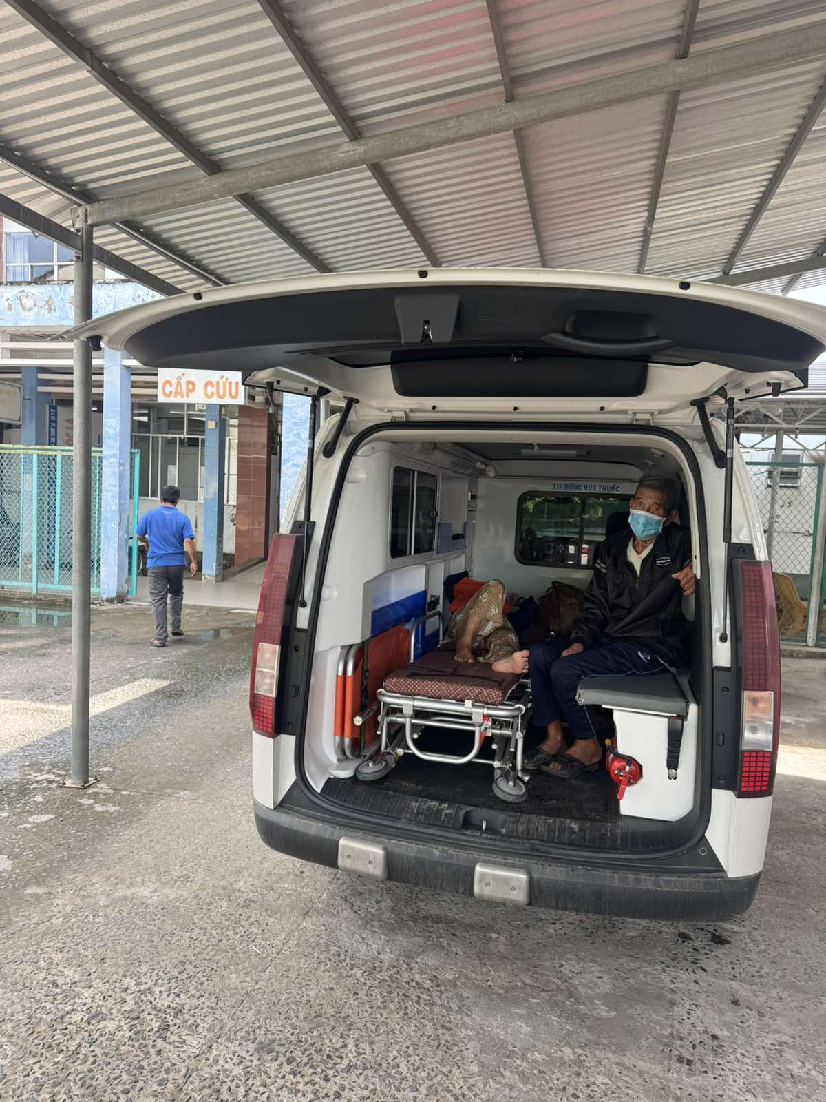 Mr. Đỗ Hoàng Long, 62 years old, lives in Giồng Bàng, Thạnh Phong Commune, Vĩnh Long Province. He previously suffered a stroke that left him paralyzed on one side and is currently vomiting blood. He was transported by ambulance to Thạnh Phú Hospital at 6:30 AM on August 30, 2025. He received a donation of $100 (2,600,000 VND). This amount was kindly donated by Vivian Lê and Erik Tiêu, who were moved by his situation.