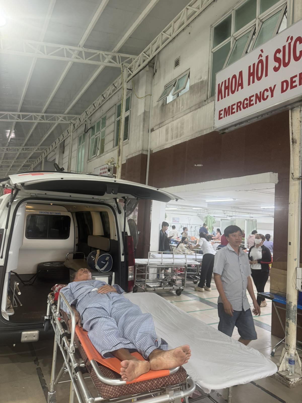 Mr. Nguyễn Văn Tha, 59 years old, lives in Ca Cát, Thạnh Hải Commune, Vĩnh Long Province. He has a lung tumor and was transported by ambulance to Bến Tre Hospital at 3:30 PM on August 25, 2025. He currently lives with his wife and has no children. His wife is currently suffering from liver cancer.