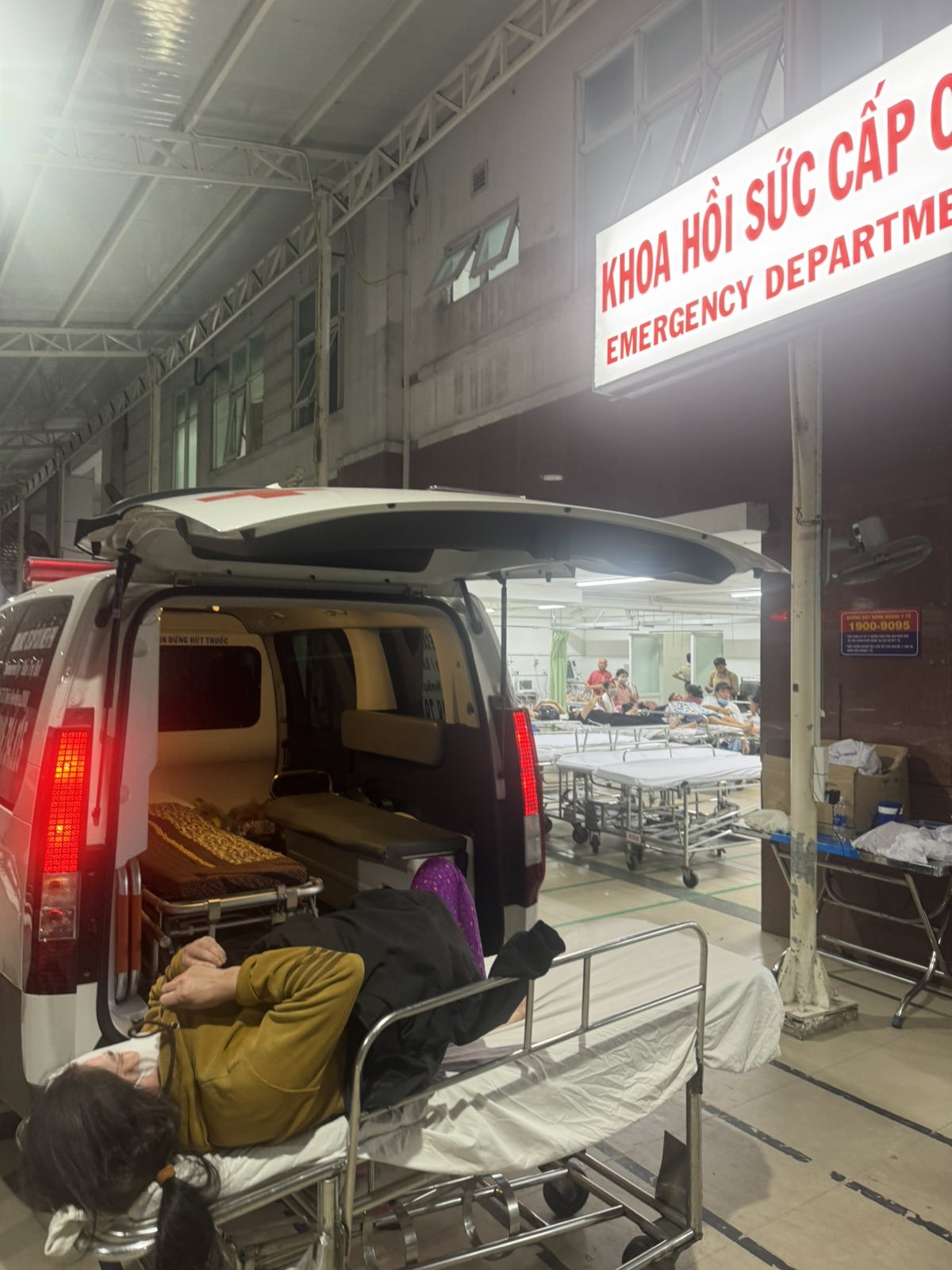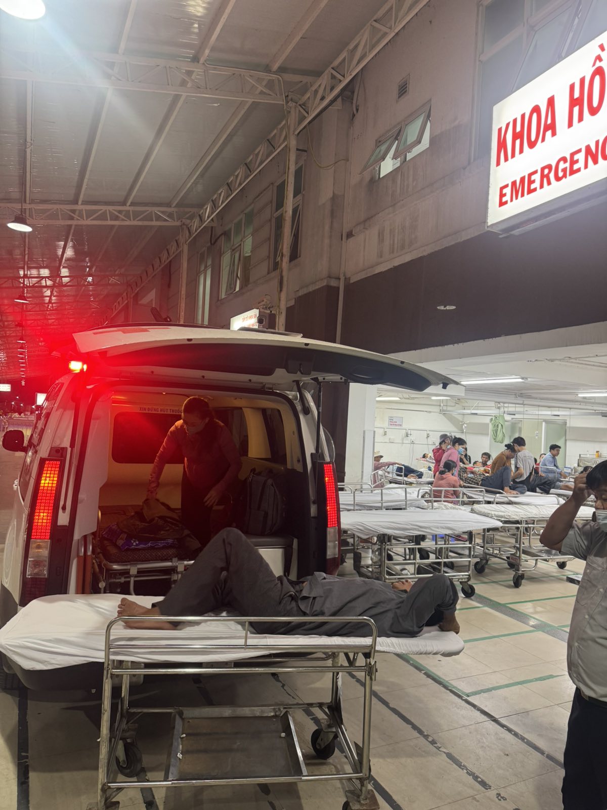 Dưới đây là hình ảnh của từng bệnh nhân lúc lên xe Cấp Cứu và lúc đến nhà thương: