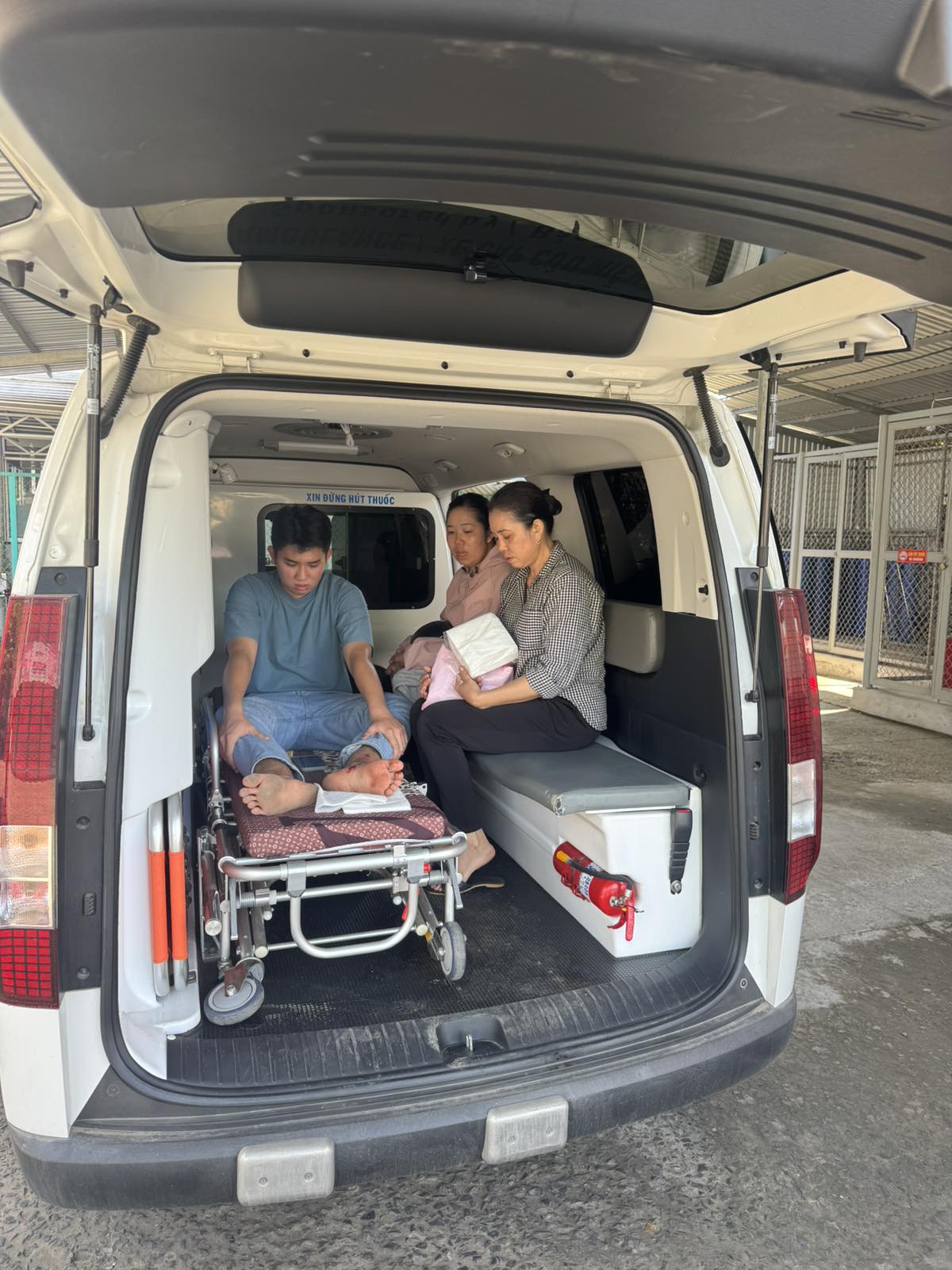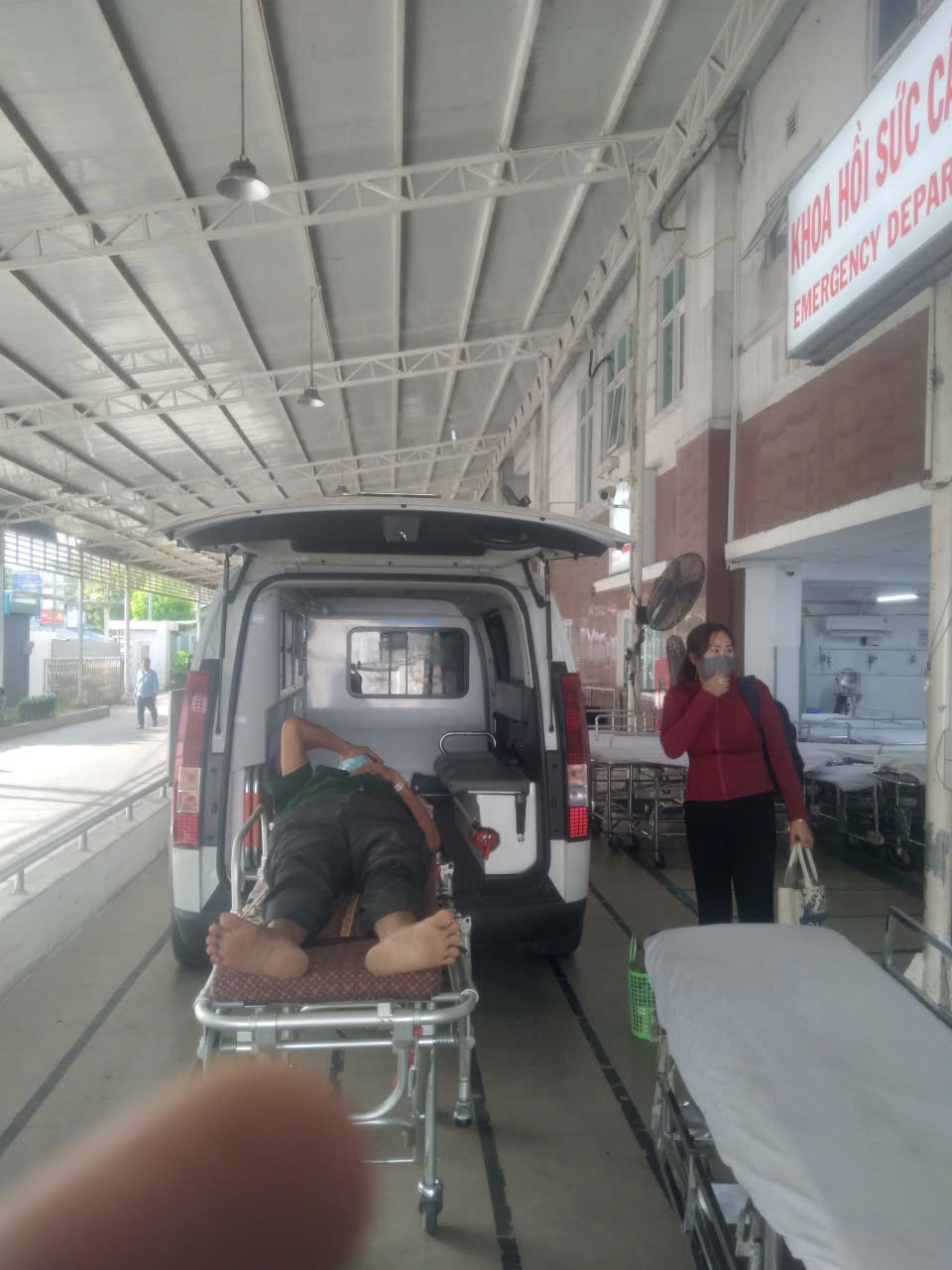 Mr. Lương Minh Hiếu, 41 years old, lives in An Nhơn, An Qui Commune, Vĩnh Long Province. He felt unwell due to complications from diabetes. He was transported by ambulance to Bến Tre Hospital at 6:00 AM on August 29, 2025. He currently lives with his wife and child and was given one bottle of medicated green oil.