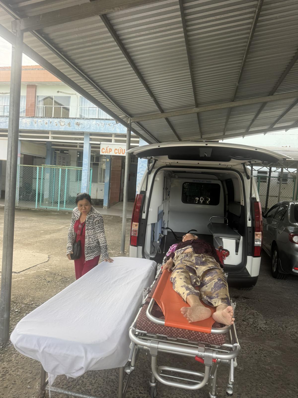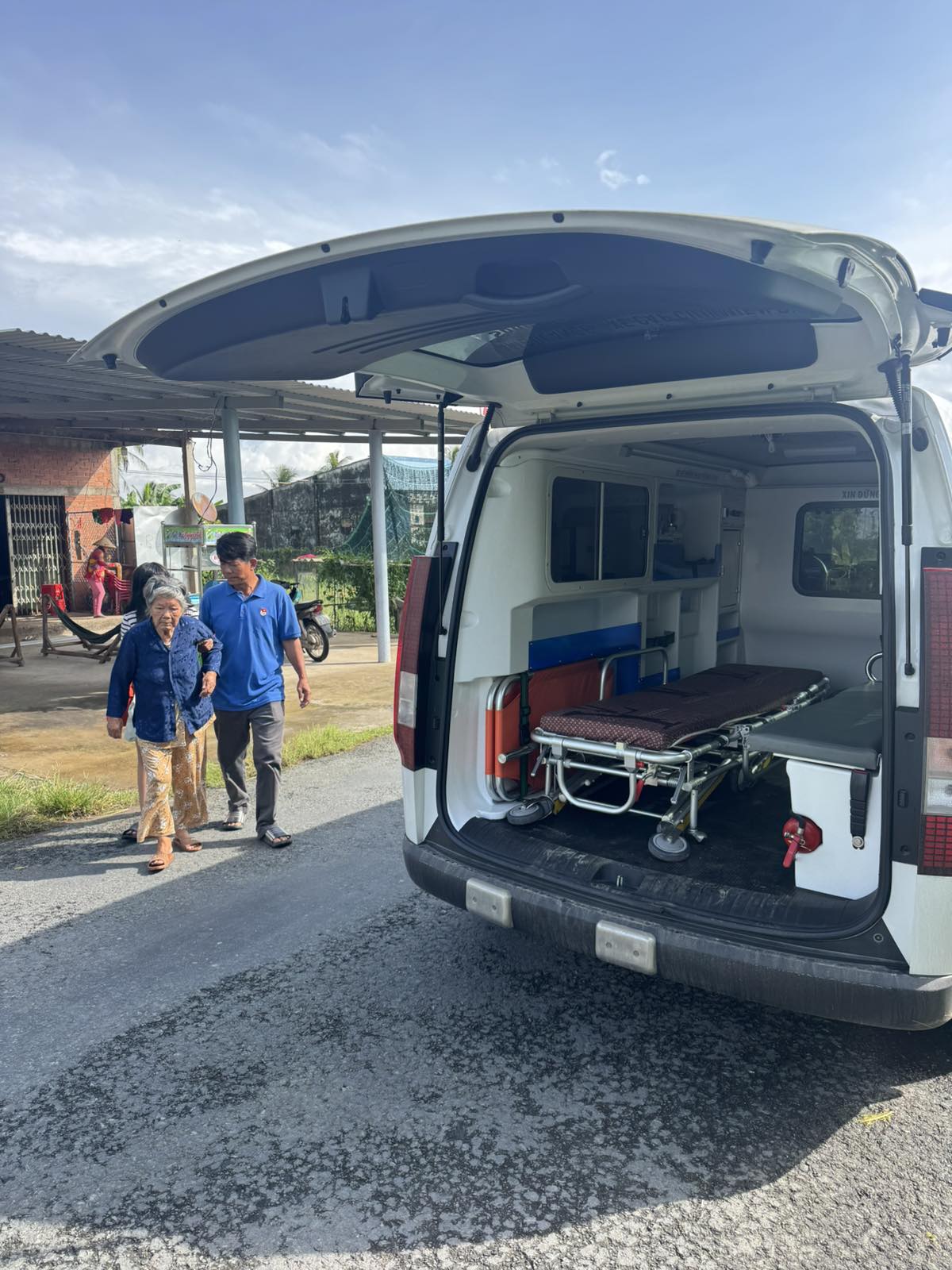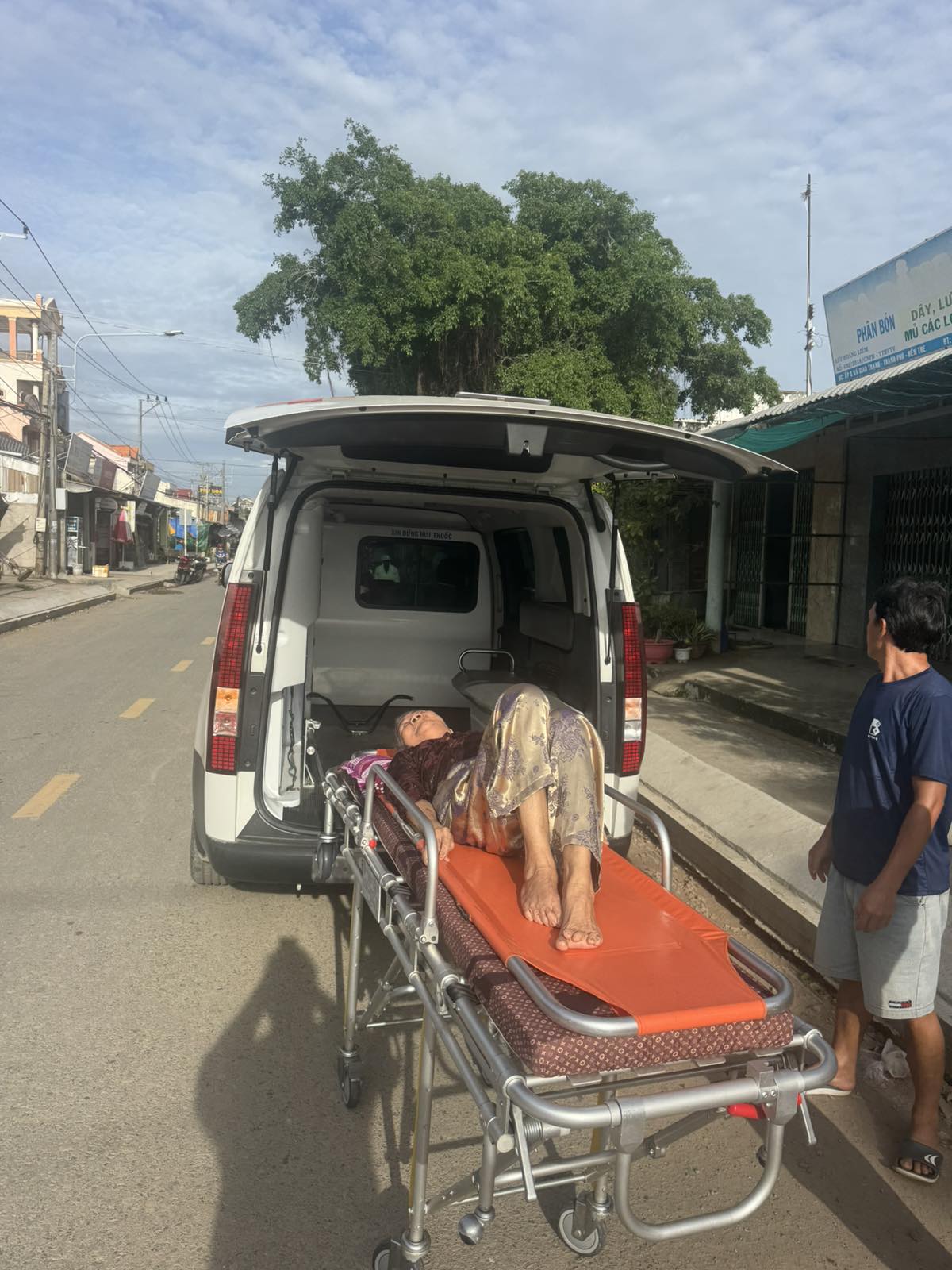 Mrs. Phạm Thị Xạ, 80 years old, lives in Giồng Bàng, Thạnh Phong Commune (formerly Giao Thạnh Commune), Vĩnh Long Province. She felt unwell due to a heart condition. She was transported by ambulance to Thạnh Phú Hospital at 7:45 AM on August 25, 2025. She currently lives with her child.