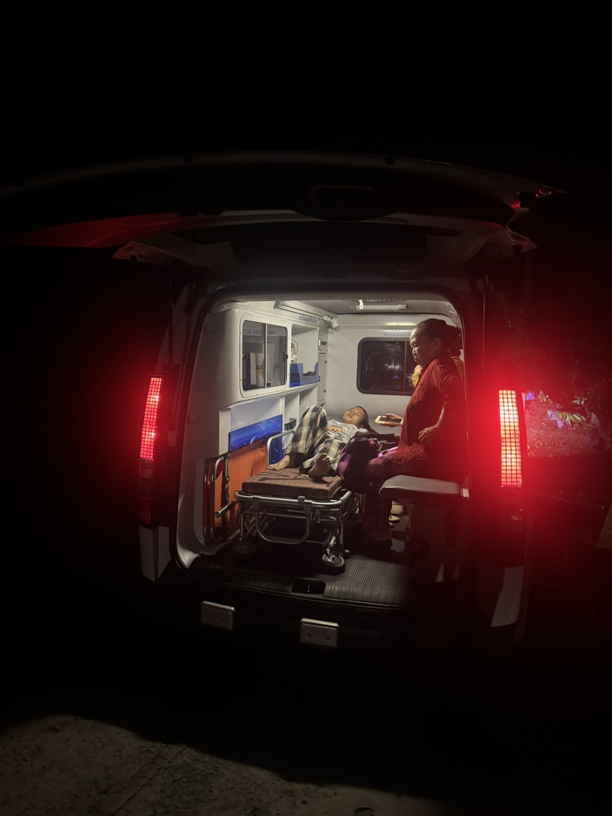Below are the pictures of patients getting on the ambulance and getting off at the hospital: