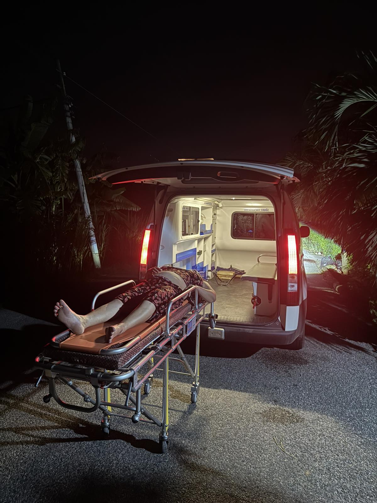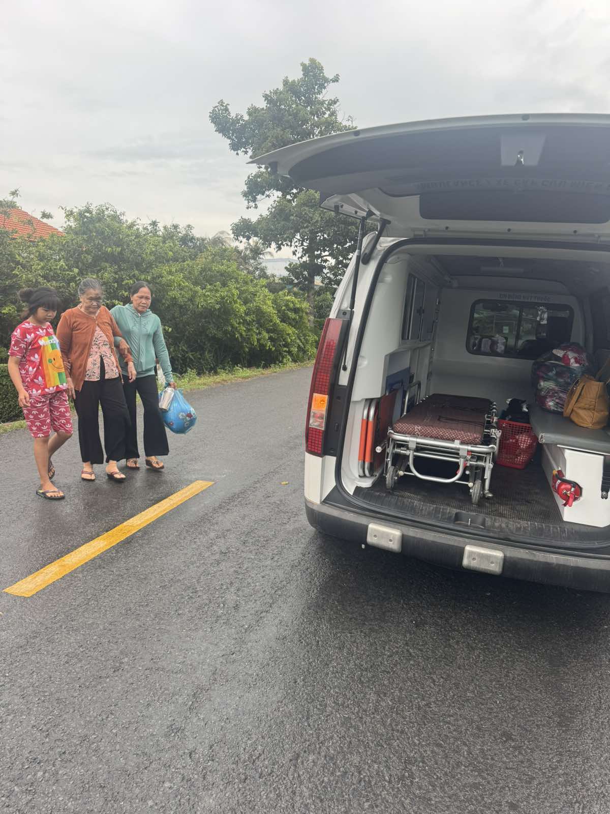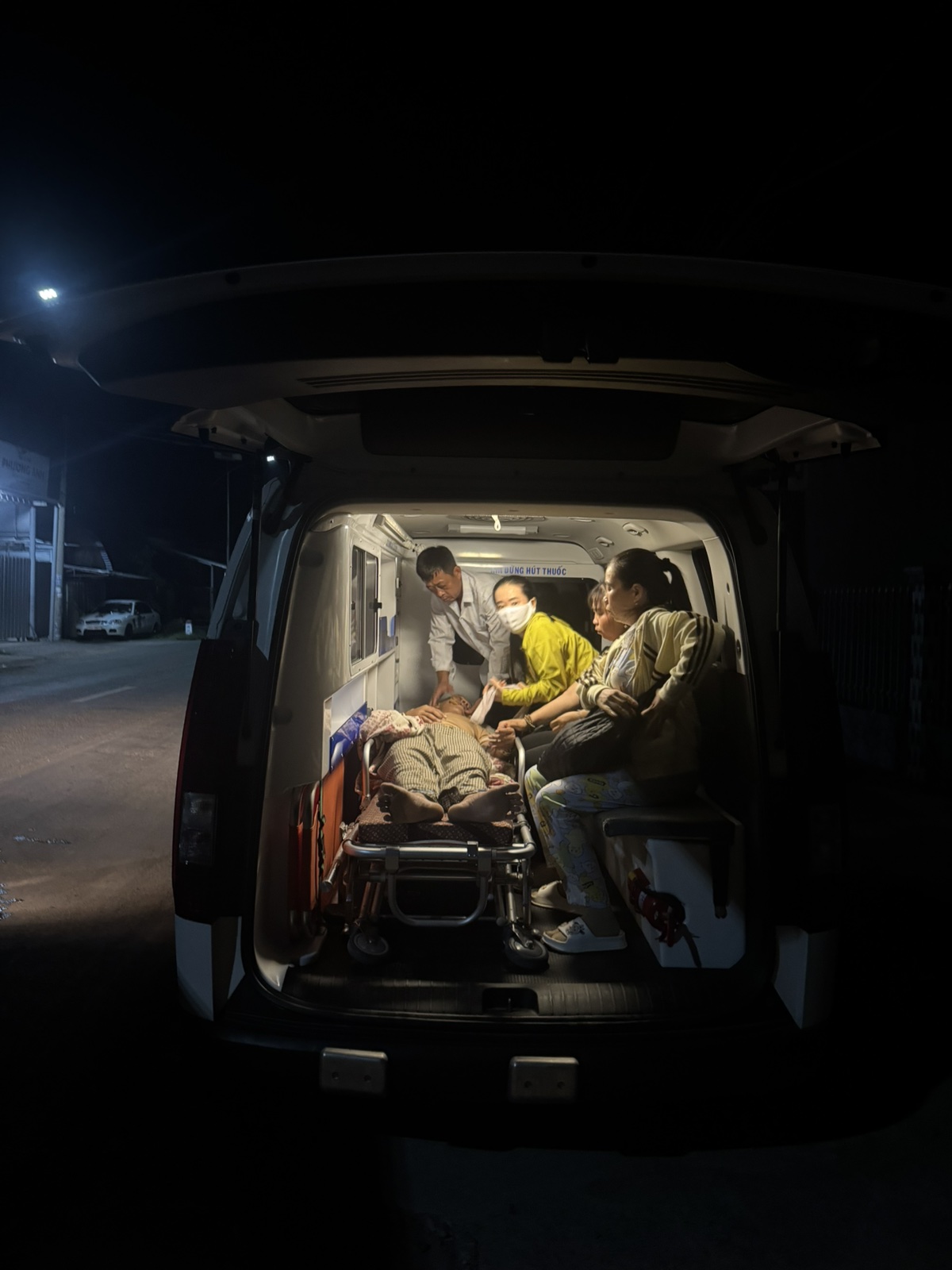 Mrs. Nguyễn Thị Sàn, 69 years old, lives in Cồn Chim, Thạnh Phong commune, Vĩnh Long province. She experienced fatigue and shortness of breath due to diabetes complications. An ambulance transported her to Thạnh Phú Hospital at 6:30 AM on August 5, 2025. She currently lives with her husband and child.