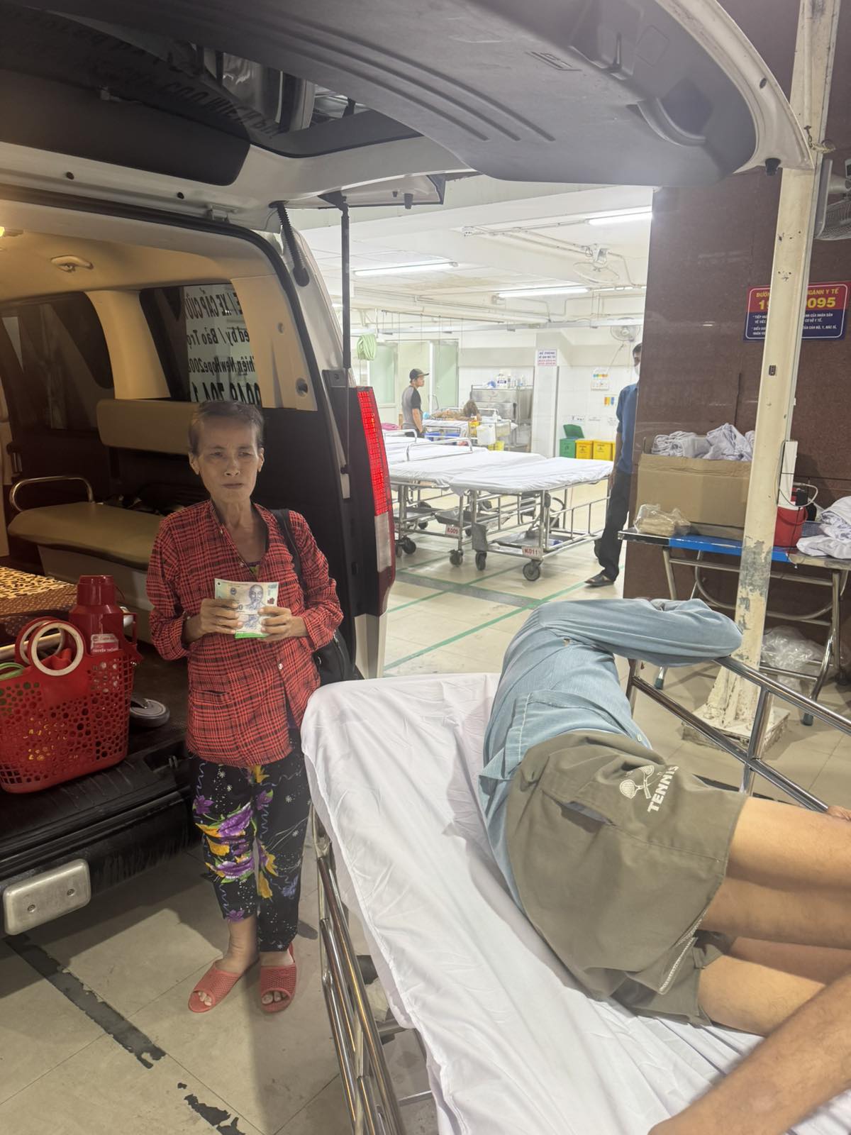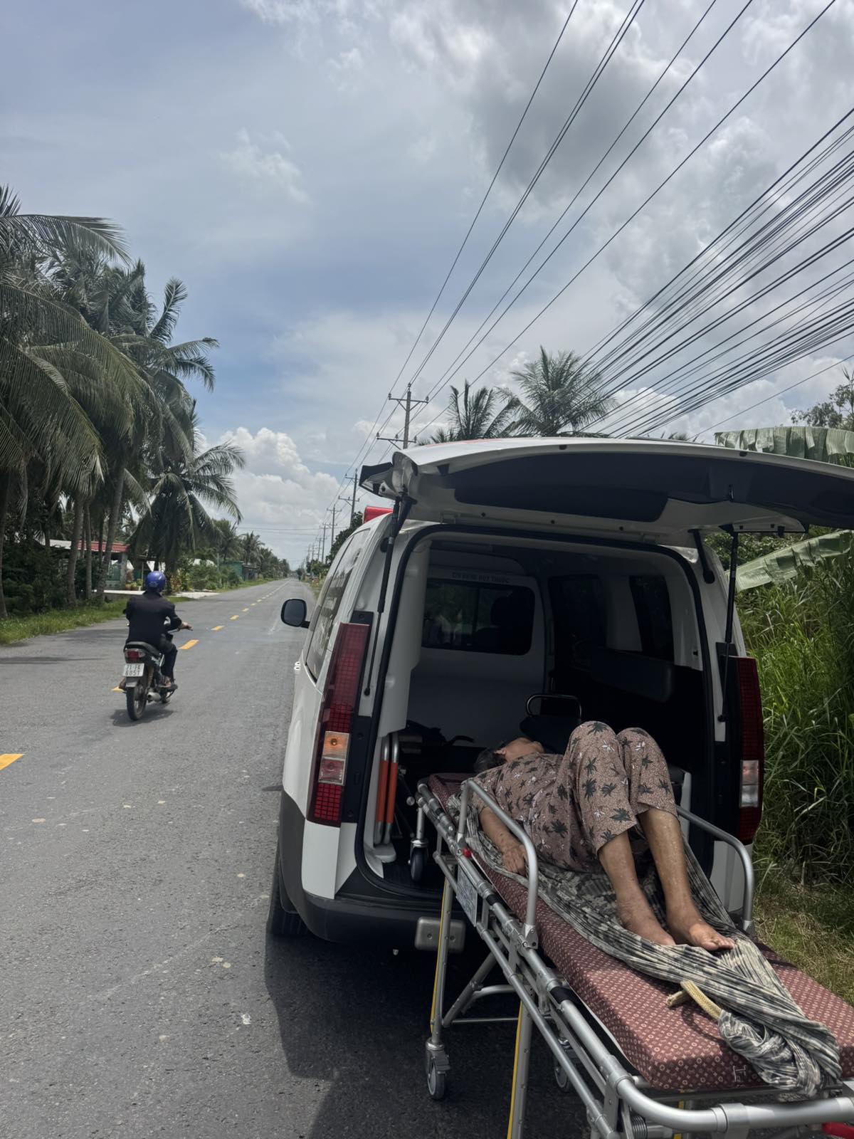 Mrs. Trịnh Thị Kim, 66 years old, lives in Cồn Lớn, Thạnh Phong commune, Vĩnh Long province. She became ill due to complications from diabetes and was taken by ambulance to Bến Tre Hospital at 2:20 AM on August 5, 2025. She currently lives with her children and grandchildren.
