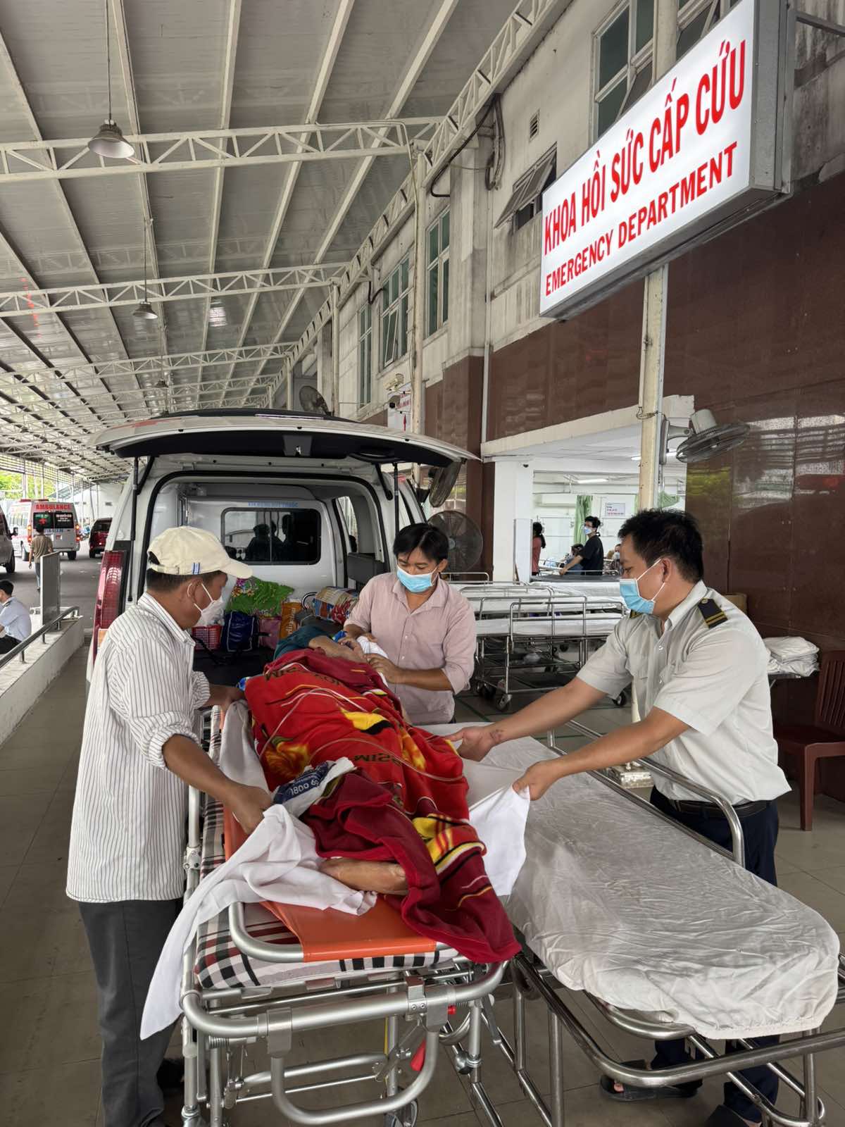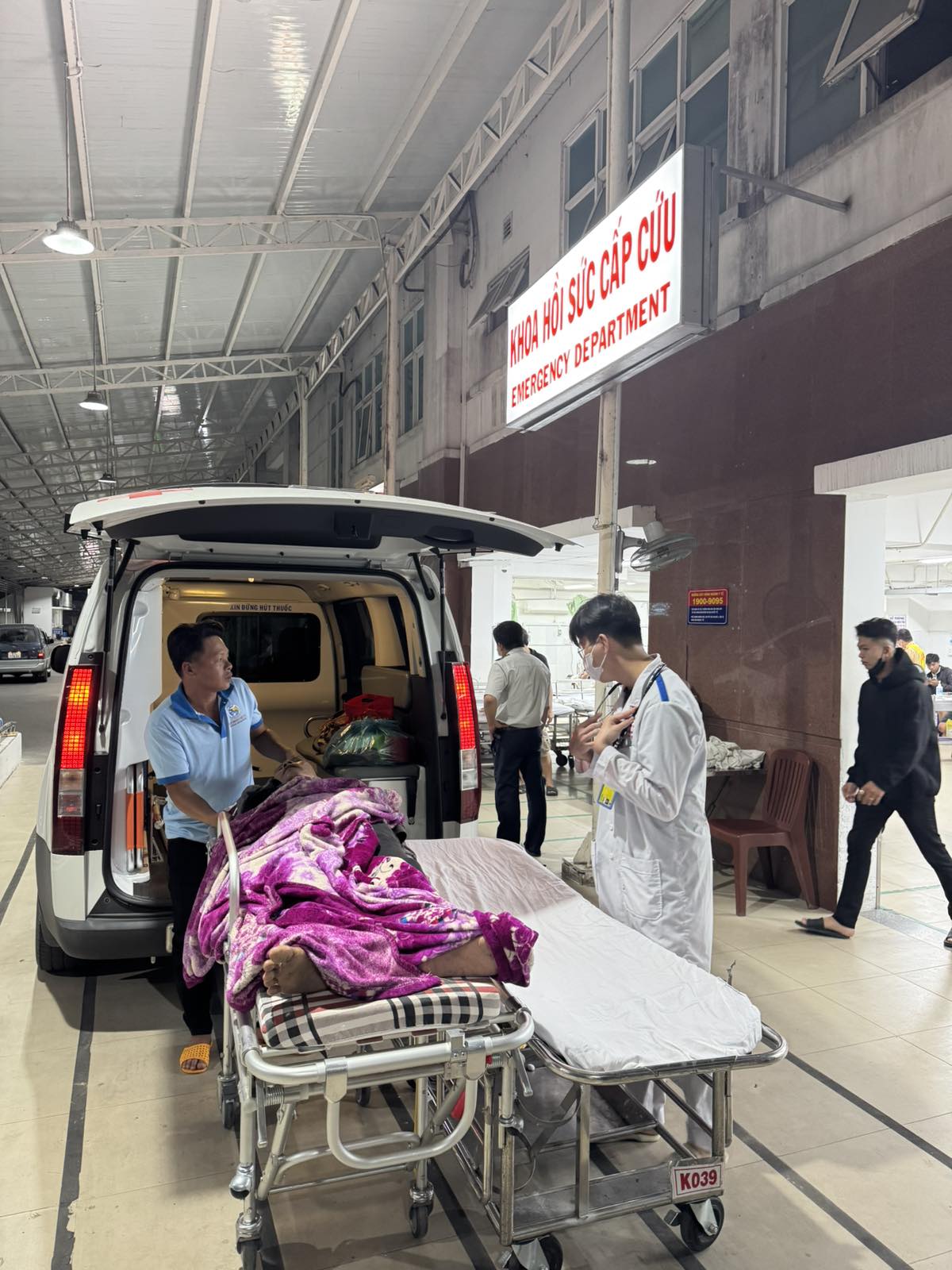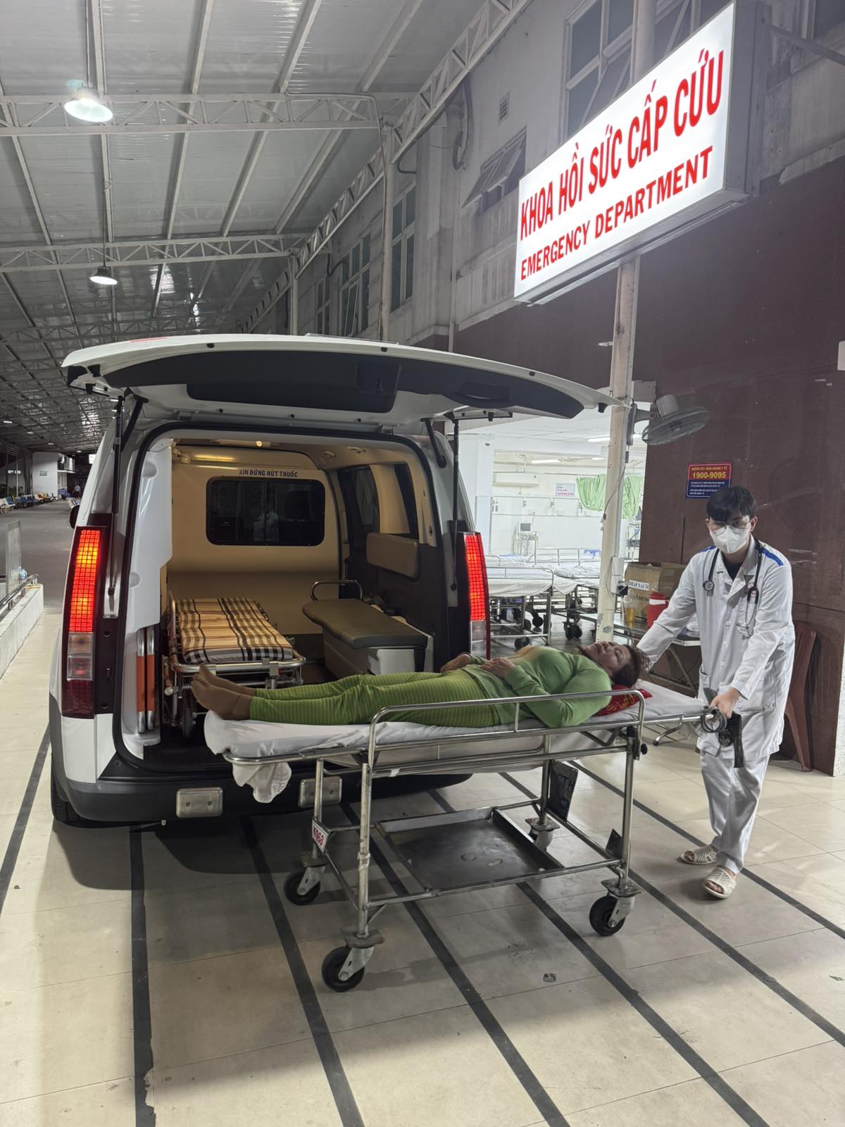 Mr. Vo Van Kip, 76 years old, lives in Ben Dong, Binh Thanh commune, Thanh Phu district, Ben Tre province. He suffered from lung failure and was taken to Pham Ngoc Thach Hospital in Saigon by ambulance at 5:30 p.m. on January 1, 2025. He currently lives with his wife and children. The staff gave him a bottle of medicated green oil.