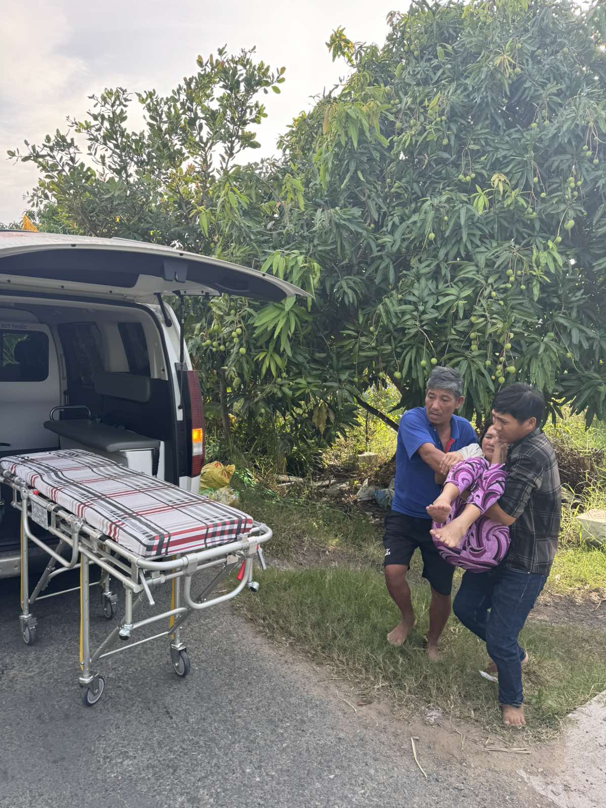 5. Bà Nguyễn Thị Khỏe, 79t, nhà ở Khâu Băng, xã Thạnh Phong, huyện Thạnh Phú, tỉnh Bến Tre. Bà bị tuột huyết áp làm mệt, xe chở cấp cứu lên bệnh viện Bến Tre lúc 10h20 ngày 06/01/2025. Hiện tại bà sống với con. Có tặng 1 chai dầu xanh.
