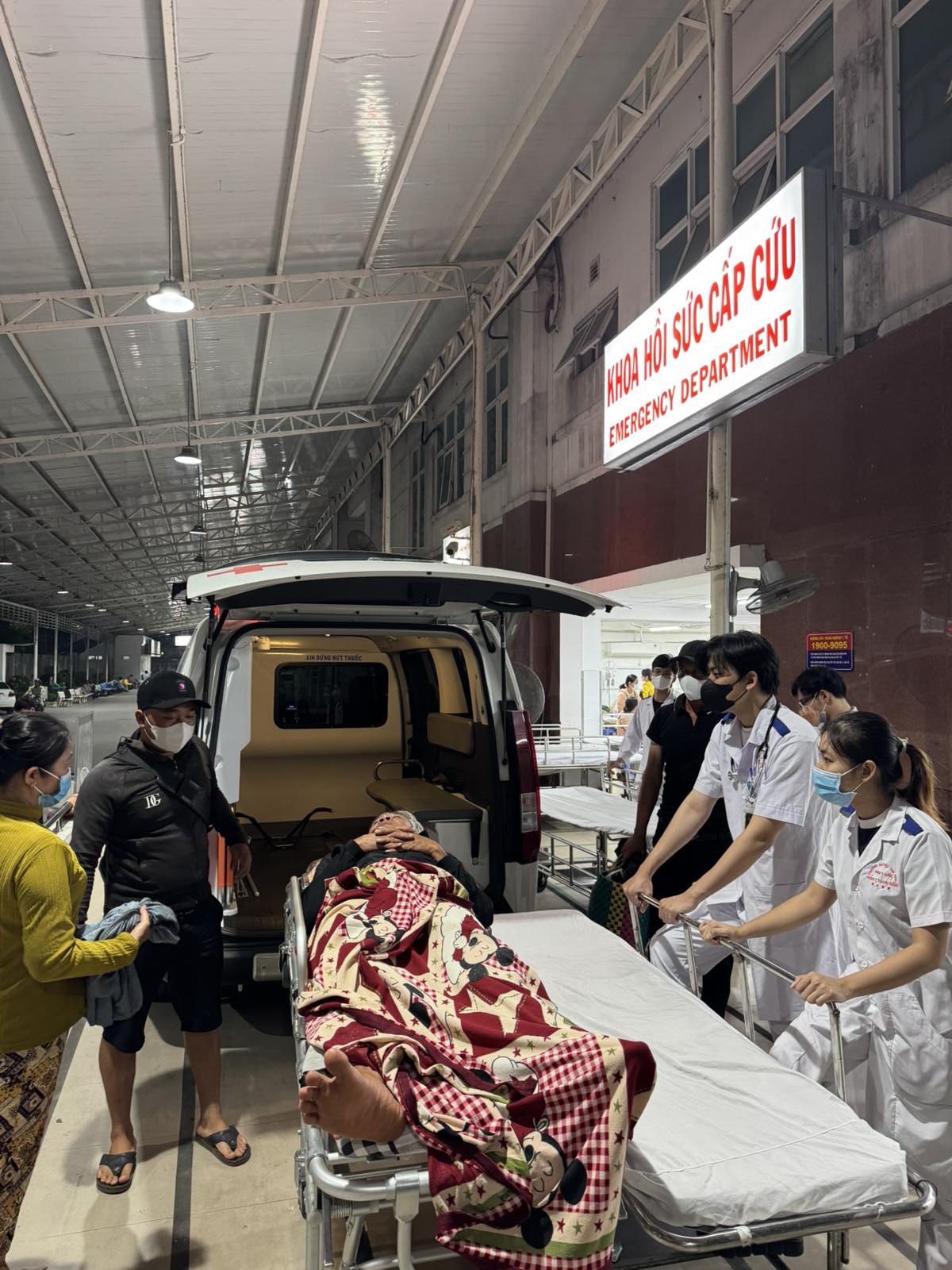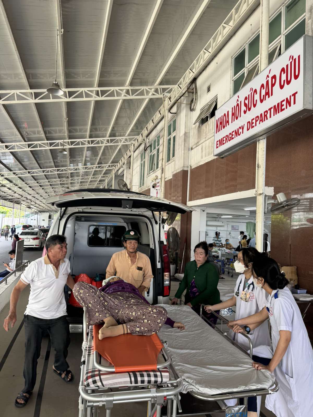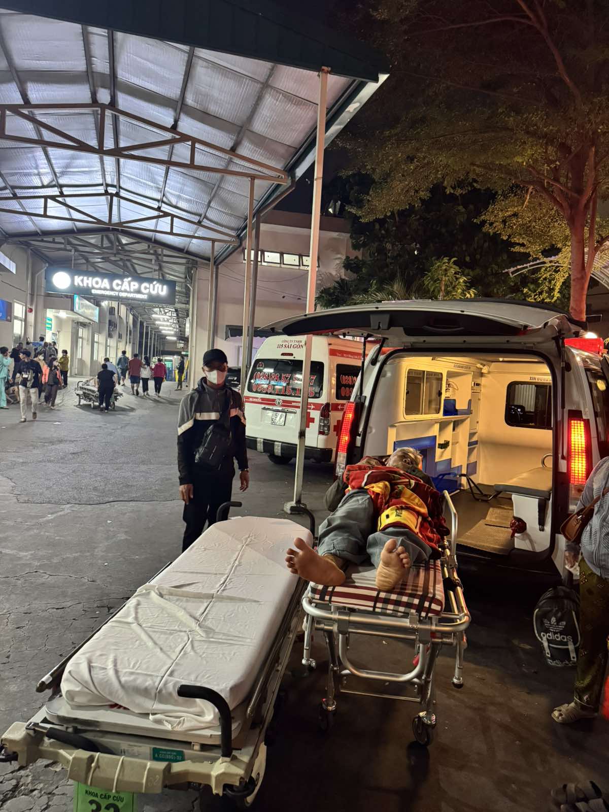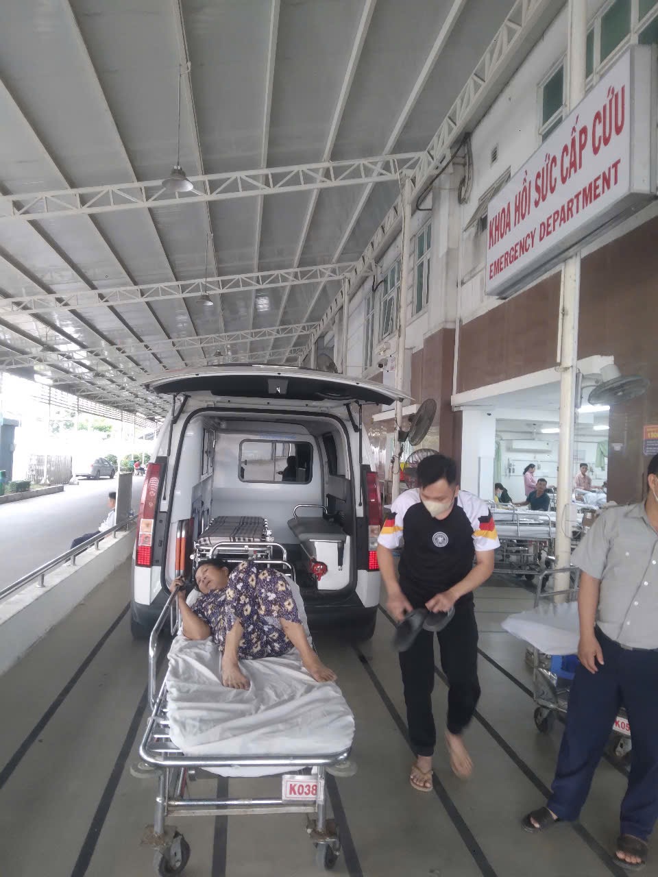 Ms. Pham Thi San, 69 years old, lives in Con Chim, Thanh Phong commune, Thanh Phu district, Ben Tre province. She is currently tired due to complications of diabetes. The ambulance took her to Ben Tre hospital at 4:50 p.m. on January 14, 2025. She currently lives with her husband.