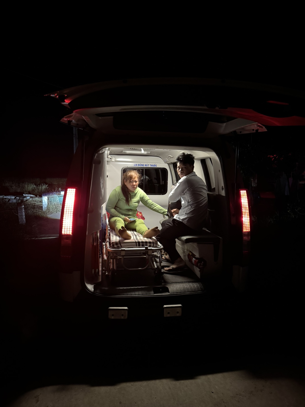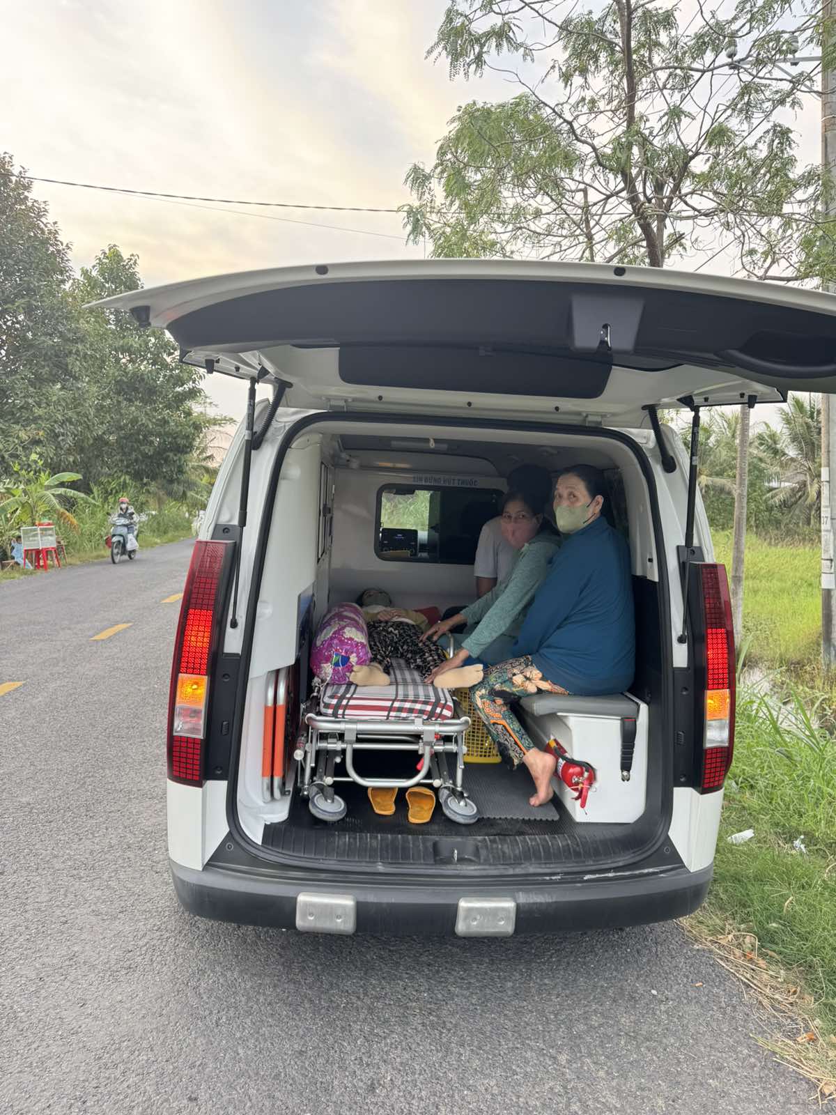 Ms. Le Thi Dao, 29 years old, lives in Hamlet 6, An Nhon Commune, Thanh Phu District, Ben Tre Province. She suffered a stroke and was paralyzed. The ambulance took her to Hospital 115 Saigon at 11:30 on January 12, 2025. She currently lives with her husband and children.
