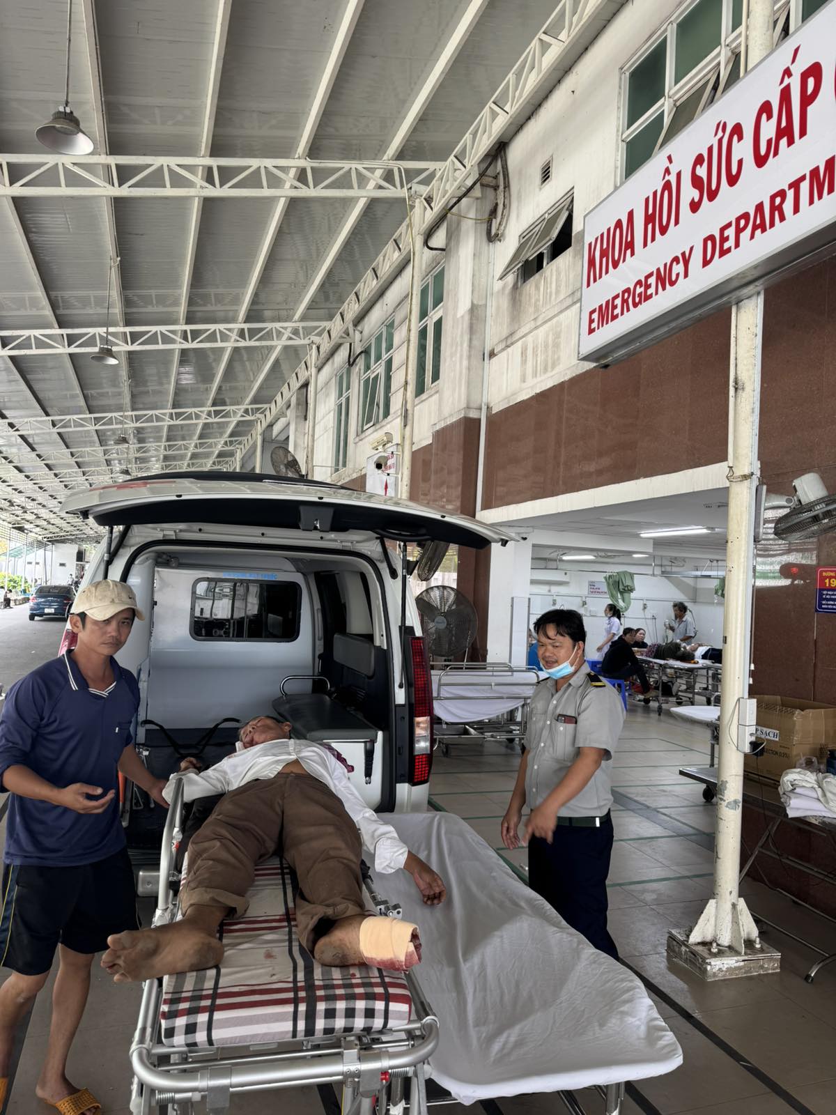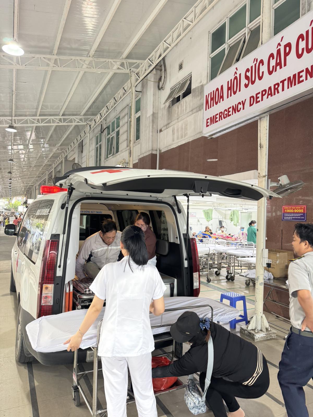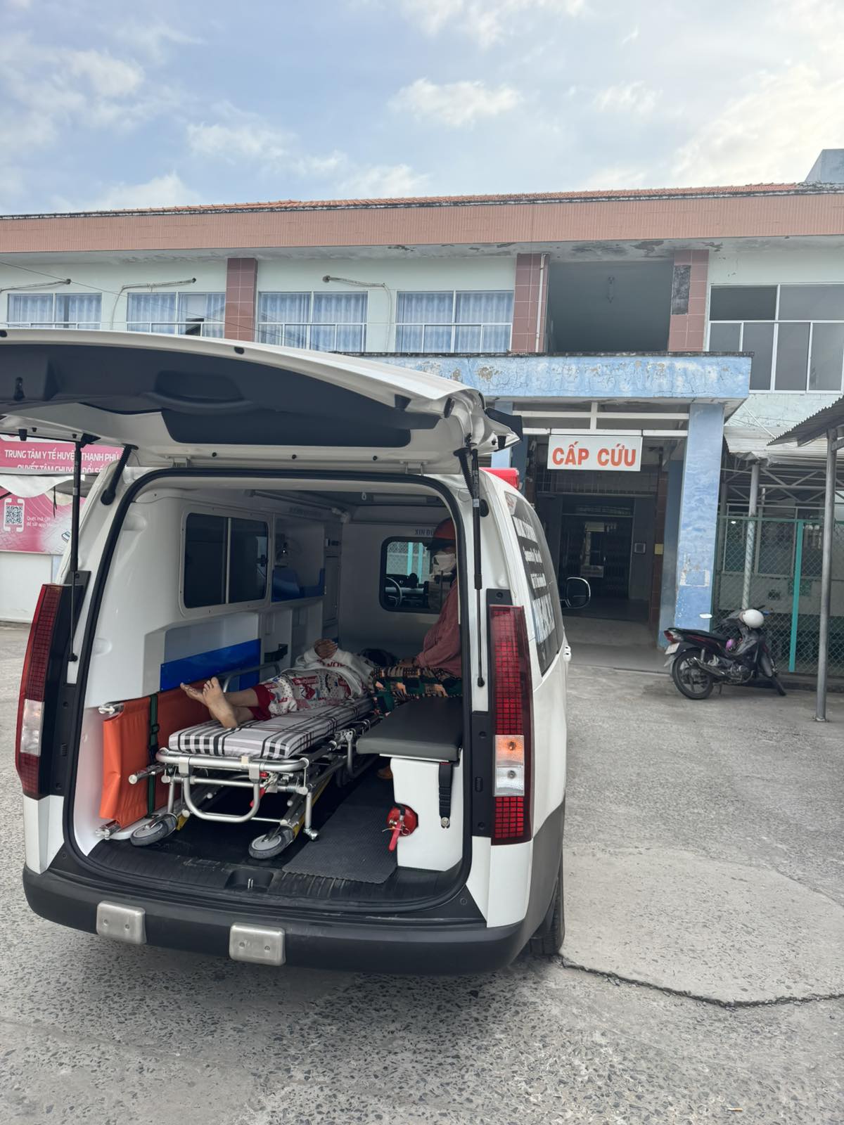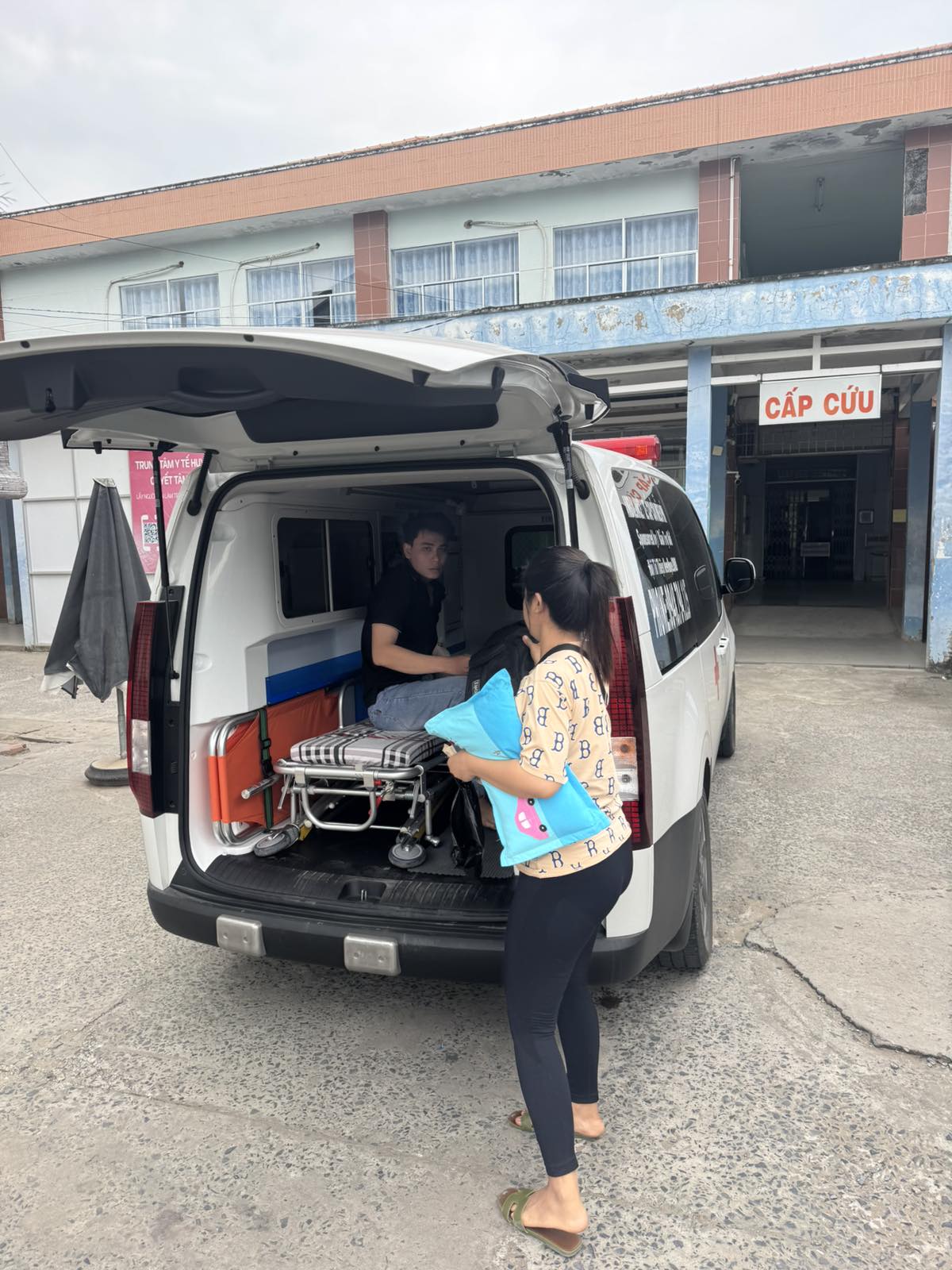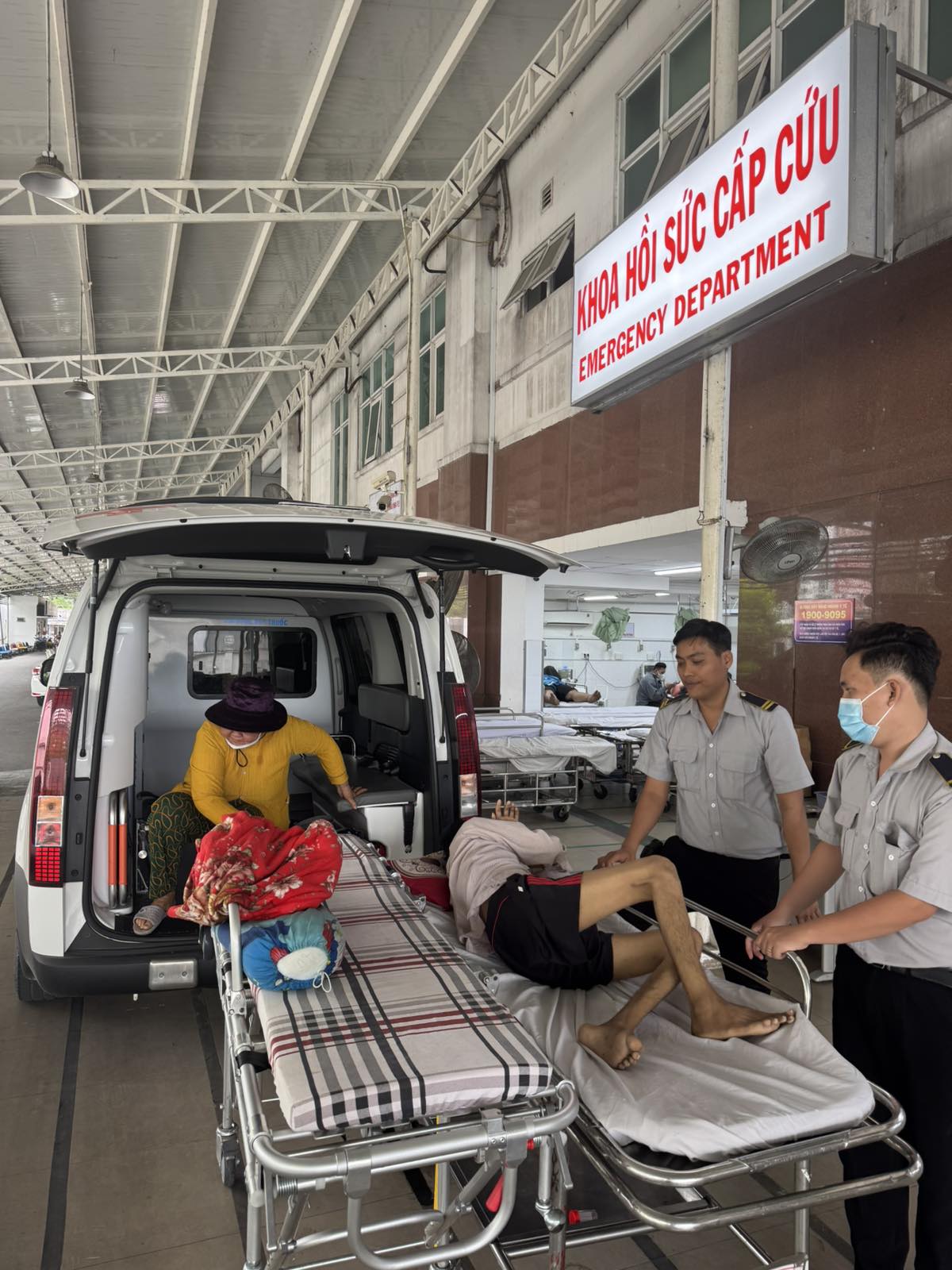 Dưới đây là hình ảnh của từng bệnh nhân lúc lên xe Cấp Cứu và lúc đến nhà thương:
