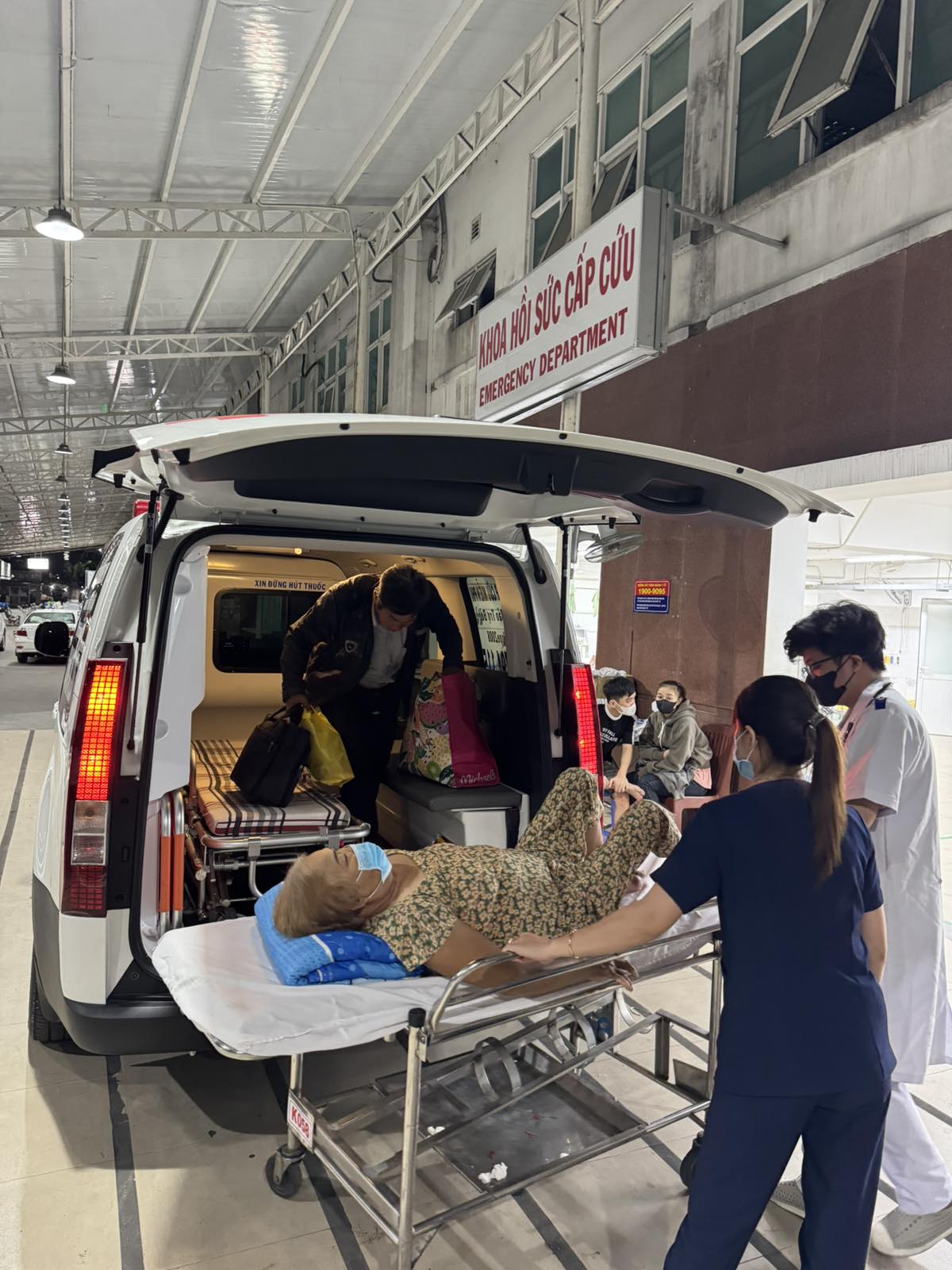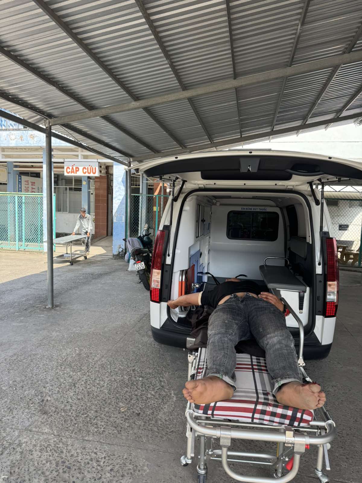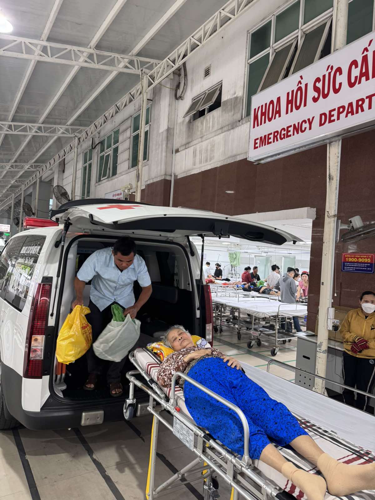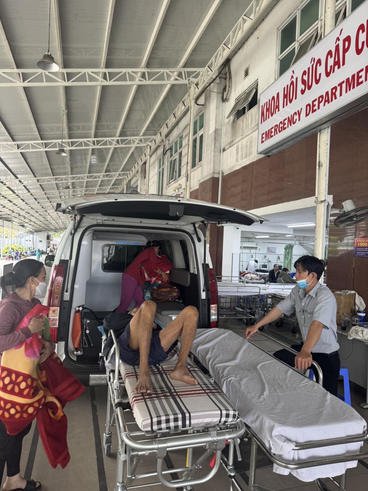 Dưới đây là hình ảnh của từng bệnh nhân lúc lên xe Cấp Cứu và lúc đến nhà thương:
