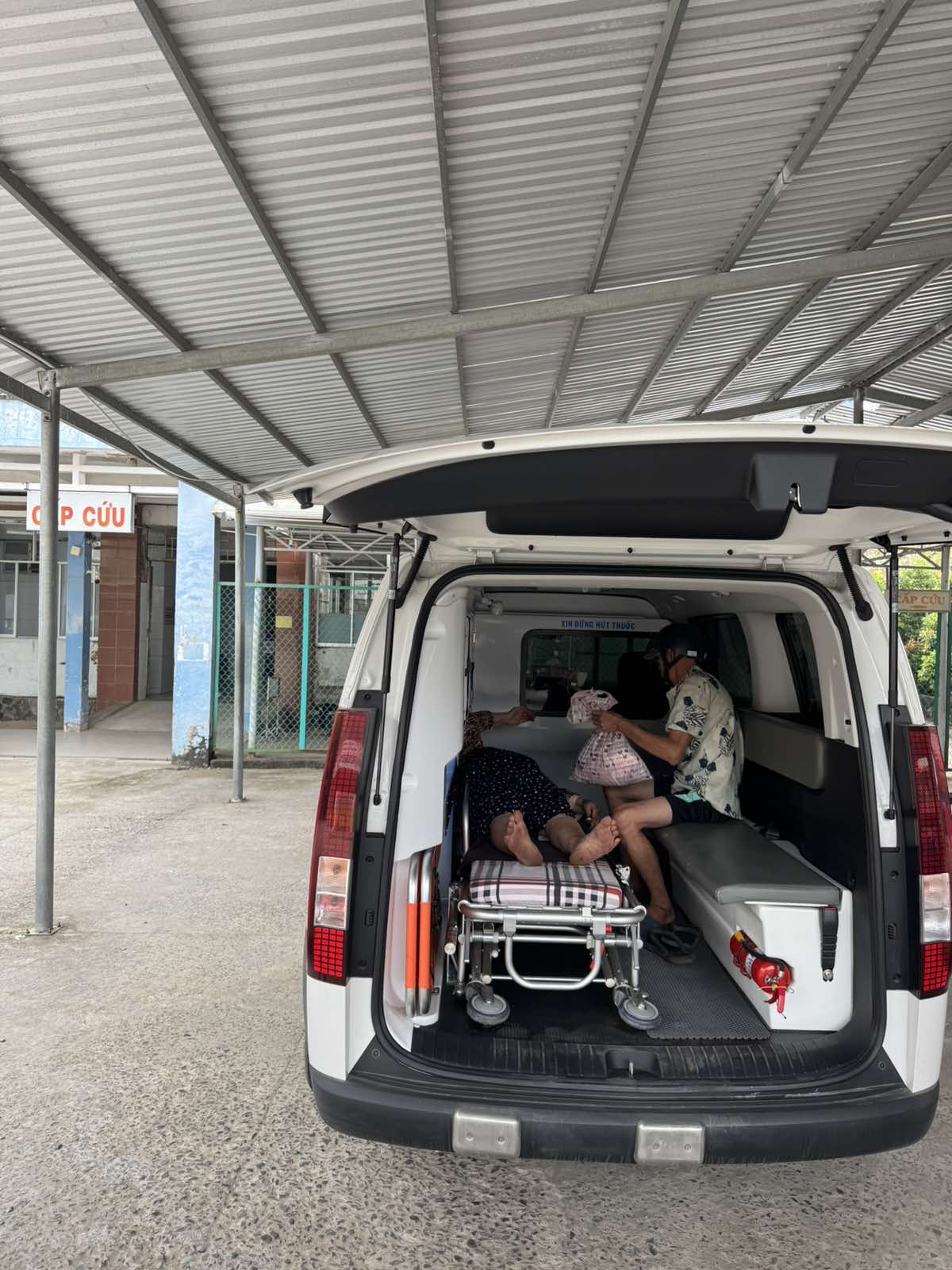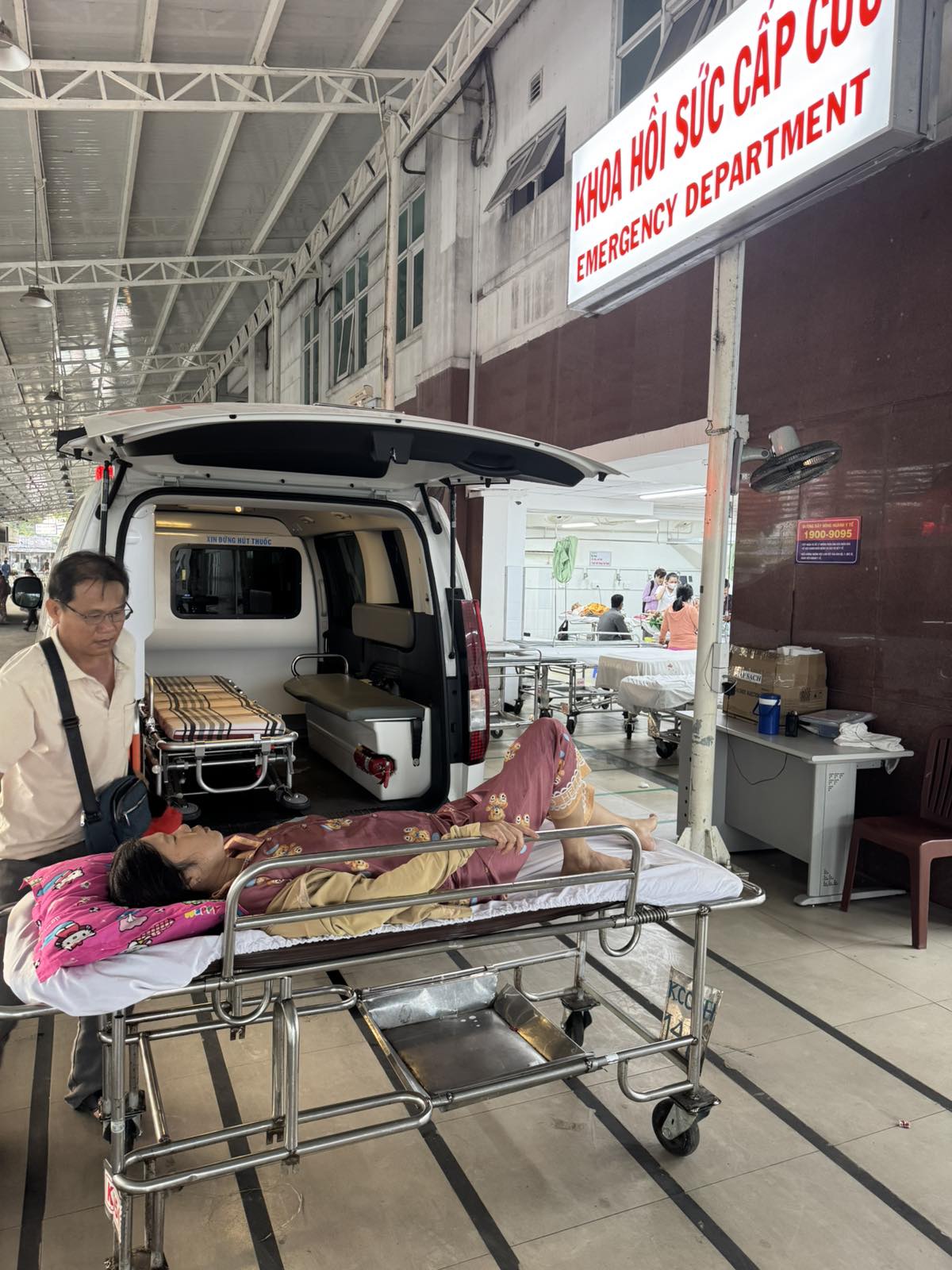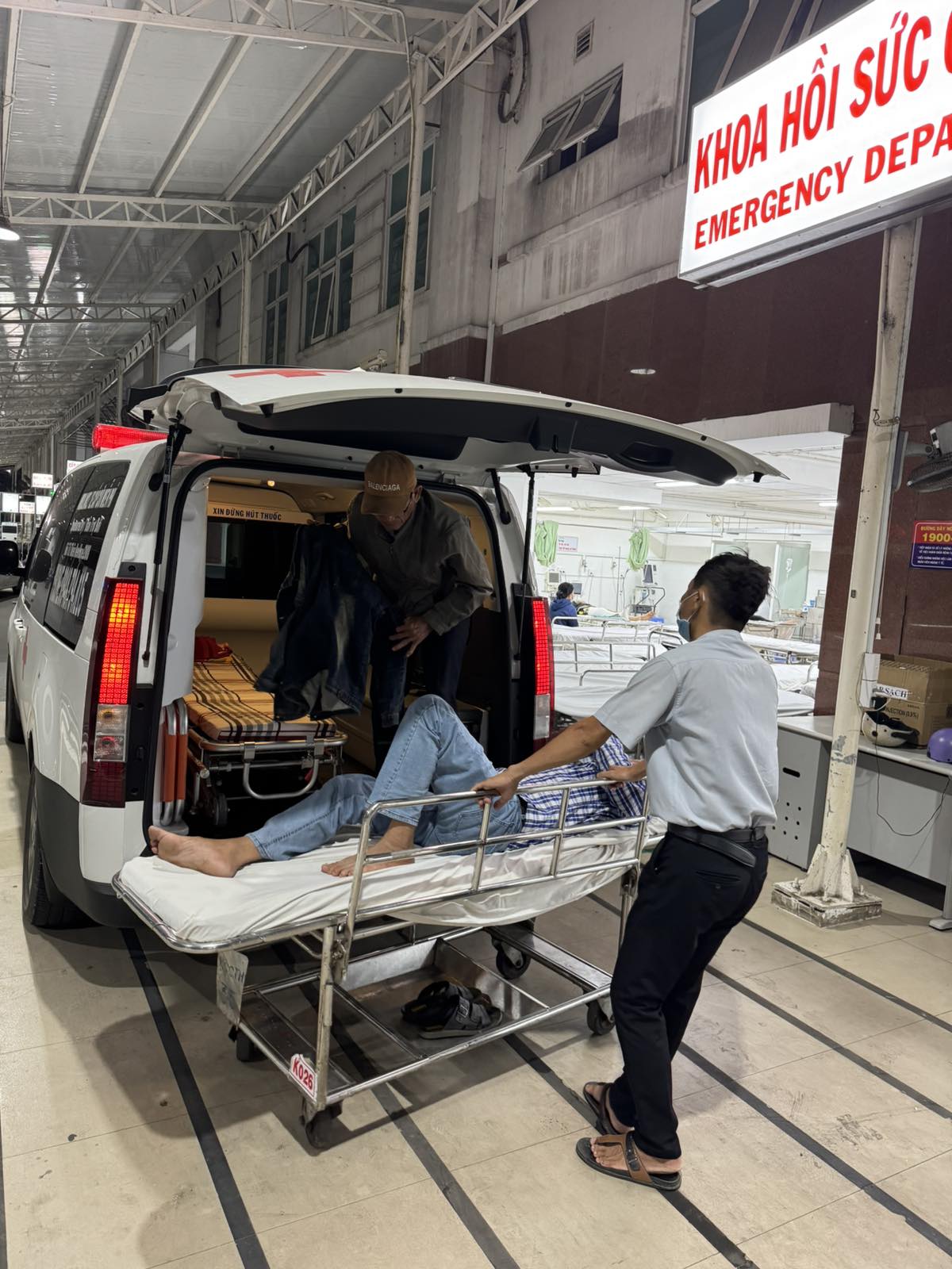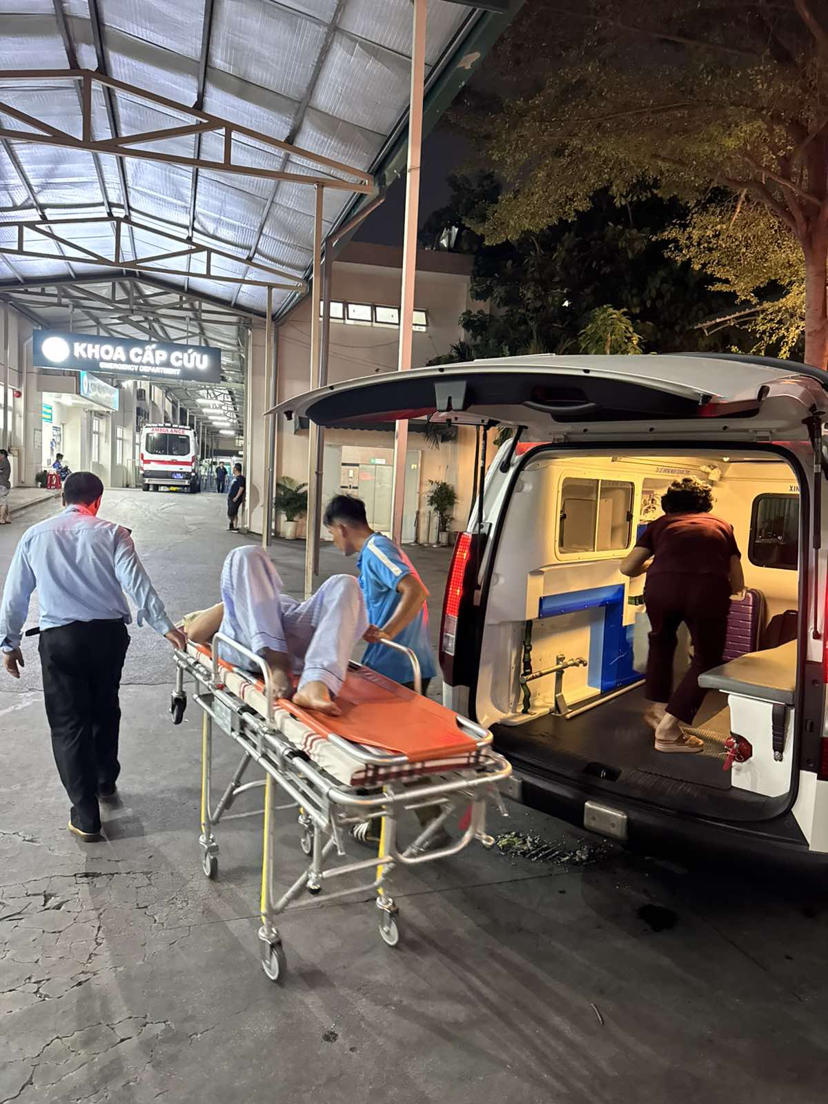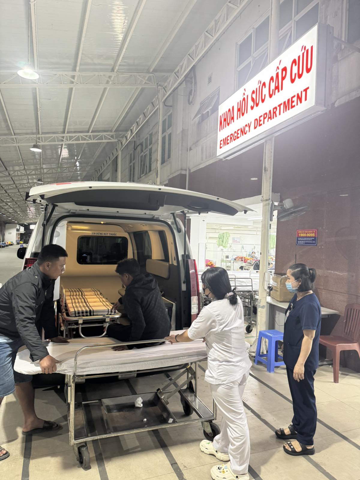Dưới đây là hình ảnh của từng bệnh nhân lúc lên xe Cấp Cứu và lúc đến nhà thương:
