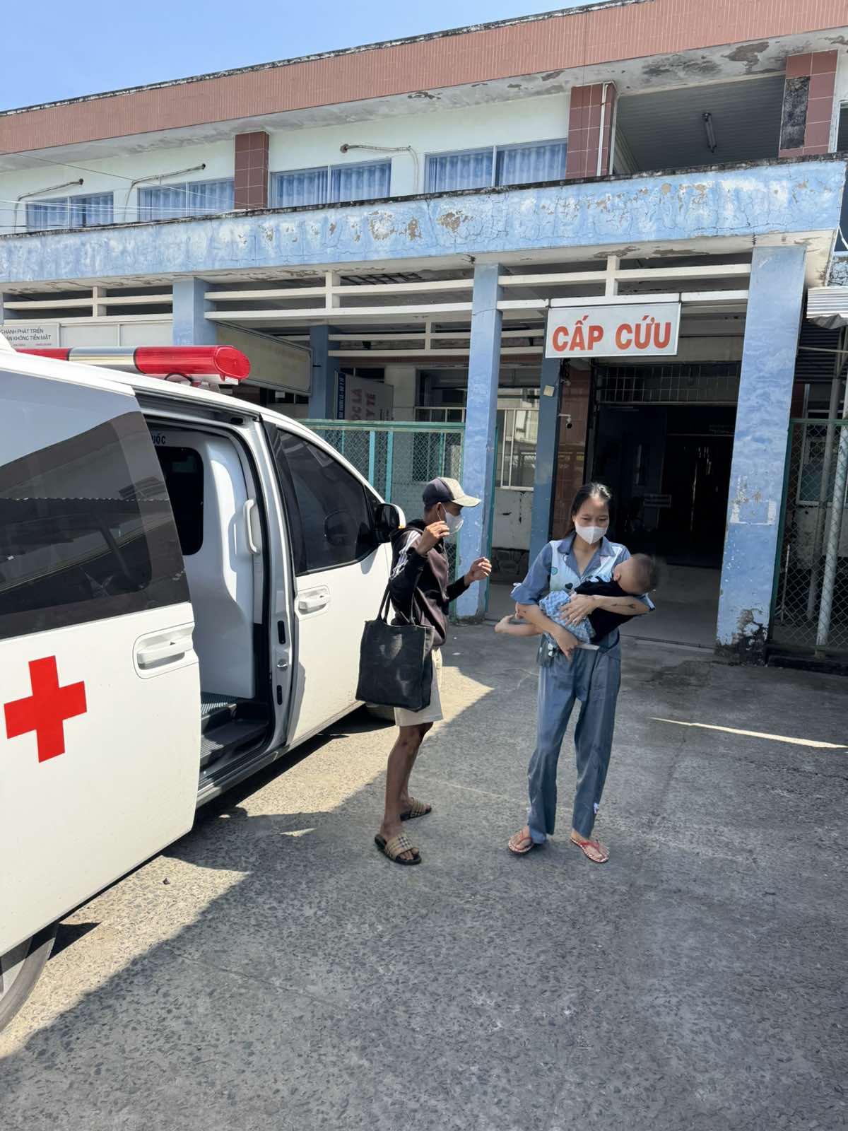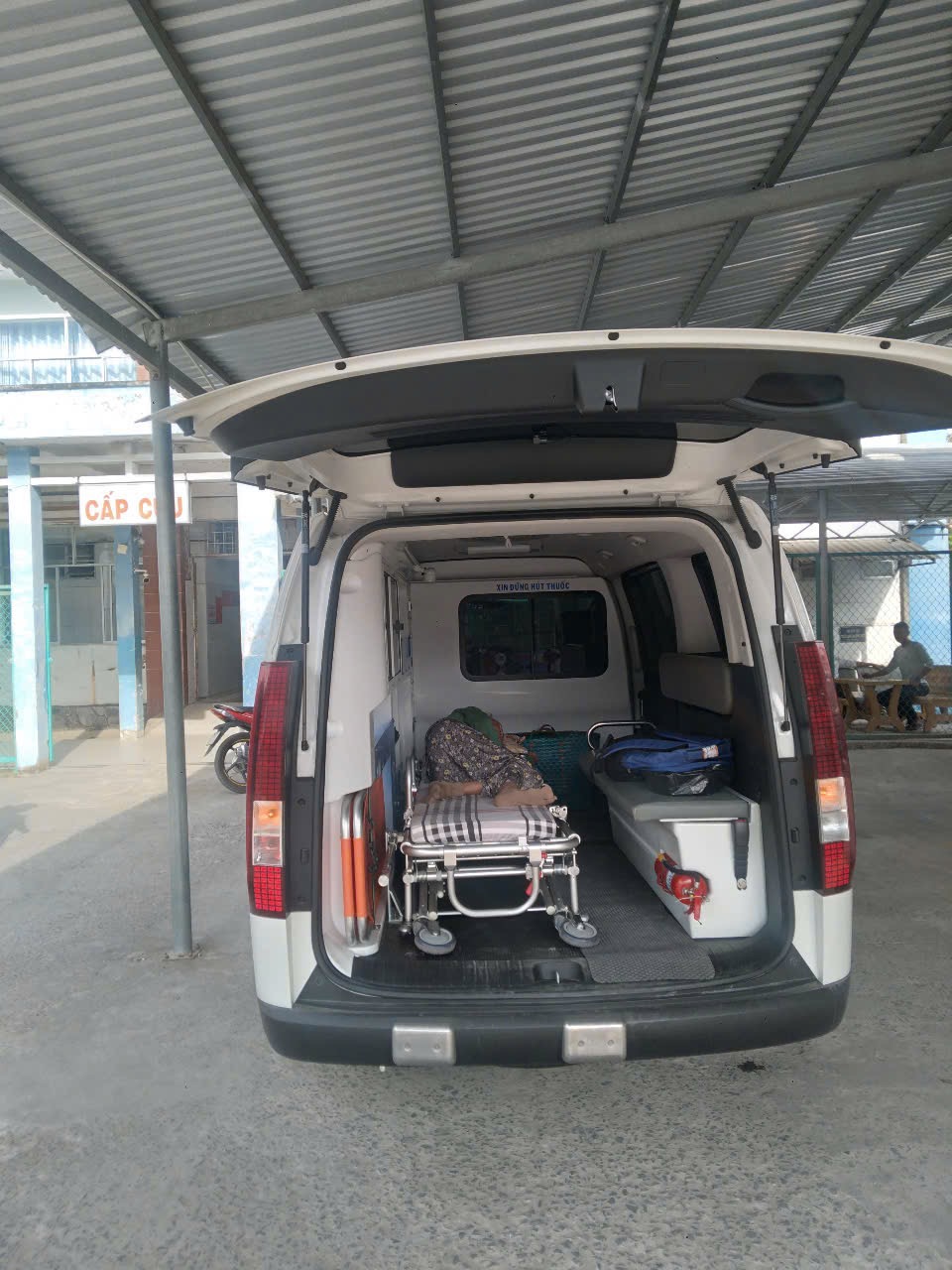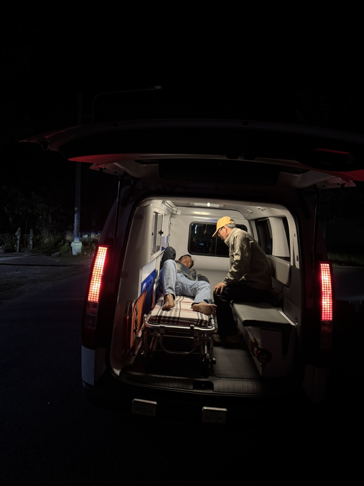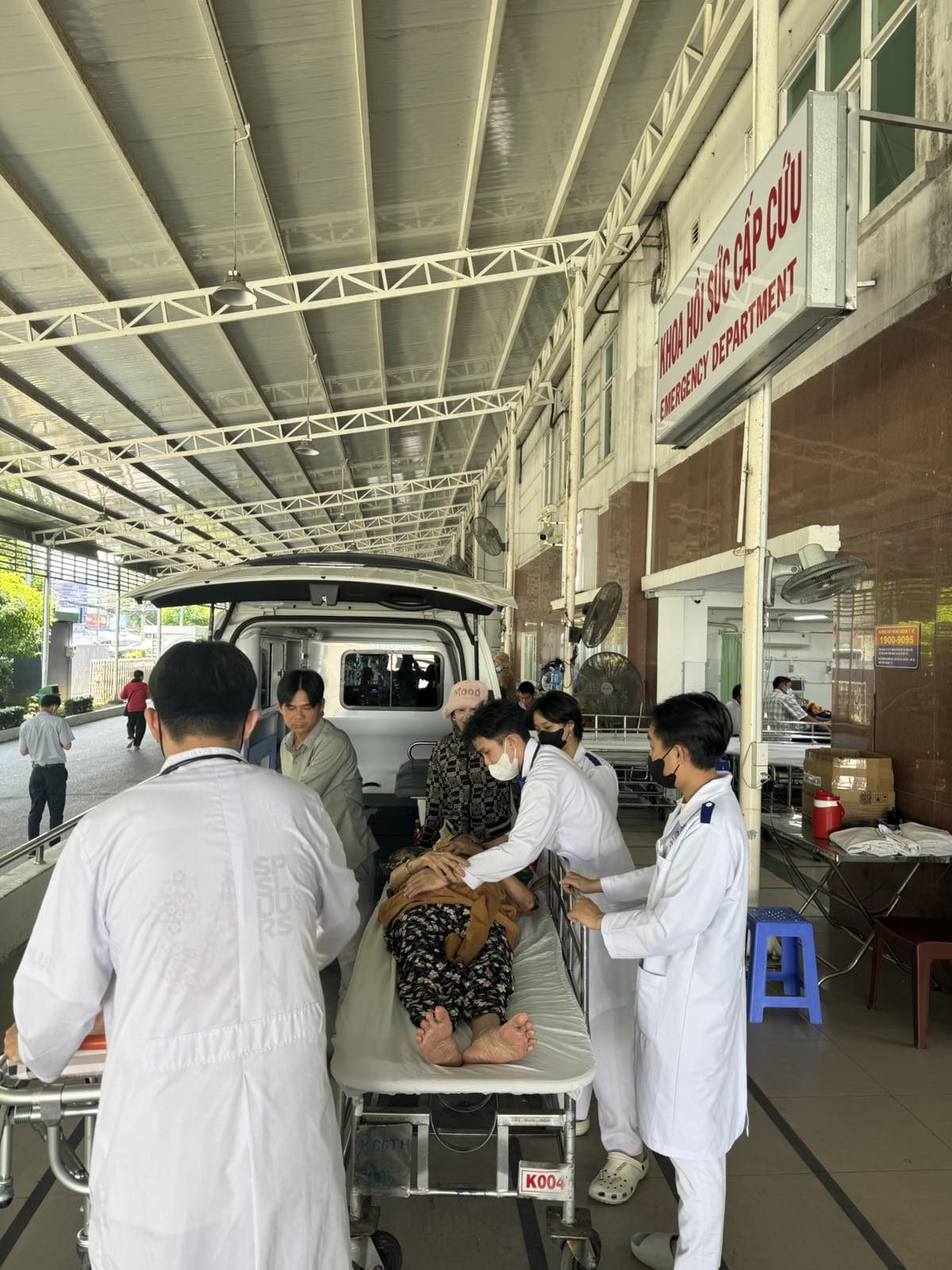 Dưới đây là hình ảnh của từng bệnh nhân lúc lên xe Cấp Cứu và lúc đến nhà thương:
