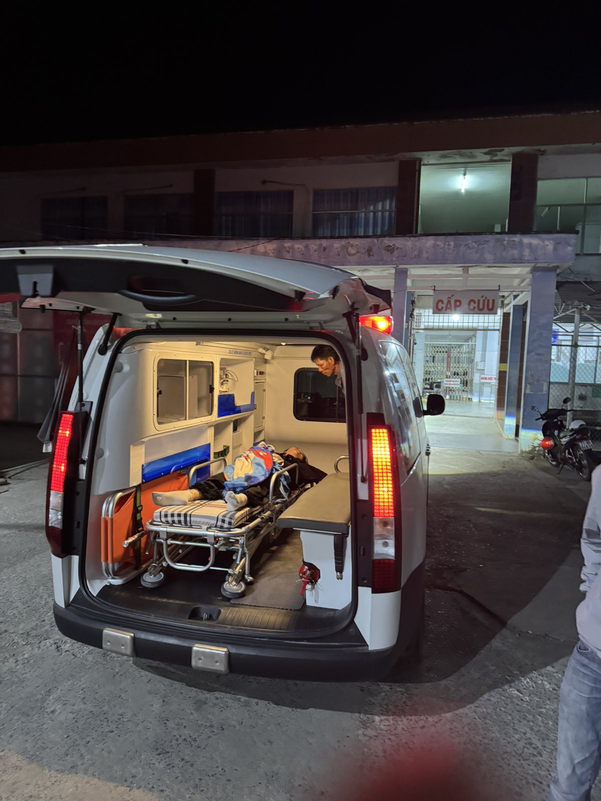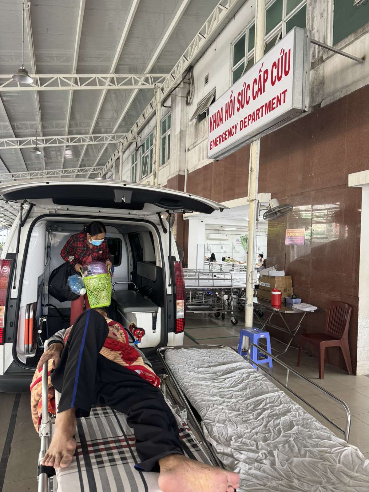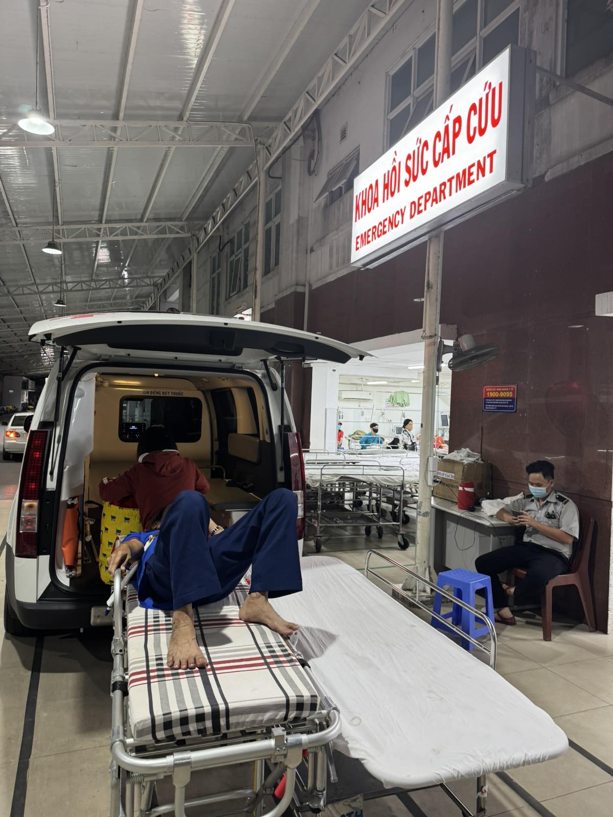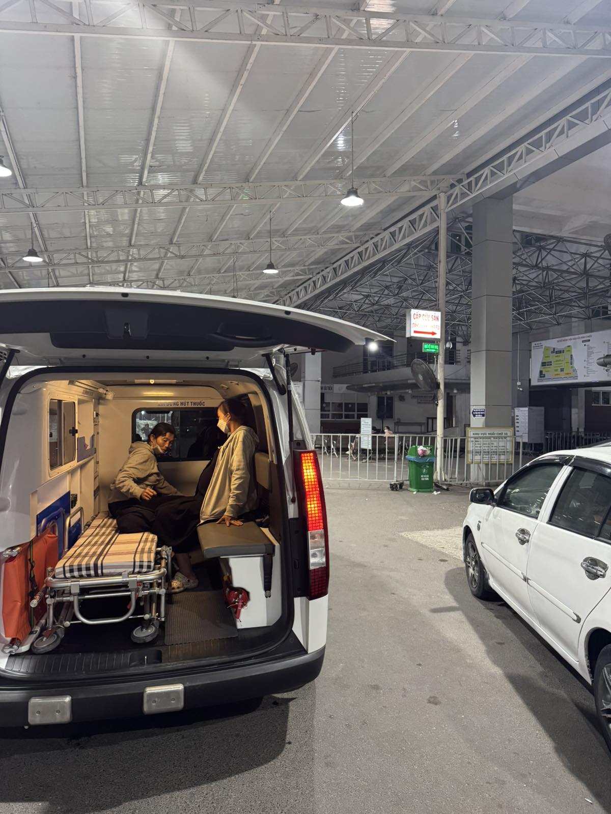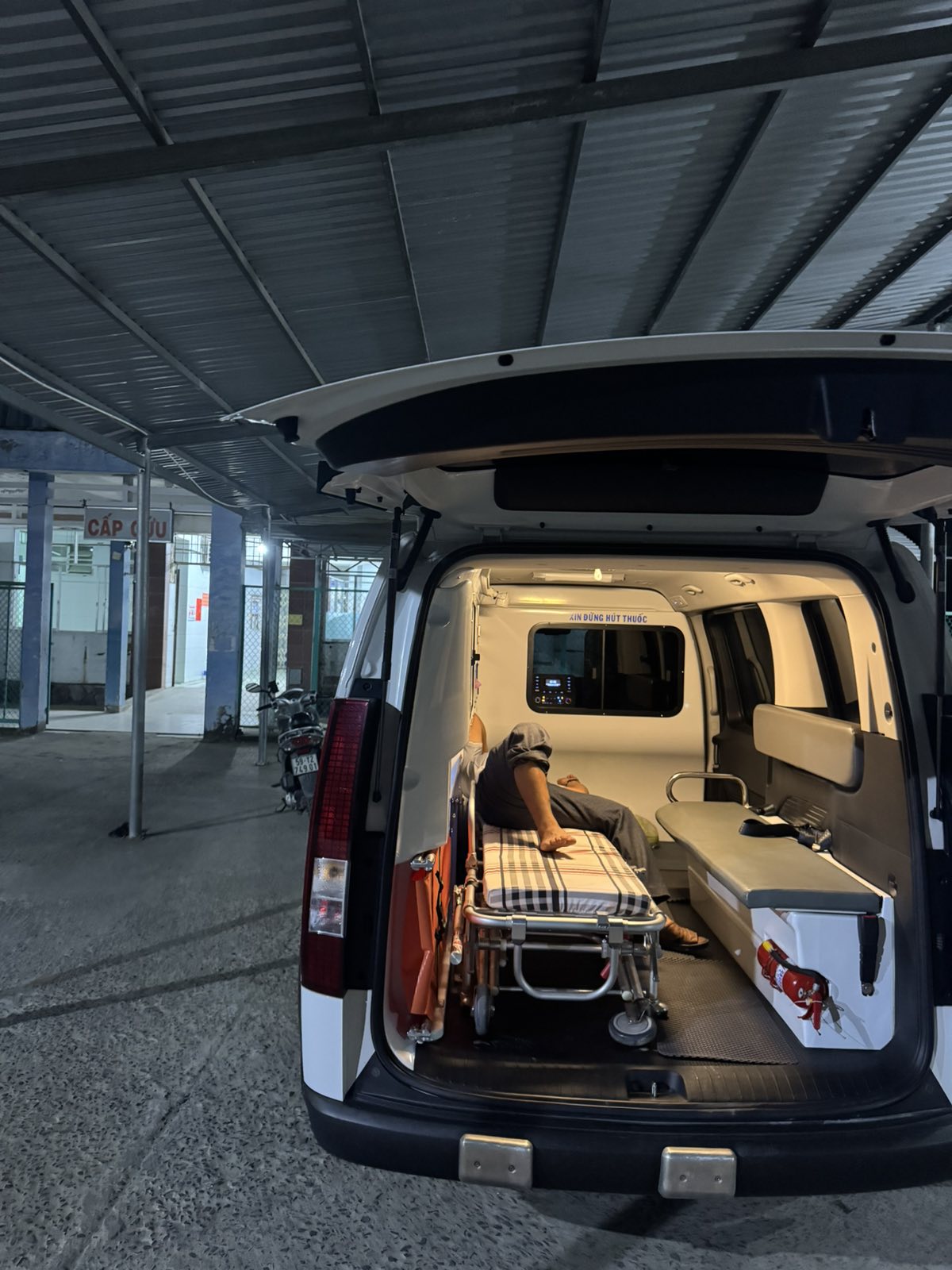 Dưới đây là hình ảnh của từng bệnh nhân lúc lên xe Cấp Cứu và lúc đến nhà thương: