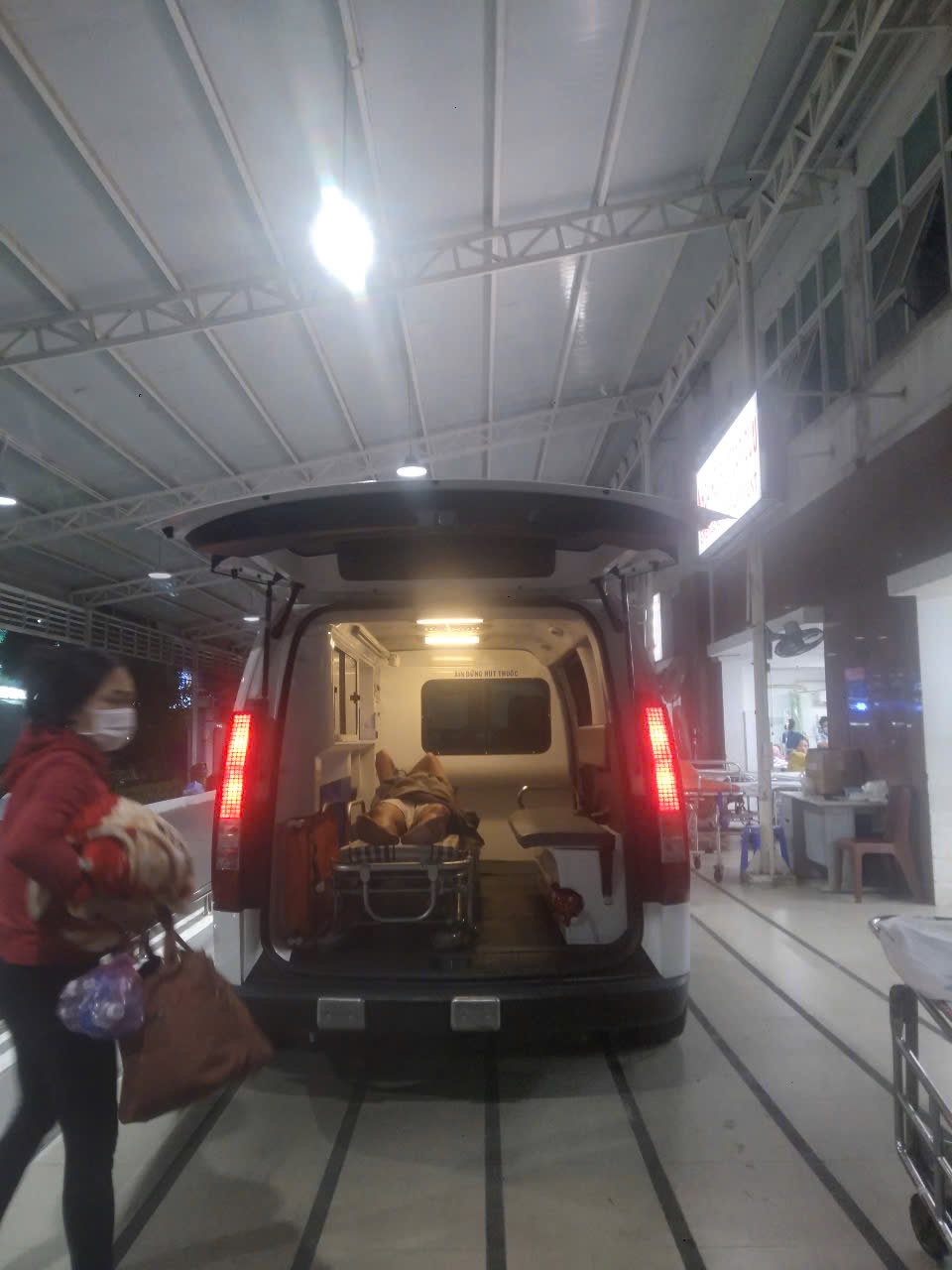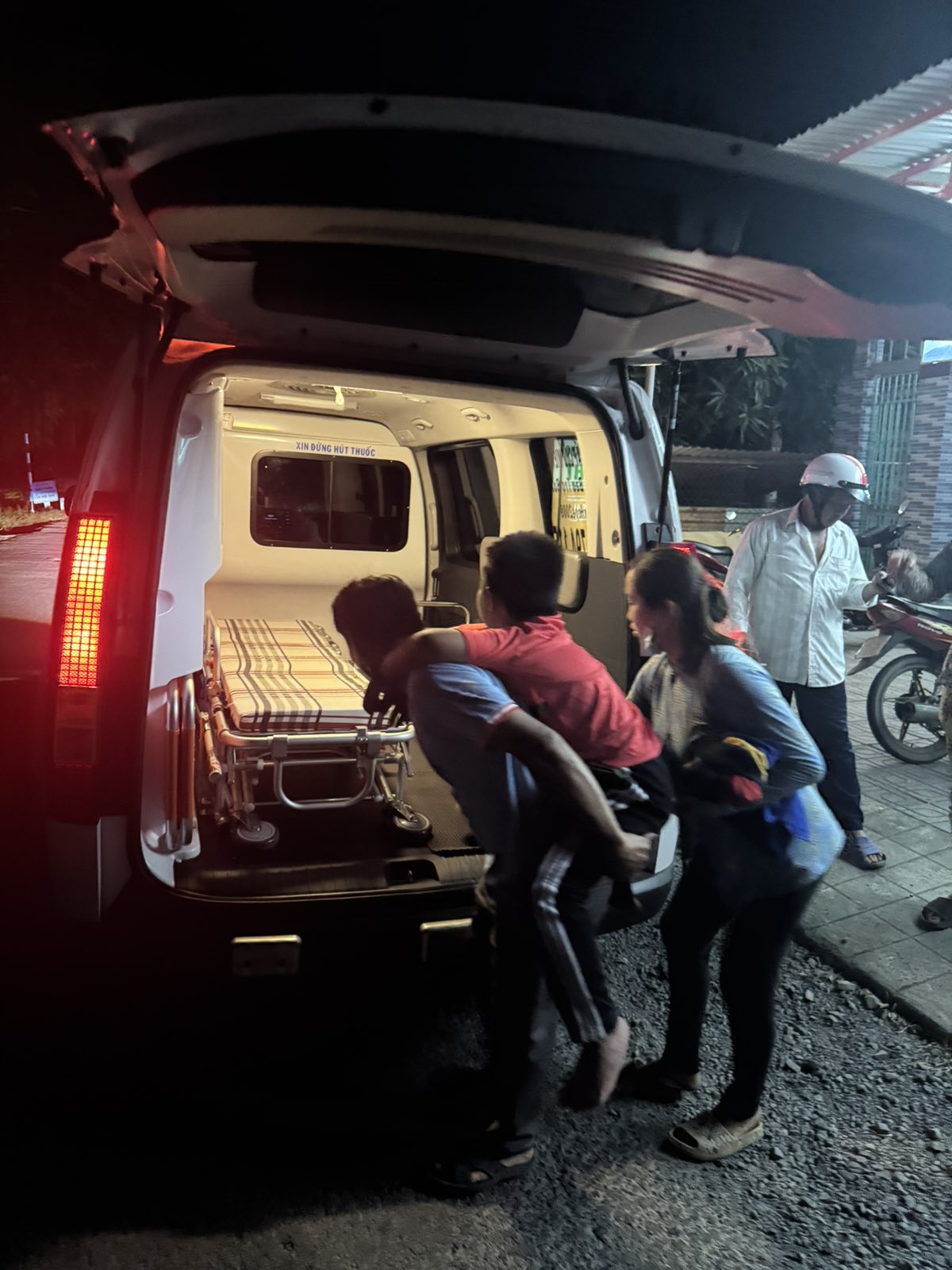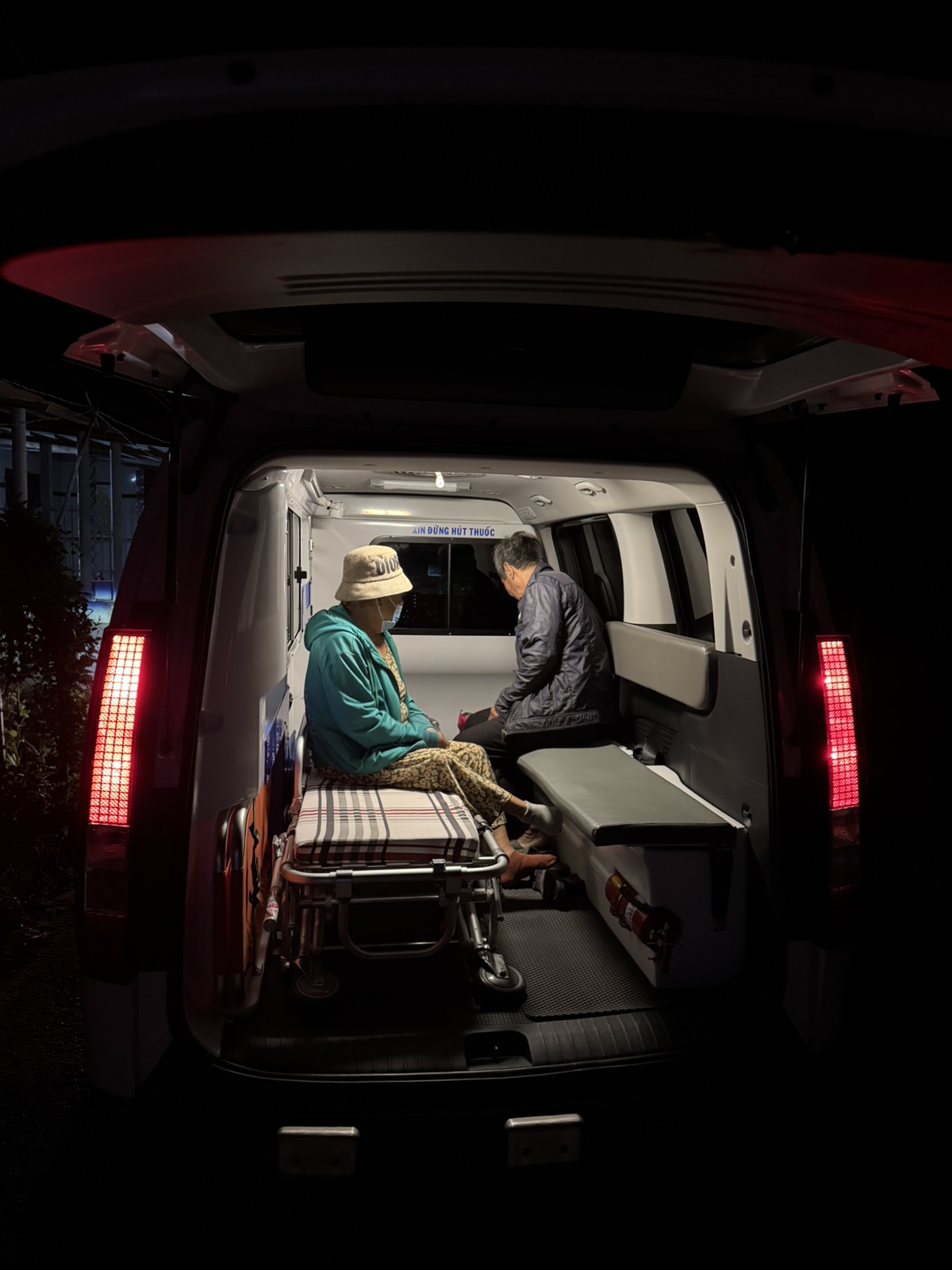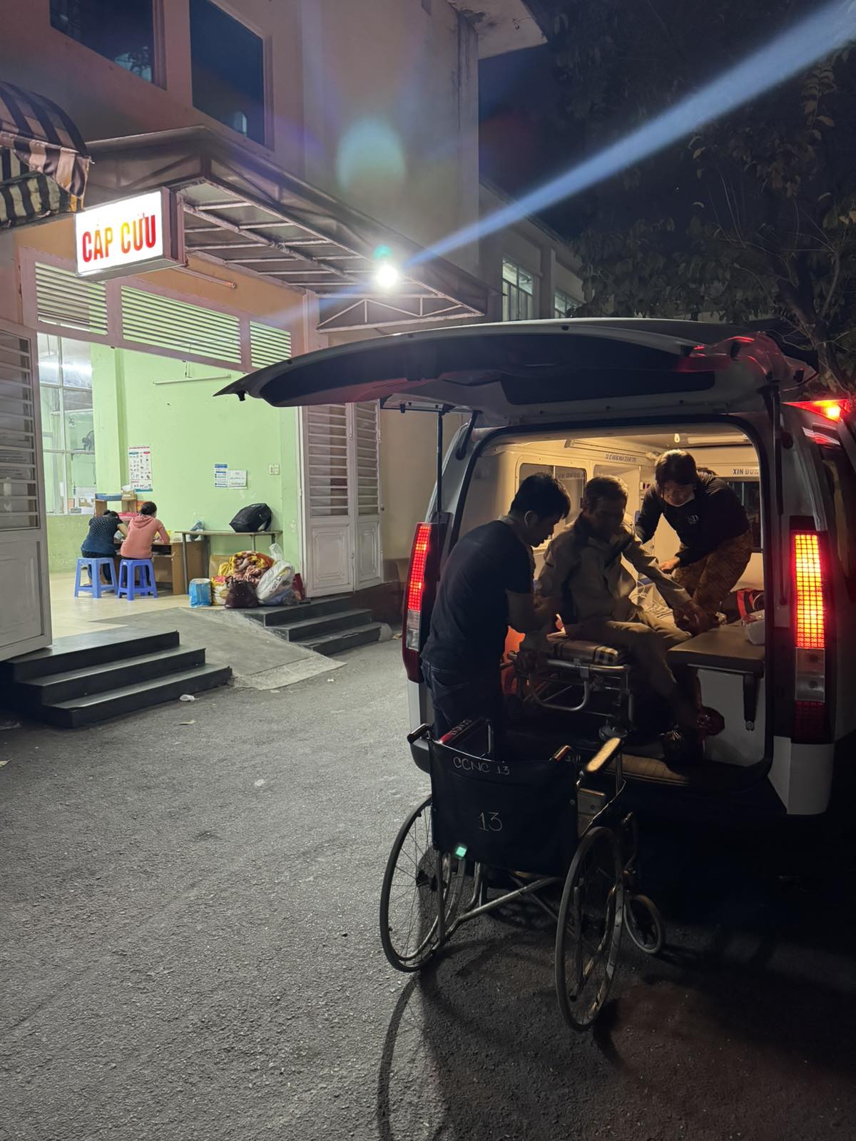 Dưới đây là hình ảnh của từng bệnh nhân lúc lên xe Cấp Cứu và lúc đến nhà thương: